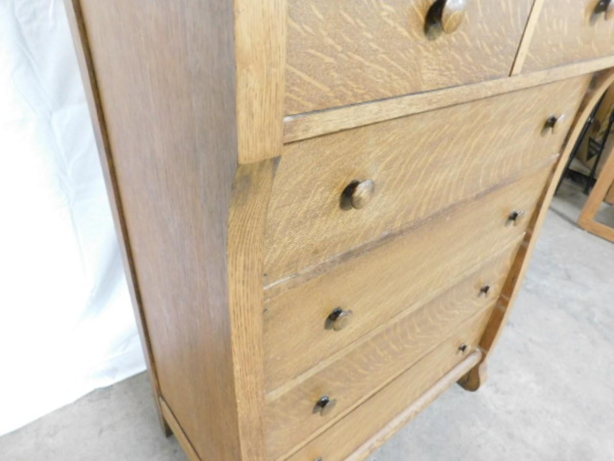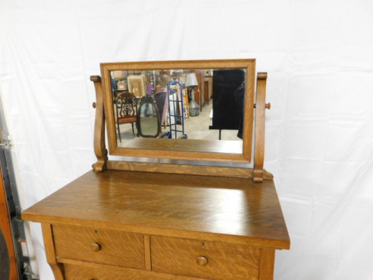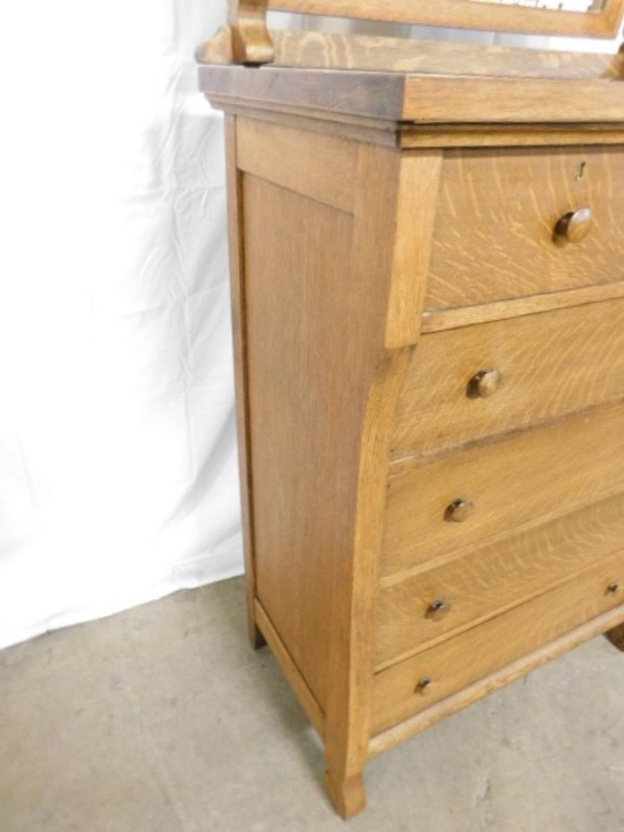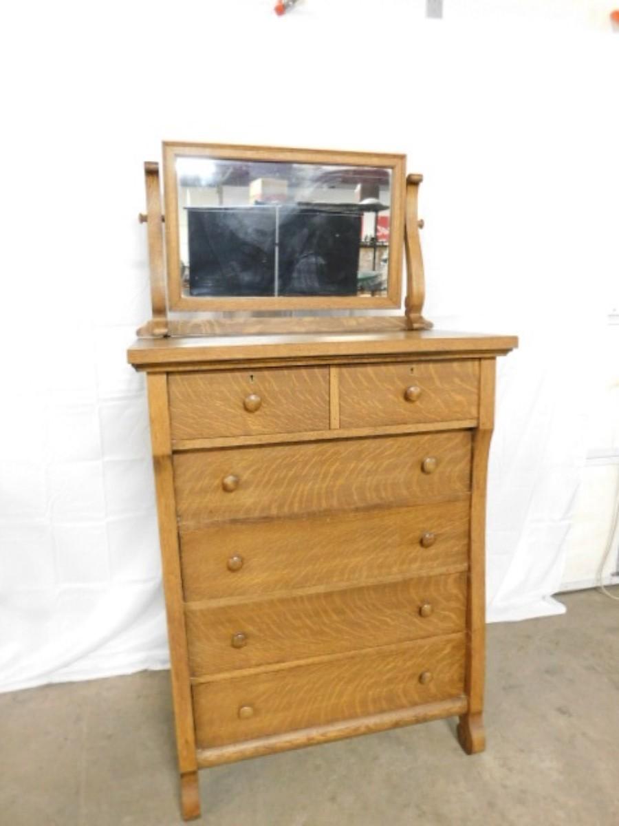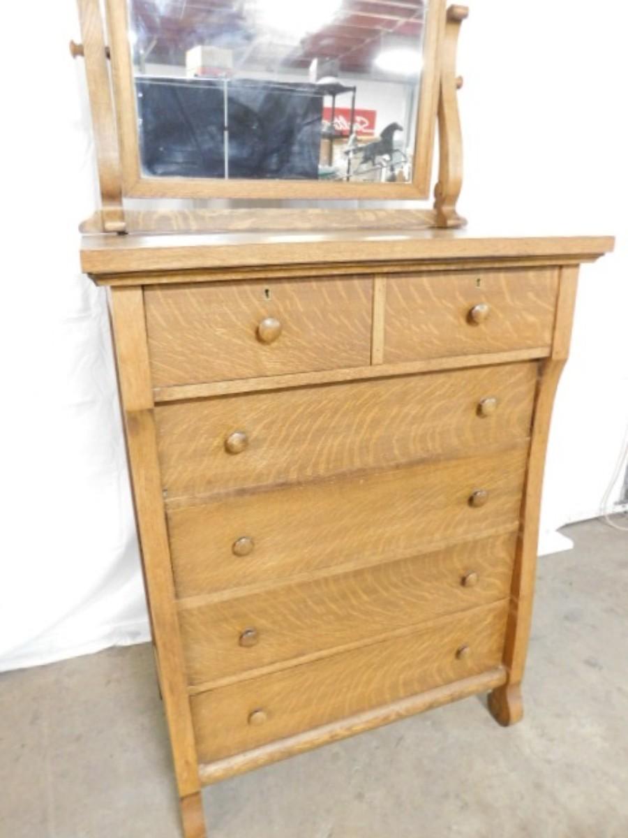 Antique Solid Tiger Oak 2 over 4 Dresser with Mirror Top