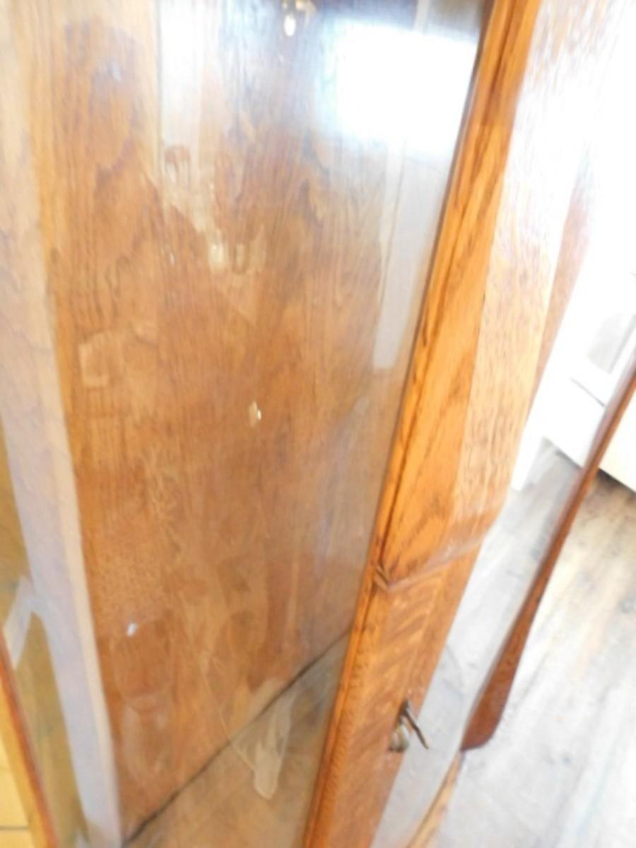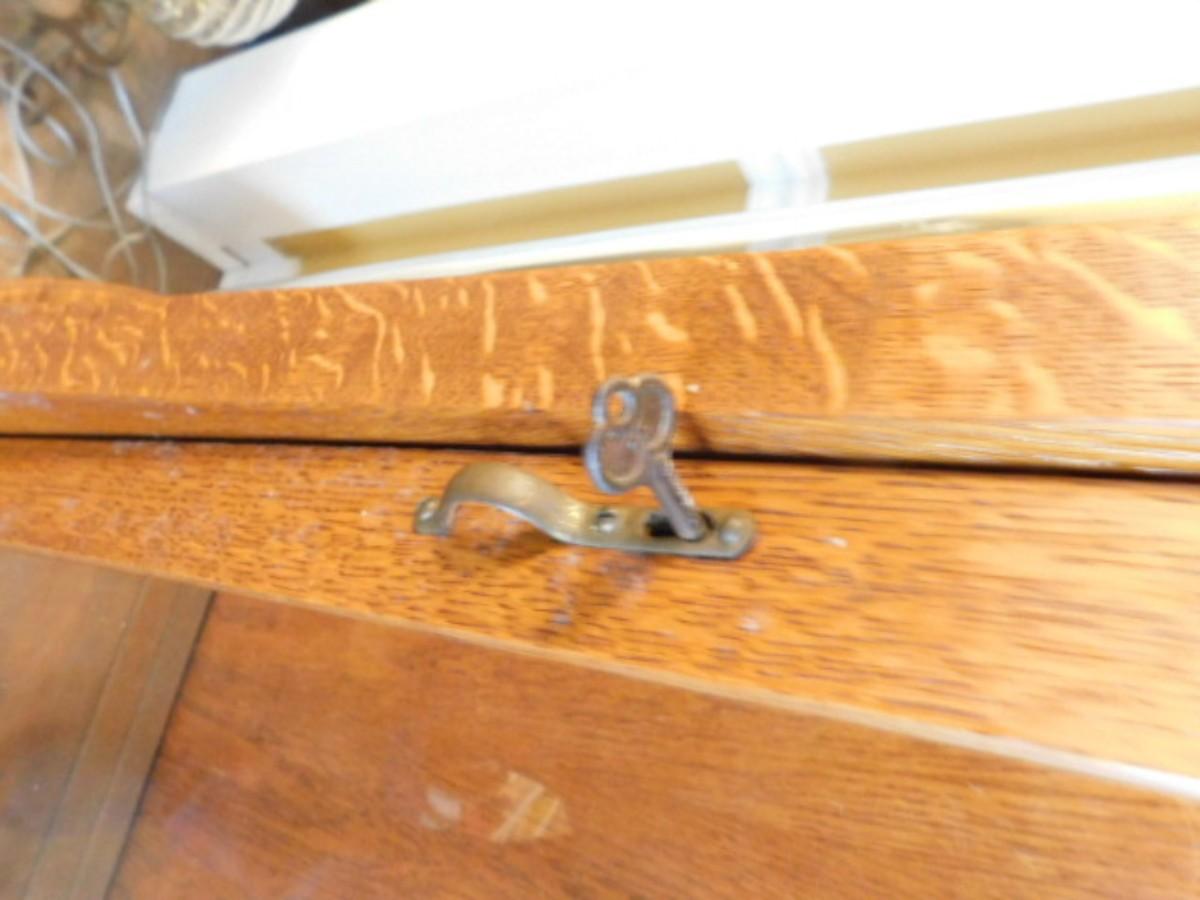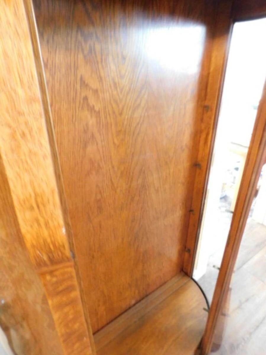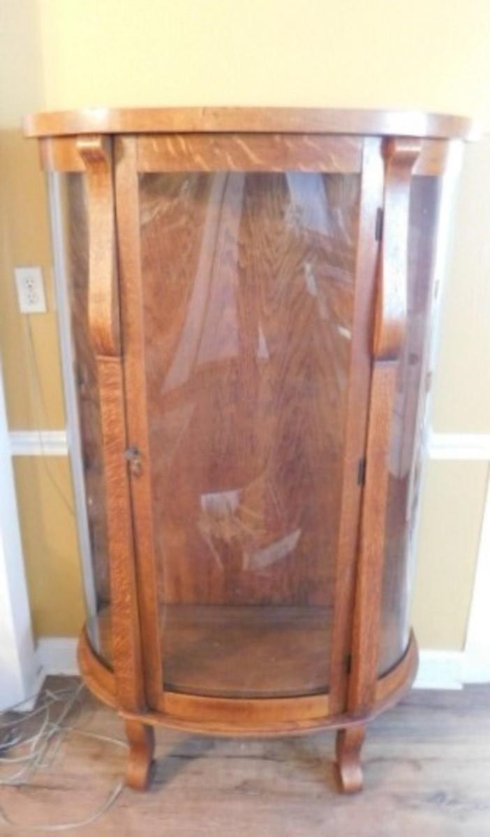 Antique Solid Tiger Oak Bow Front Curio Cabinet including 4 Matching Wood Shelves and Door Key