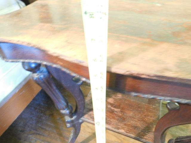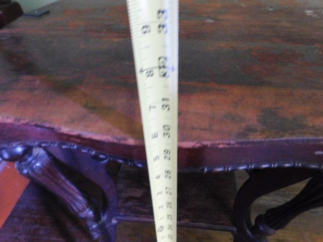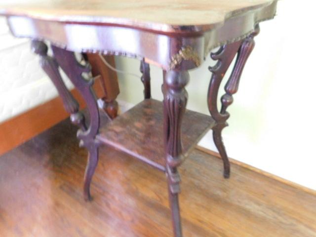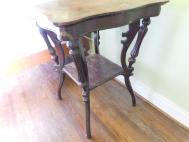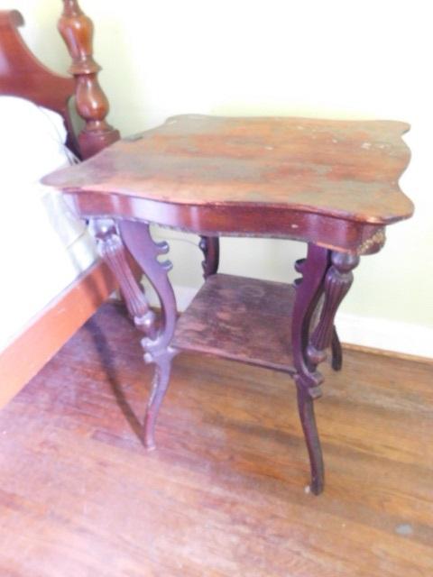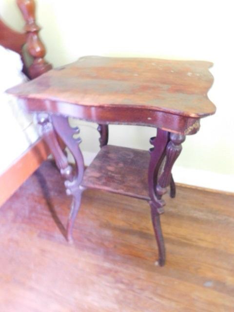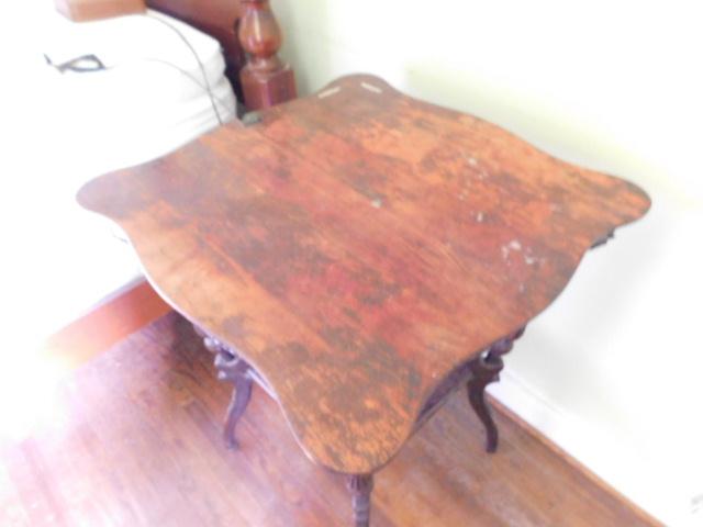 Antique Solid Wood Accent Table surface finish has blemishes as shown. Upstairs item