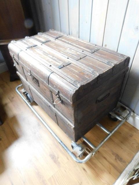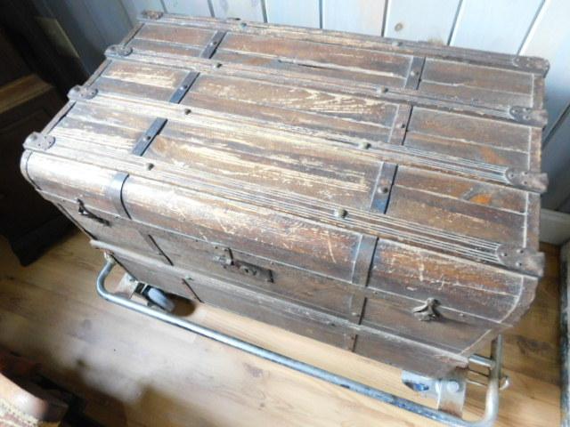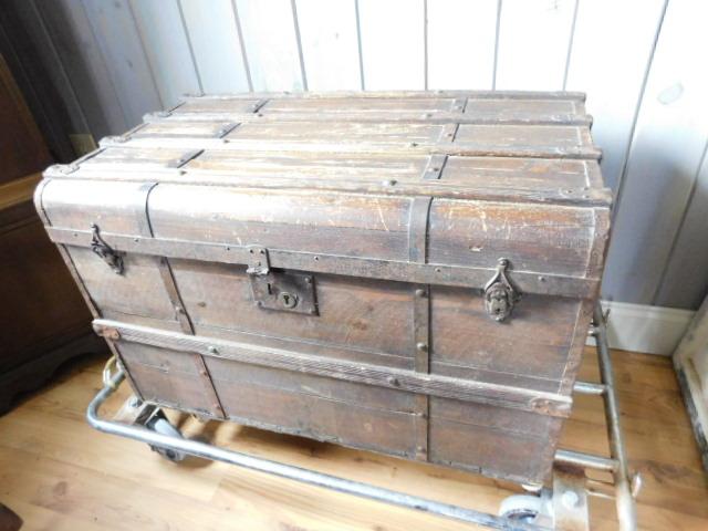 Antique Solid Wood Blanket Chest or Trunk 30"x18" all hardware and handles appear to be present