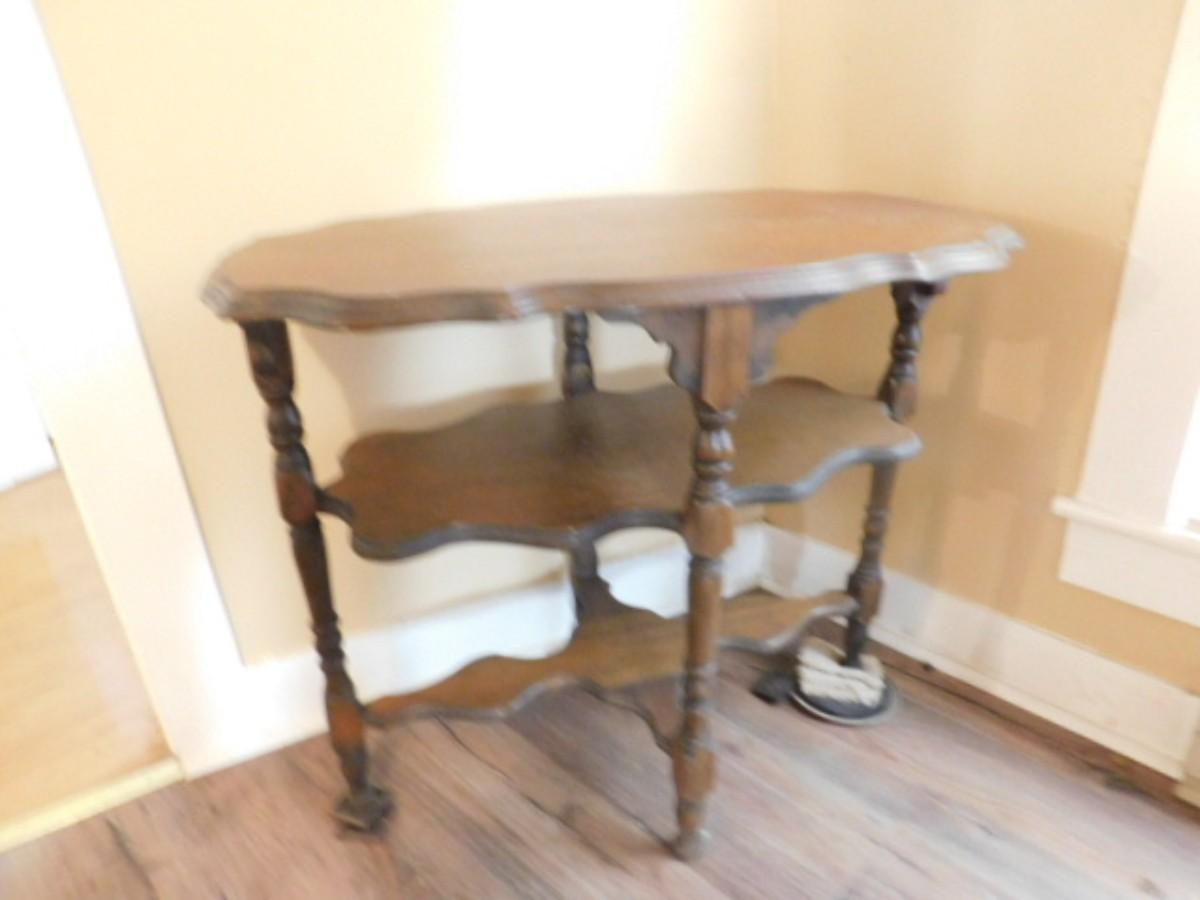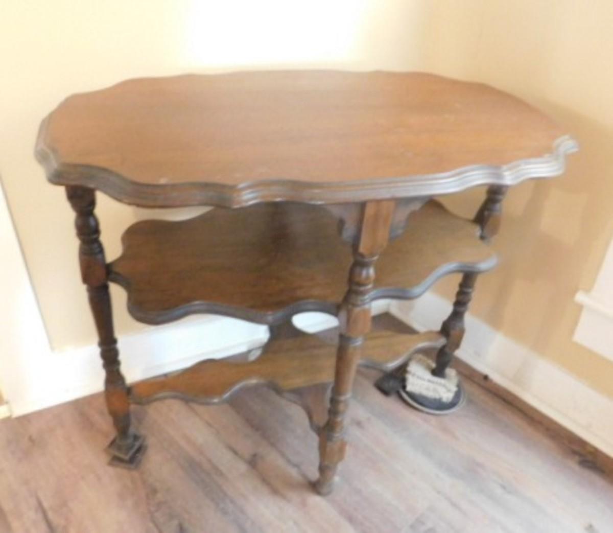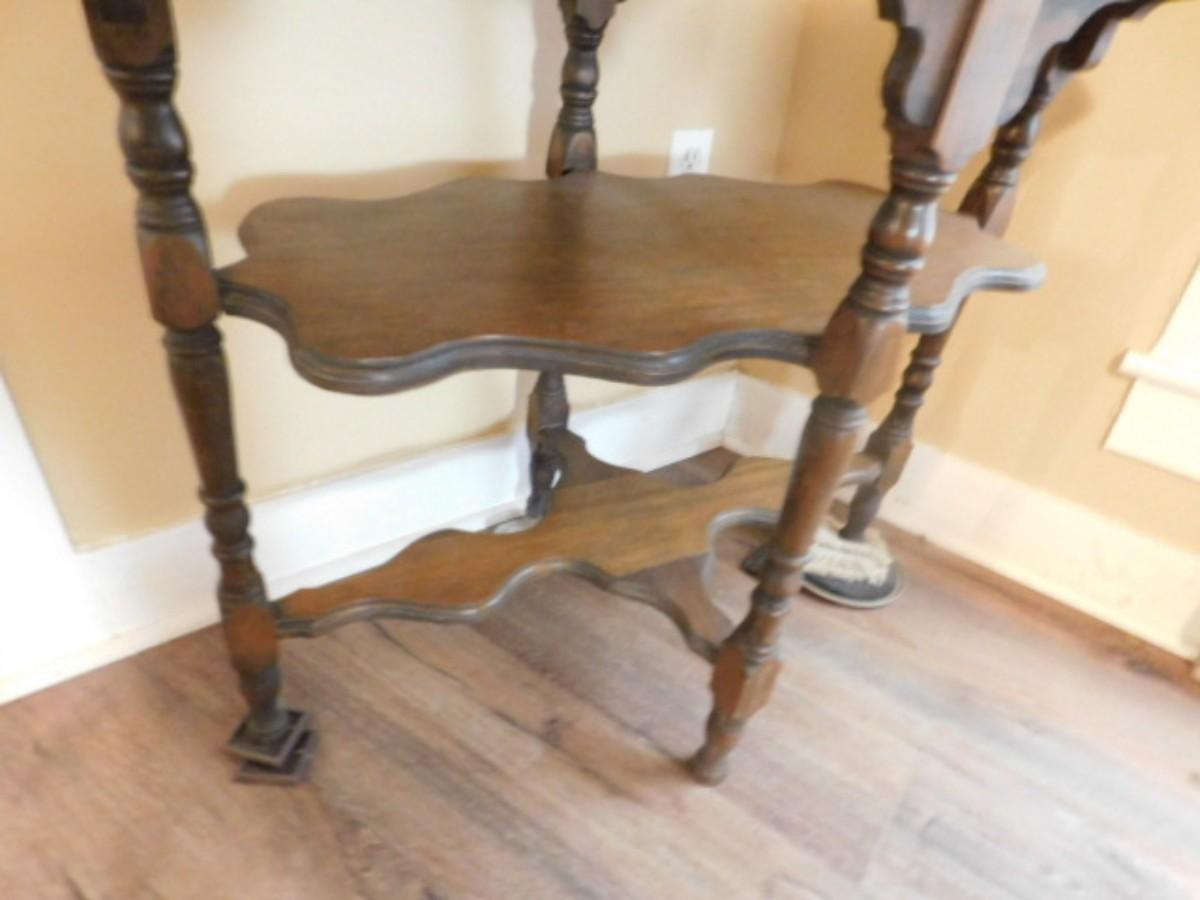 Antique Solid Wood Double Tier Accent Table with Cross Stretcher