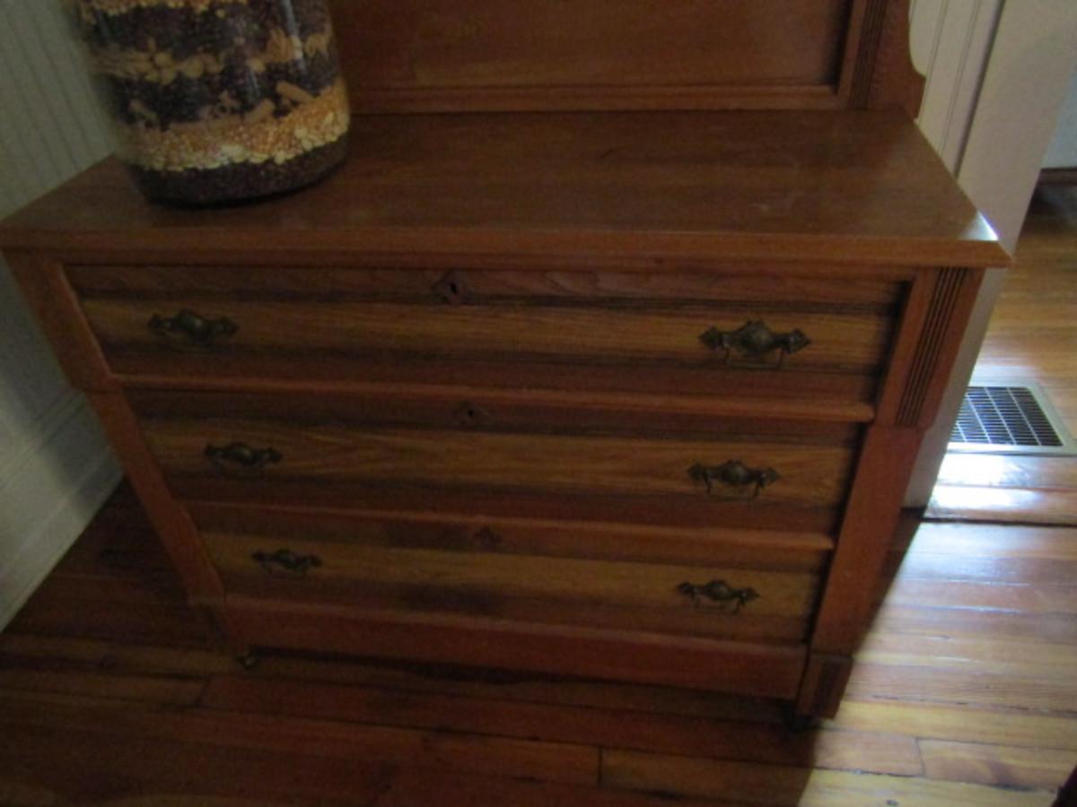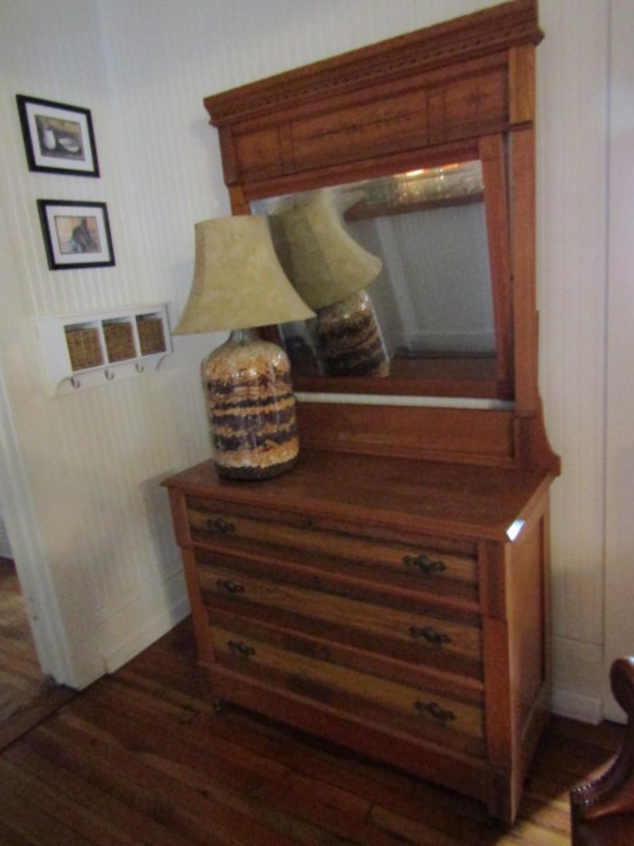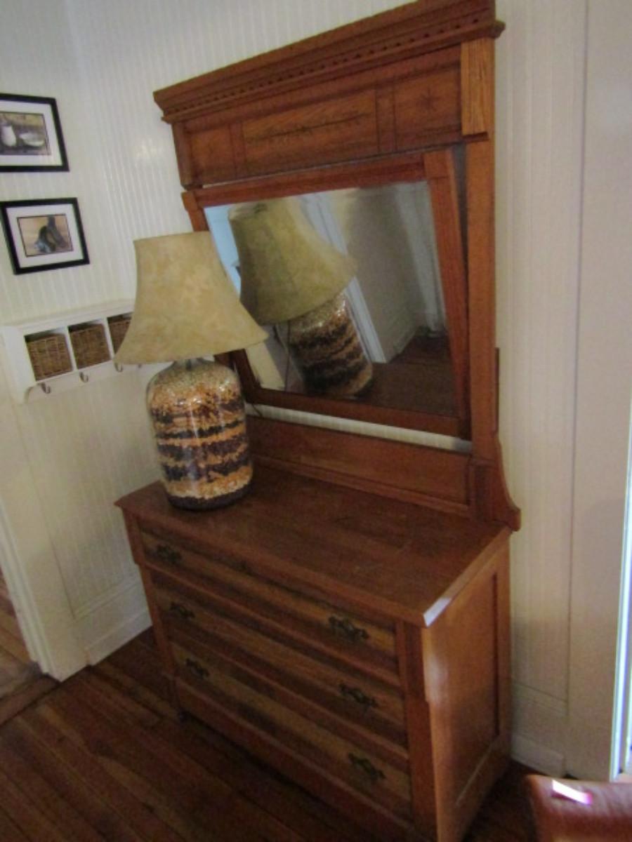 Antique Solid Wood Dresser with Swing Top Mirror (No Contents)