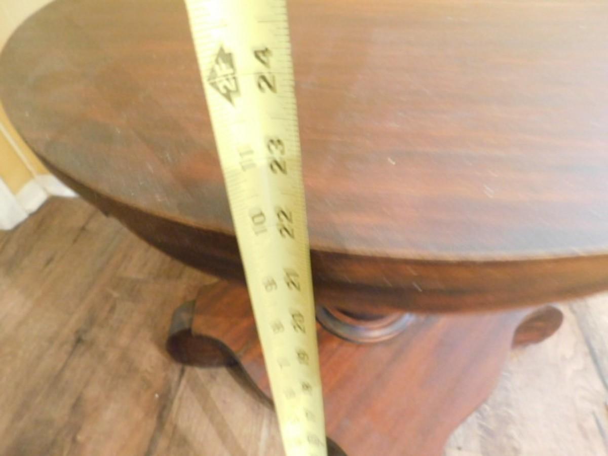 Antique Solid Wood Empire Style Side Table 24"x22" has a noticeable tilt on the surface as shown