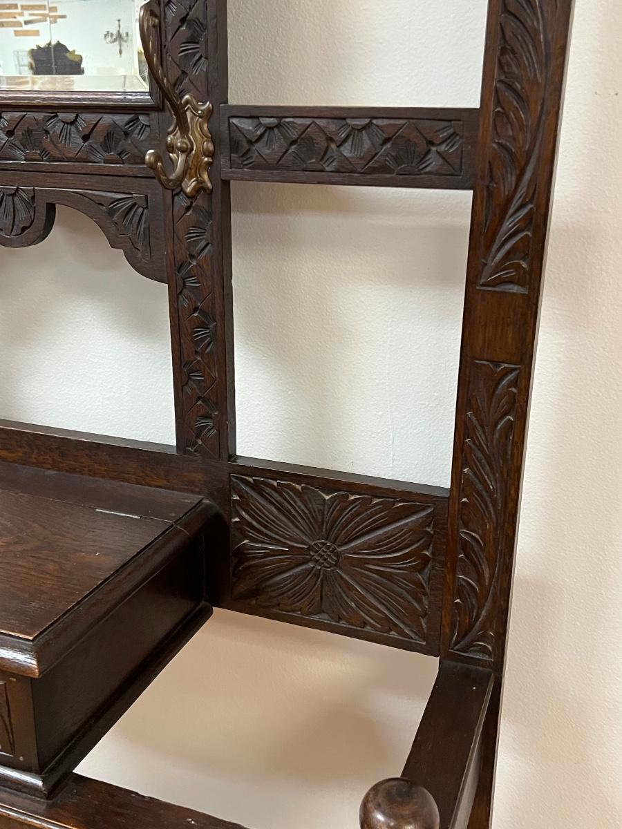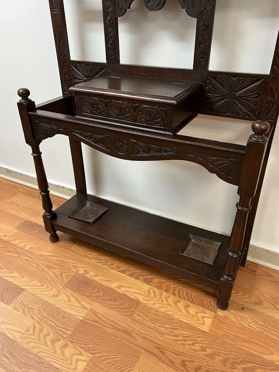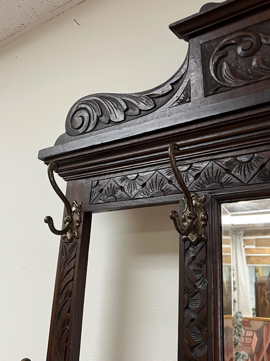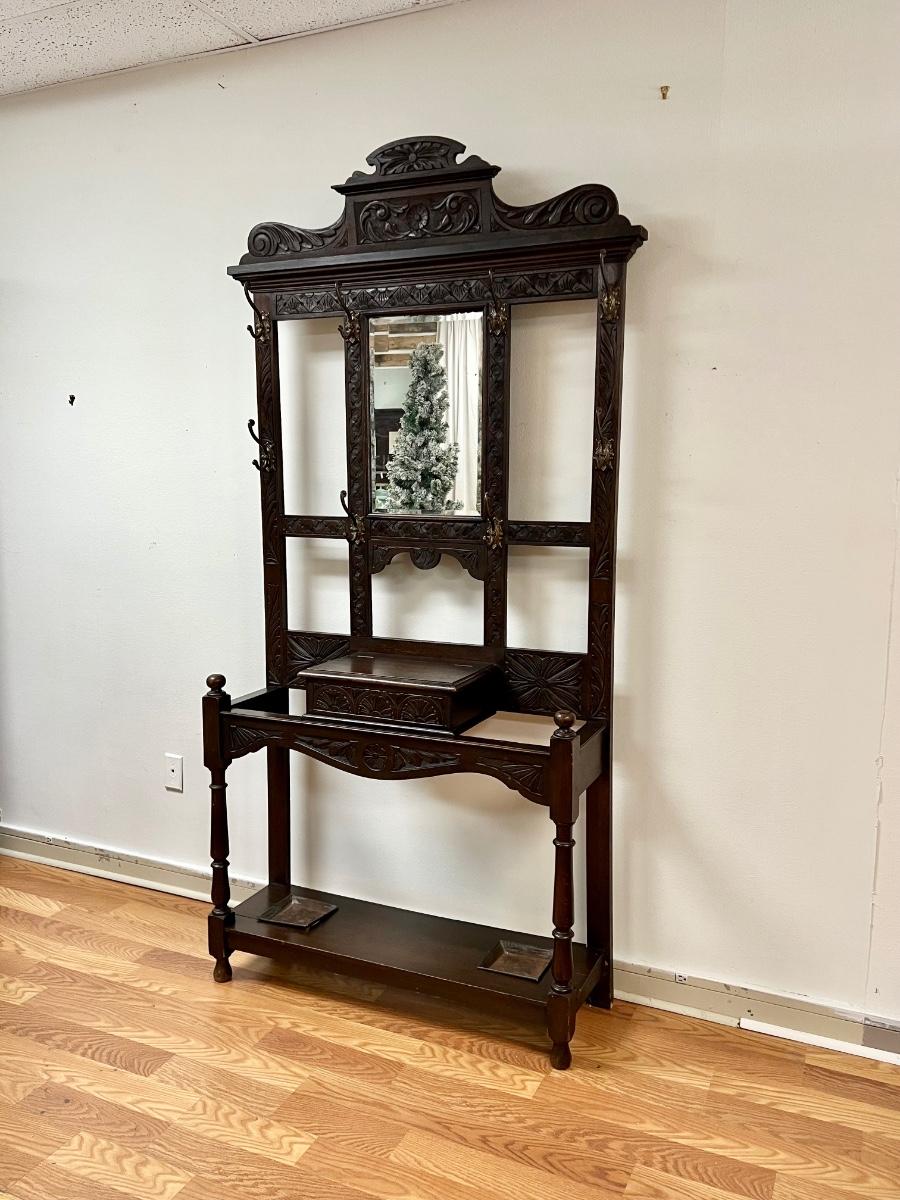 Antique Solid Wood Beveled Mirror Hall Tree
