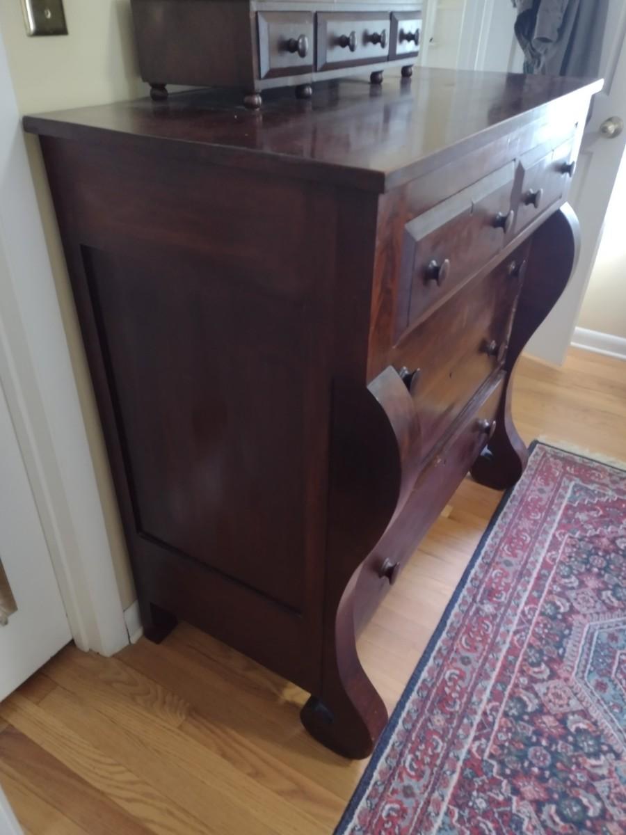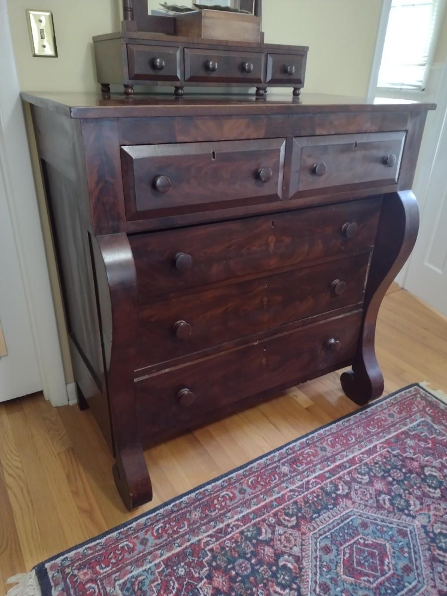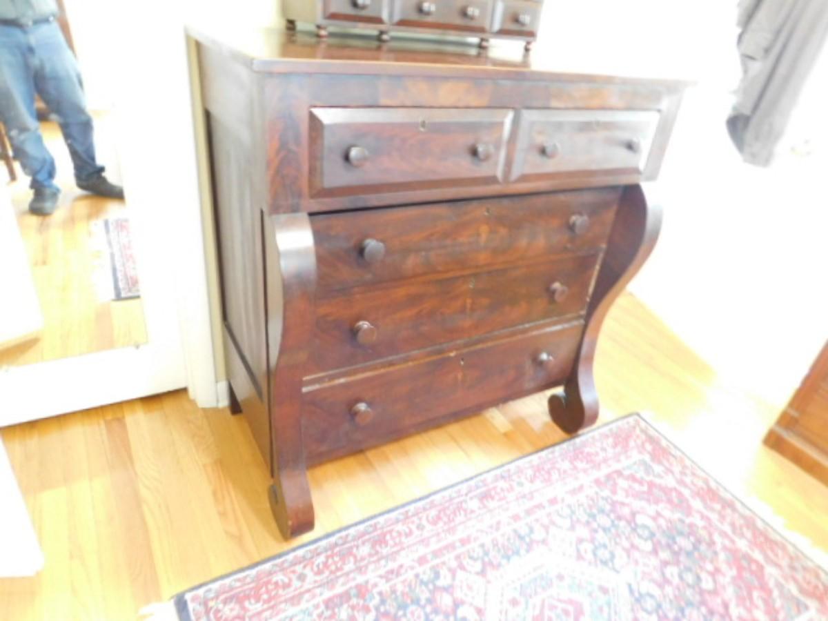 Antique Solid Wood Mahogany Empire 2 over 3 Chest of Drawers