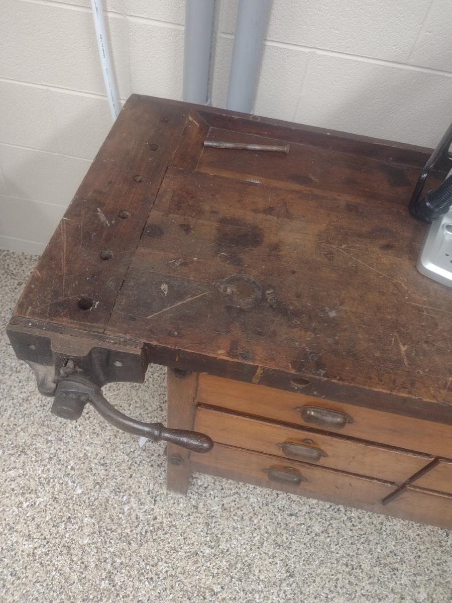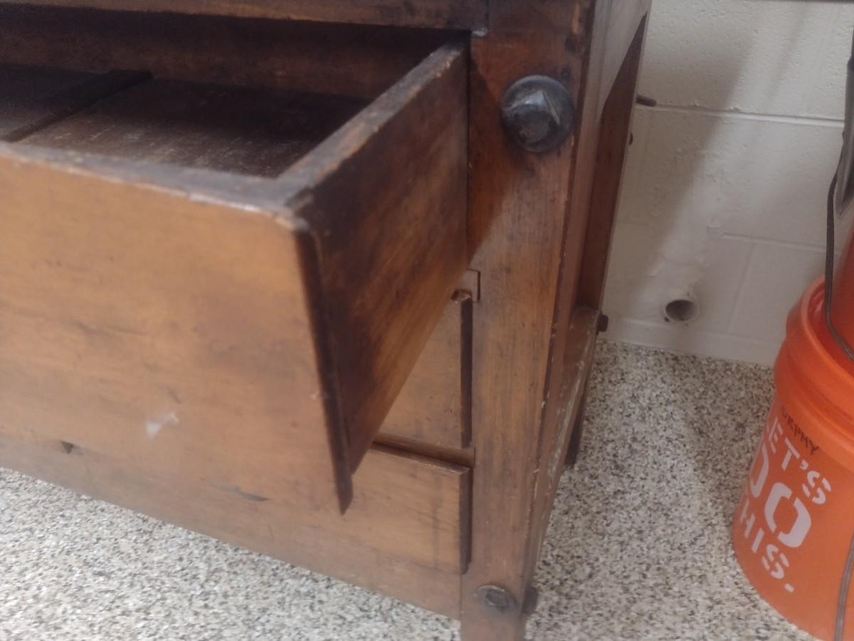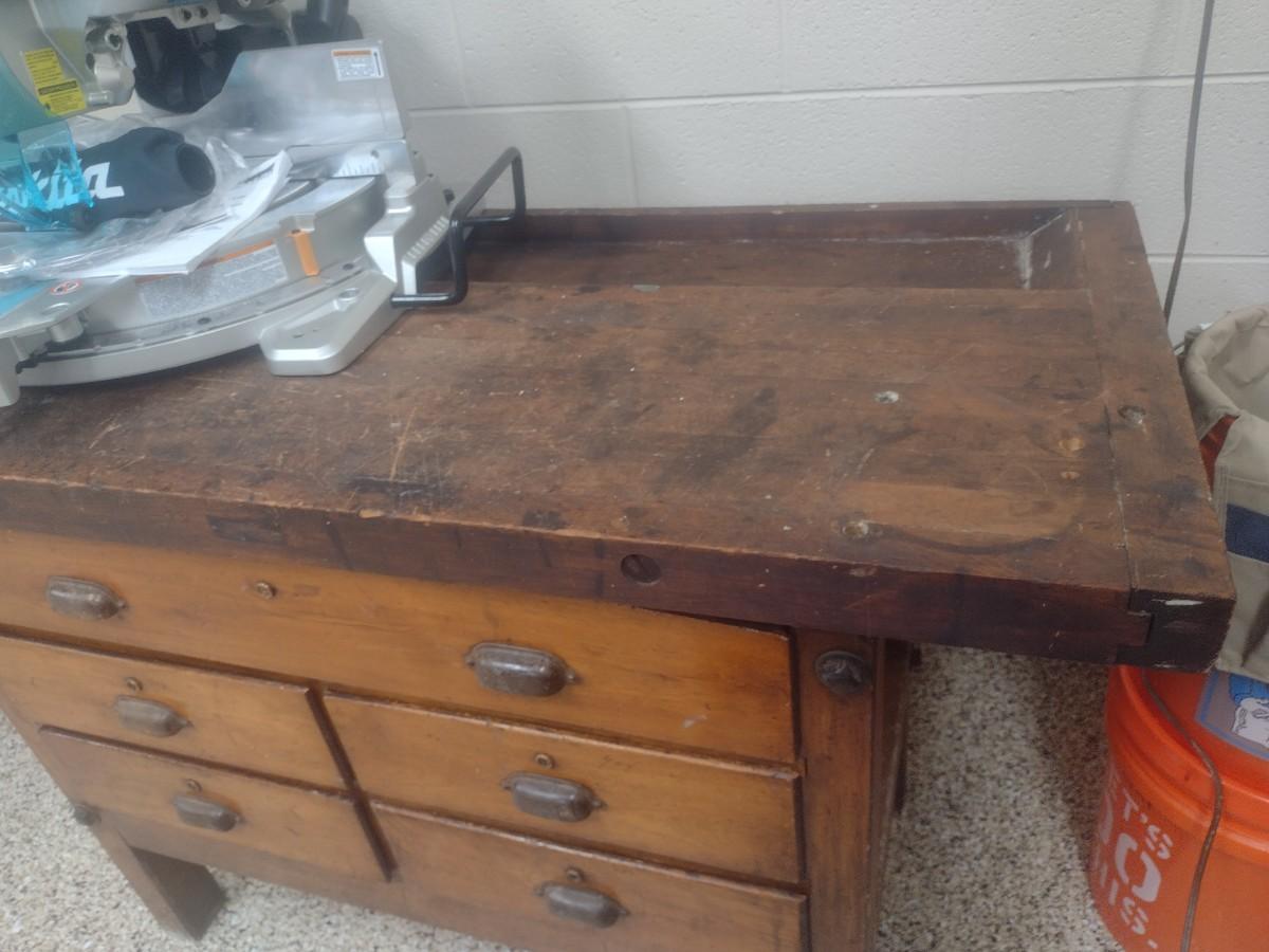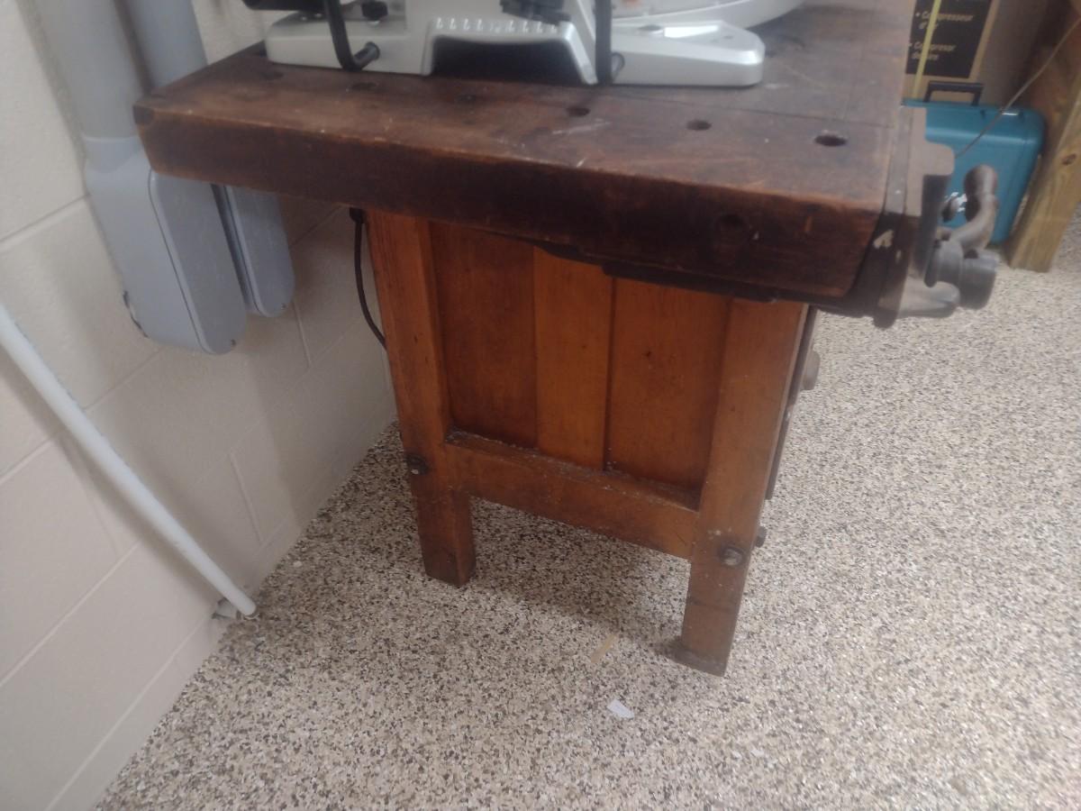 Antique Solid Wood Multi-Drawer Work Bench with Vise Attachment