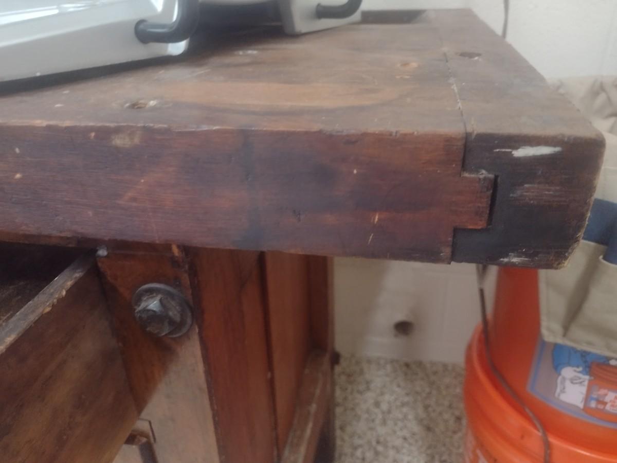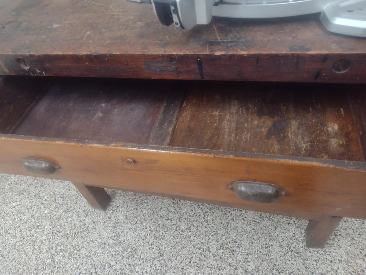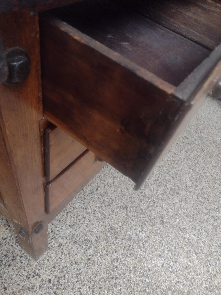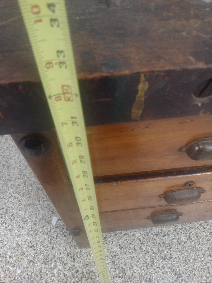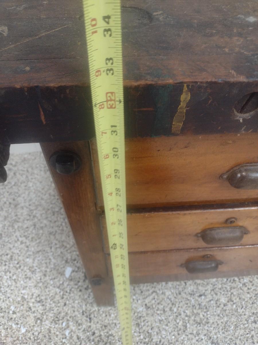 Antique Solid Wood Multi-Drawer Work Bench with Vise Attachment