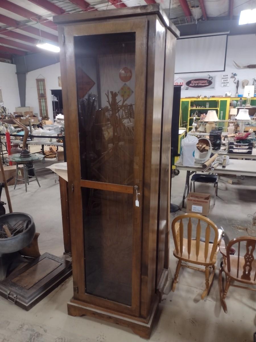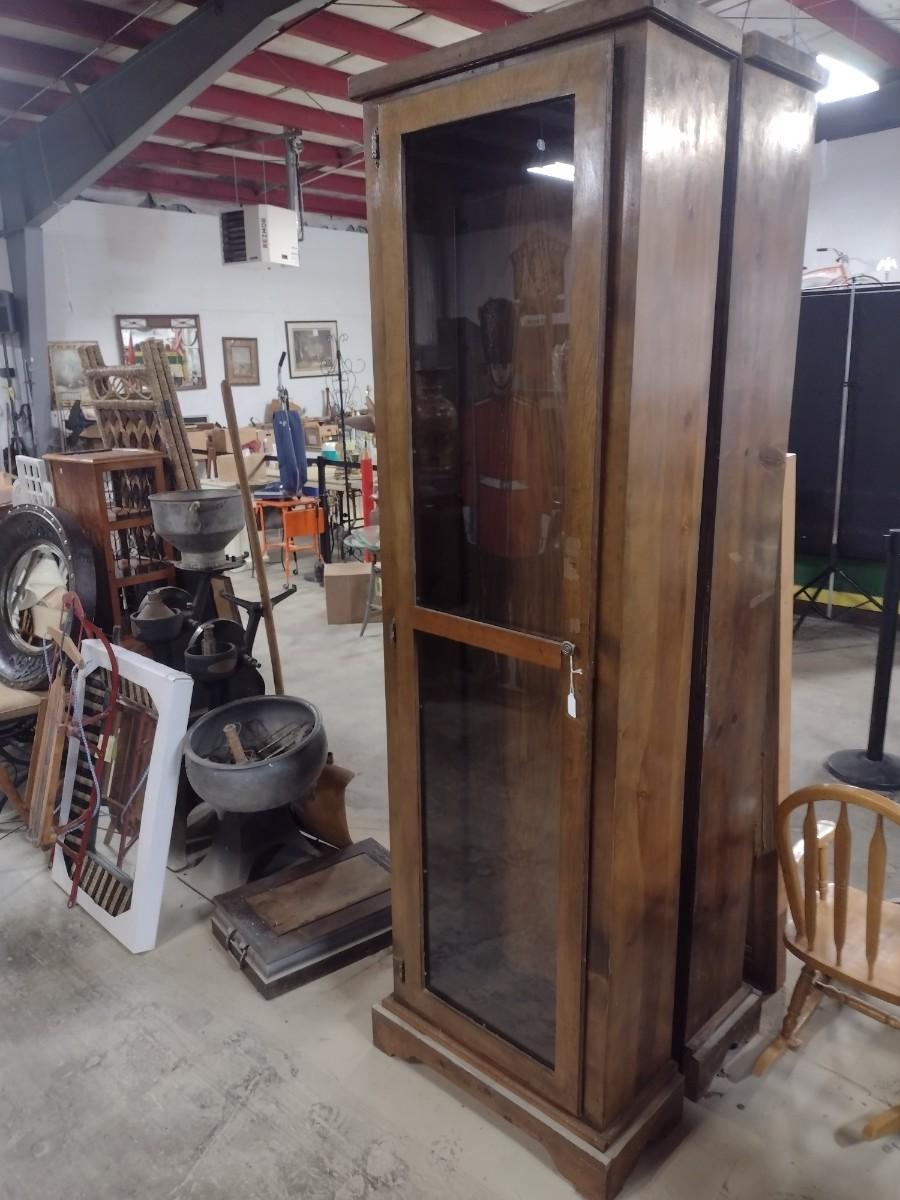 Antique Solid Wood Pine Glass Front Storage Cabinet with Glass Shelves Choice A. Left hand open