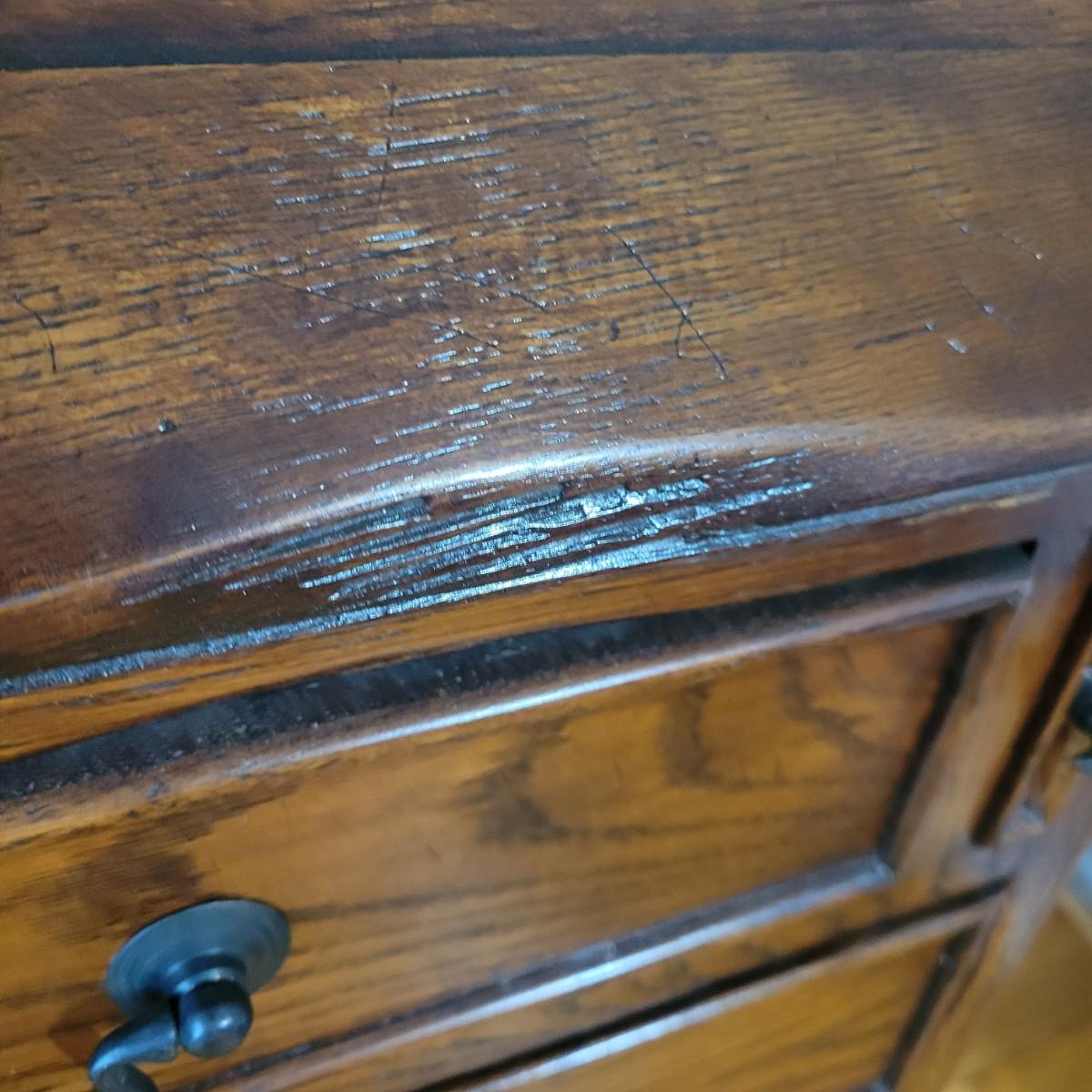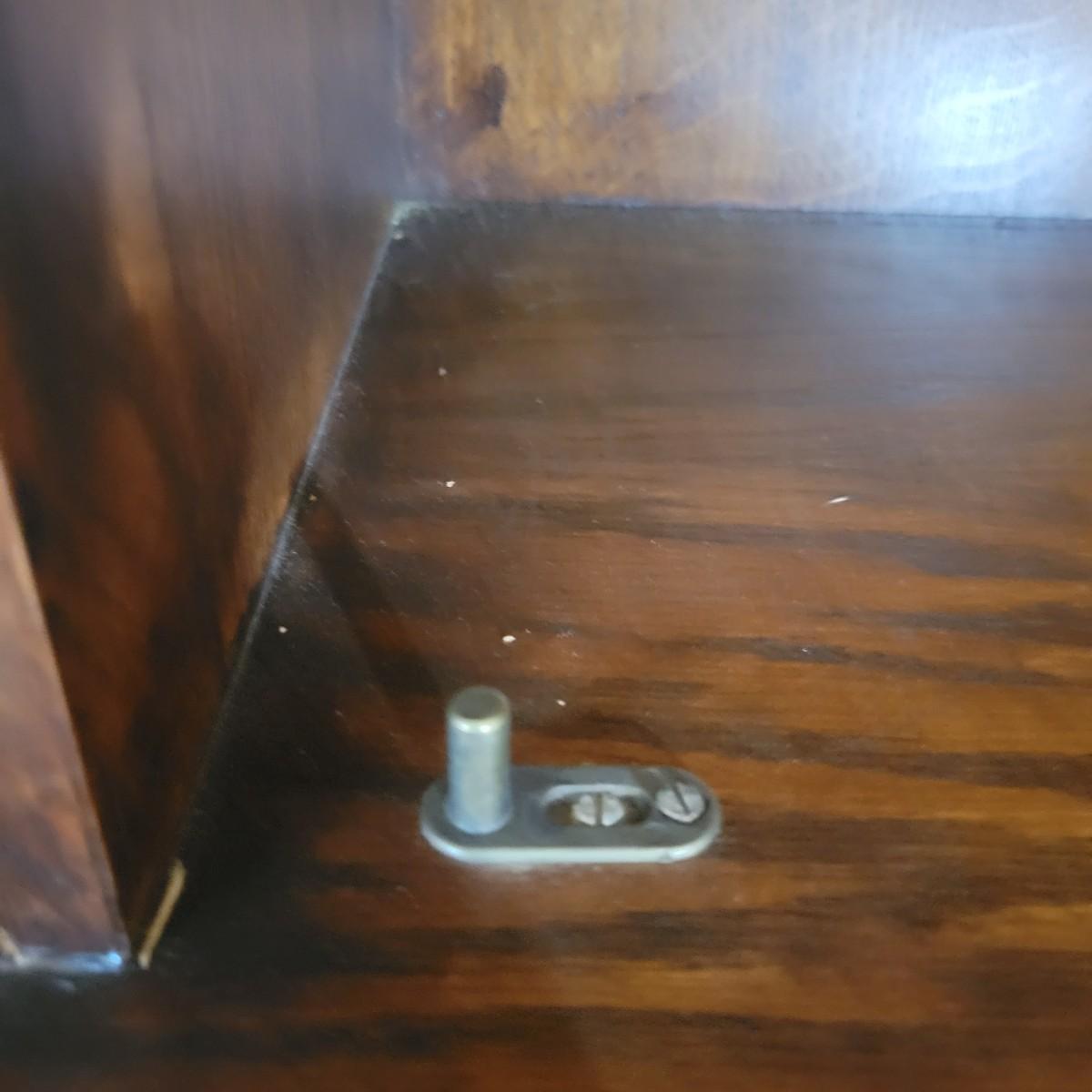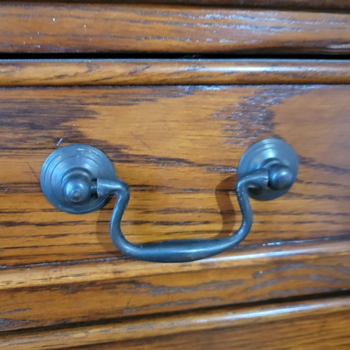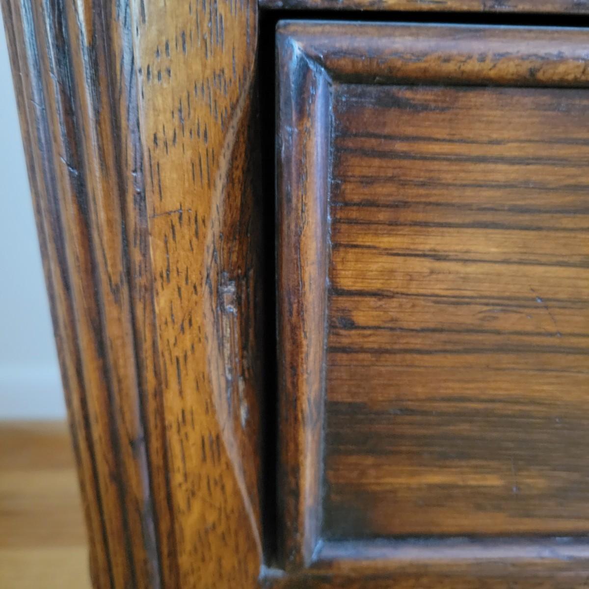 An antique solid wood secretary in good condition with a few minor blemishes. It appears that this piece was likely restored based on its condition and the condition of the wood blemishes. There are no scratches on this piece. This is a five drawer secretary with dovetailed drawers and two shelves in the hutch. The hutch features beveled glass on its doors and a two key locking/latching mechanism. Only the right side still works. The writing desk has a drop down writing surface with a functional locking mechanism. Inside, there are numerous drawers and hidden cubbies. All hardware is brass and there are some carved details on the piece. Measures approximately 41.5" x 22" x 87". The hutch and secretary will separate without tools. The winning bidder will need to bring assistance as this piece is substantial. Local Pickup Only