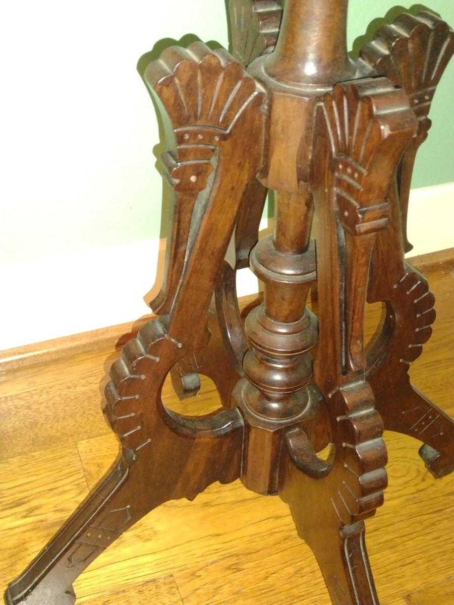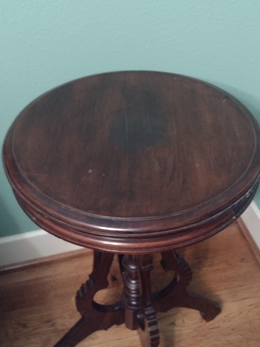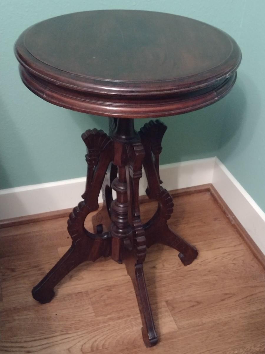Antique Solid Wood Walnut Carved Figural Base Round Side Table