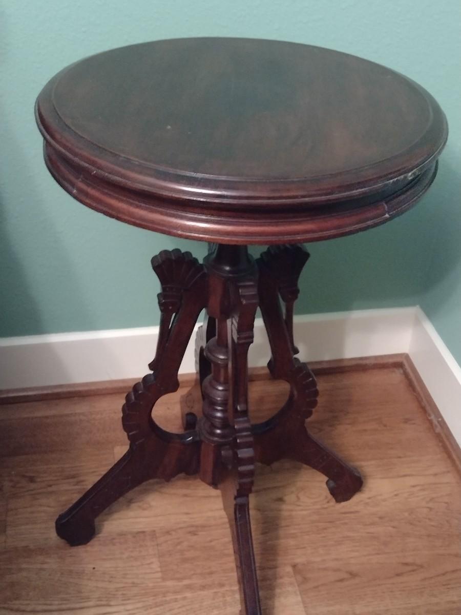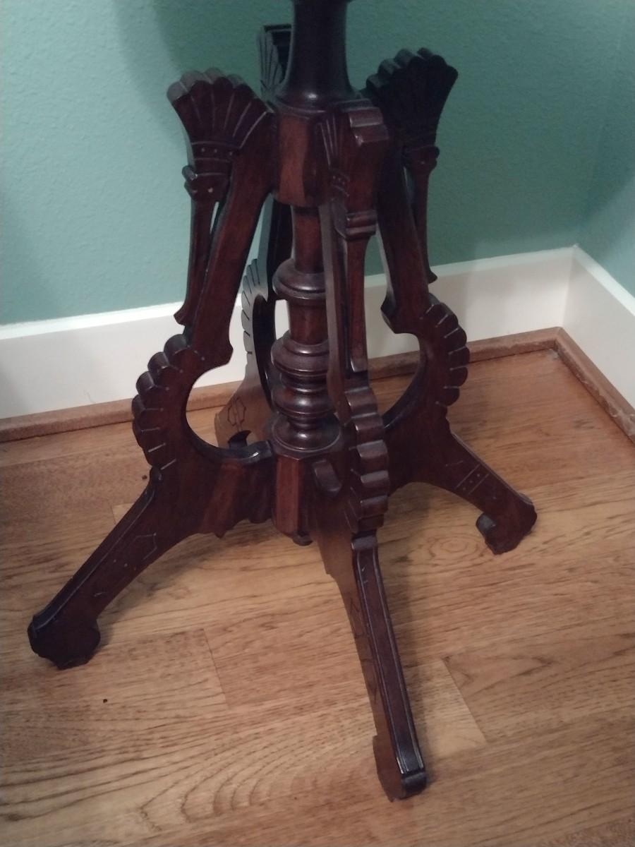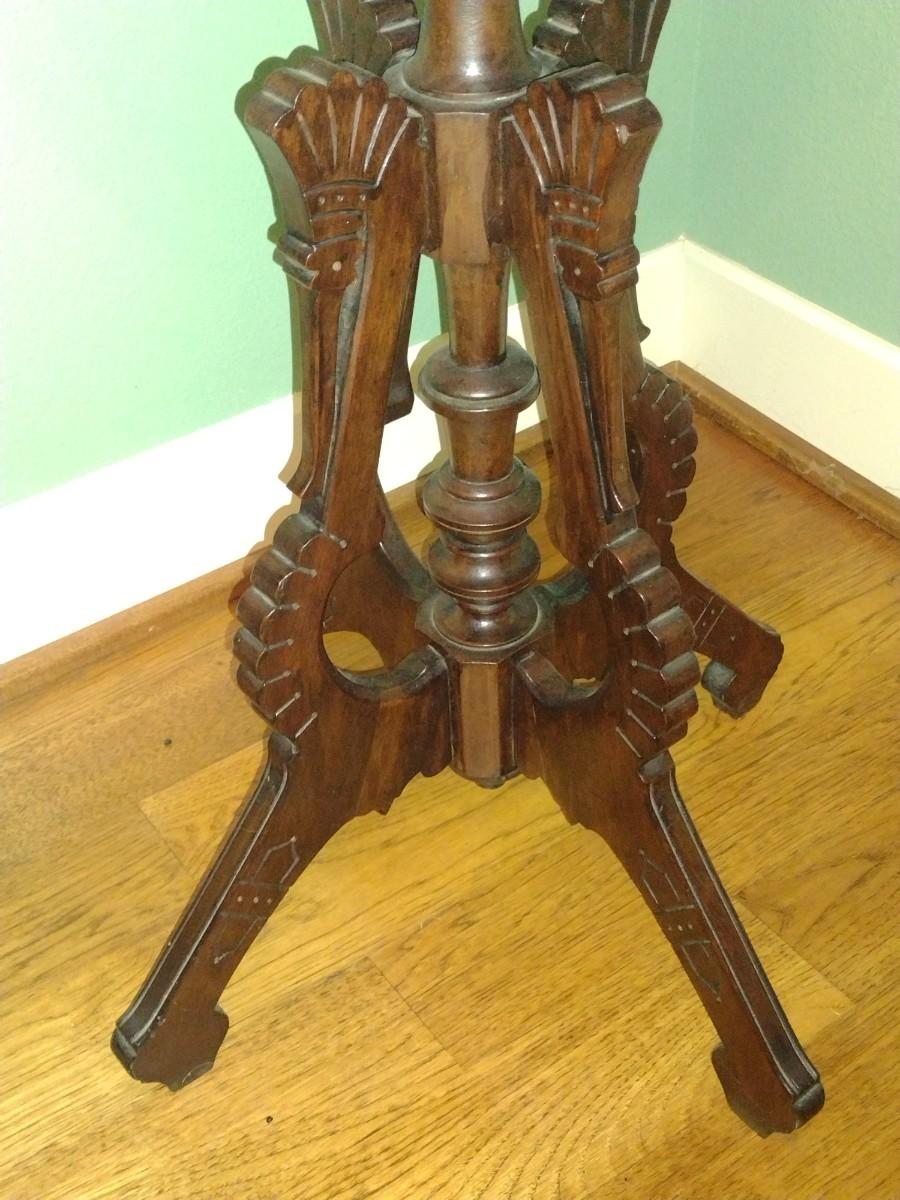 Antique Solid Wood Walnut Carved Figural Base Round Side Table