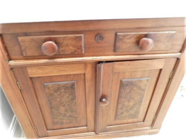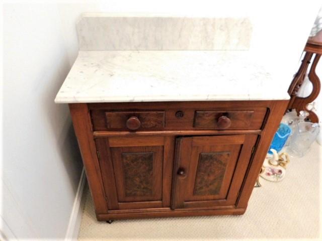 Antique Solid Wood Walnut Commode with Marble Top and Raised Panel Doors