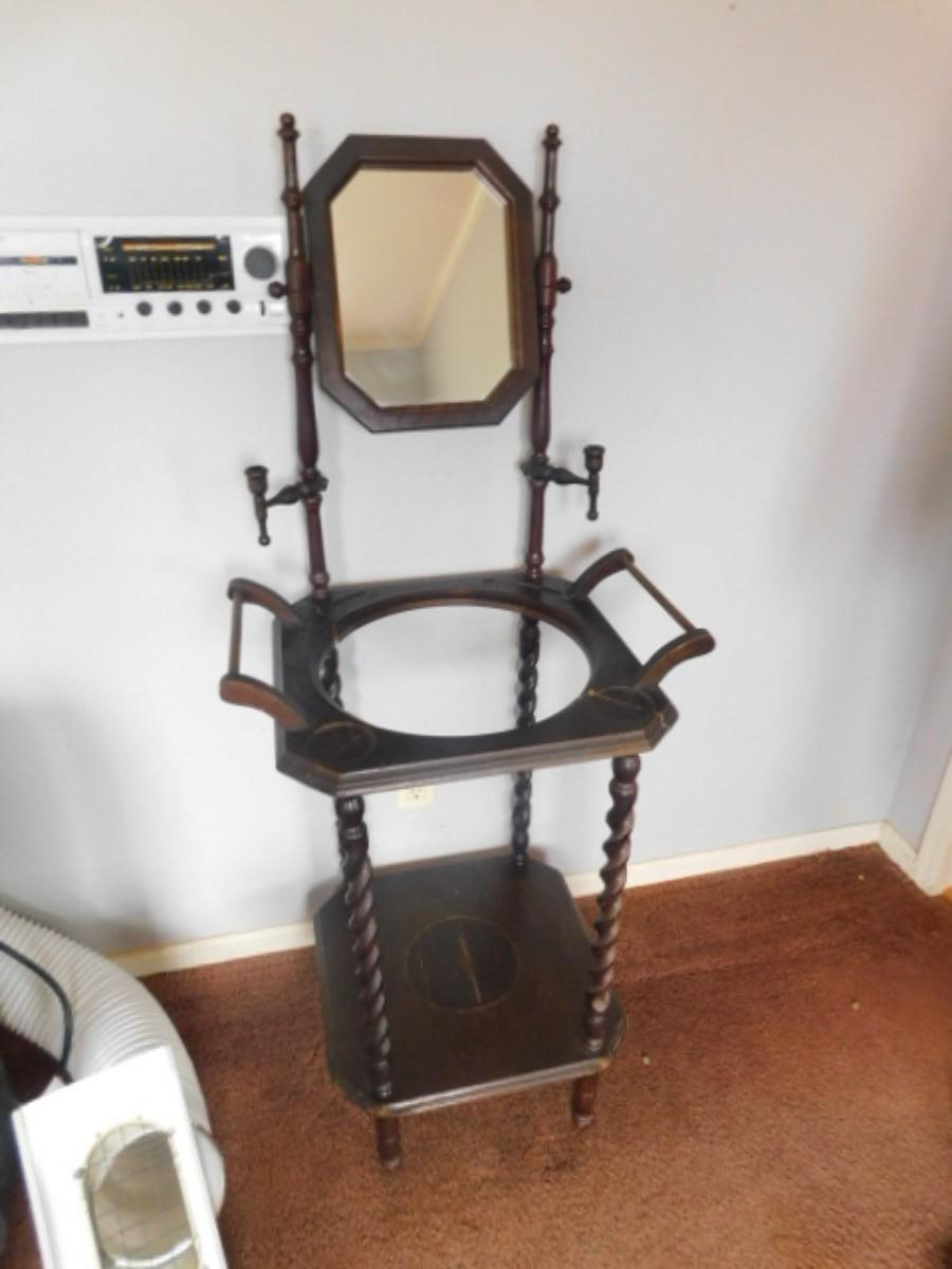 Antique Solid Wood Washstand with Mirror has some separation at joint seams as shown