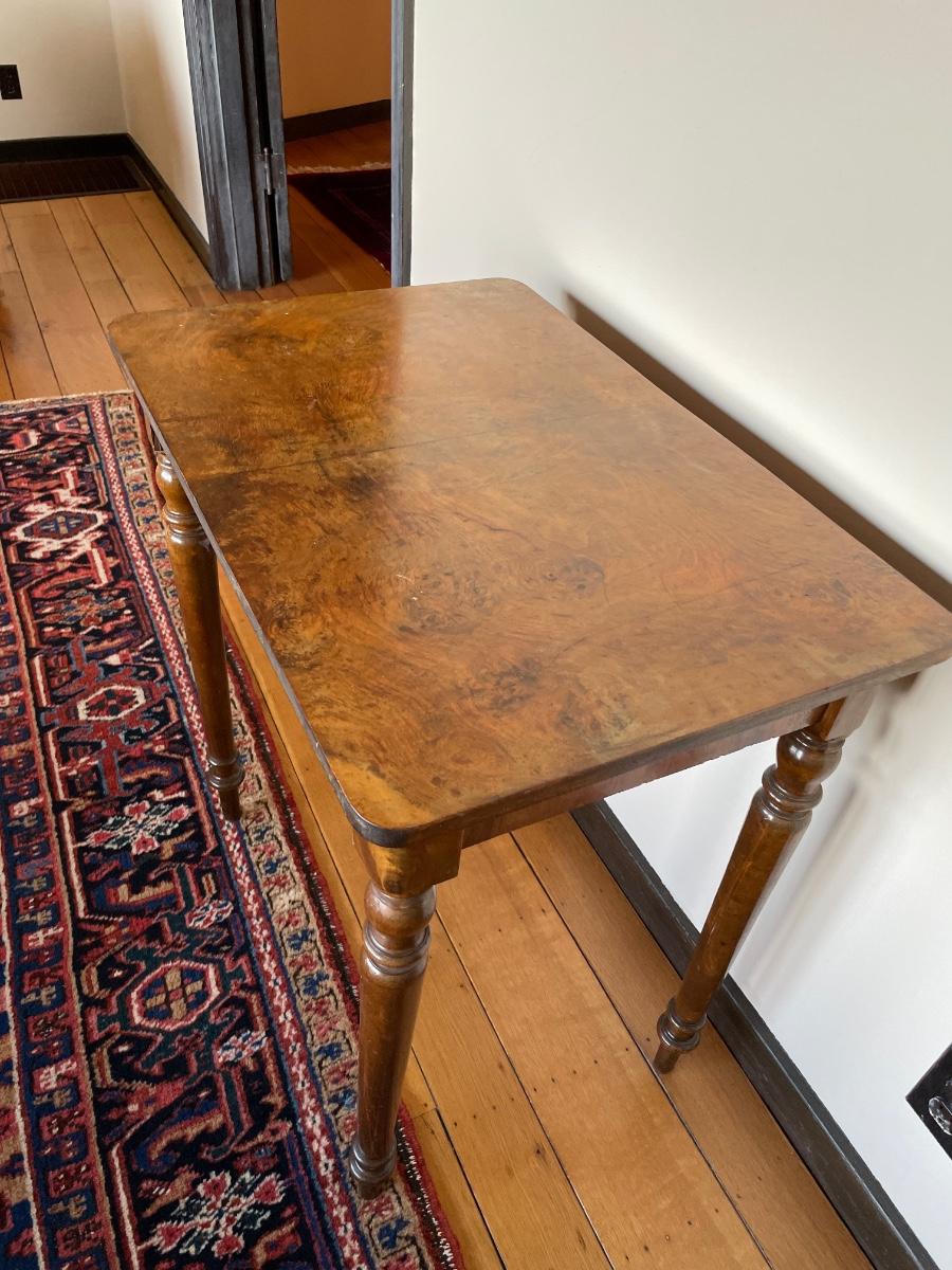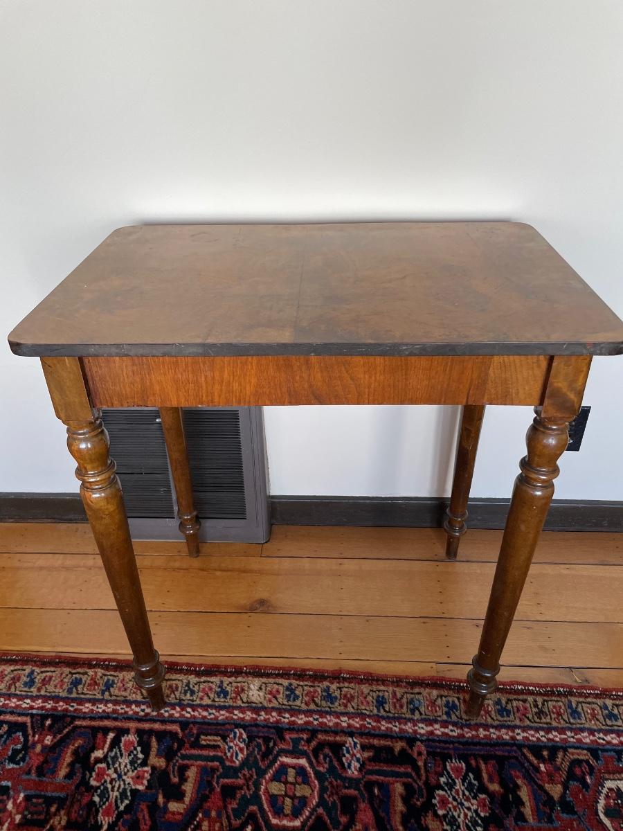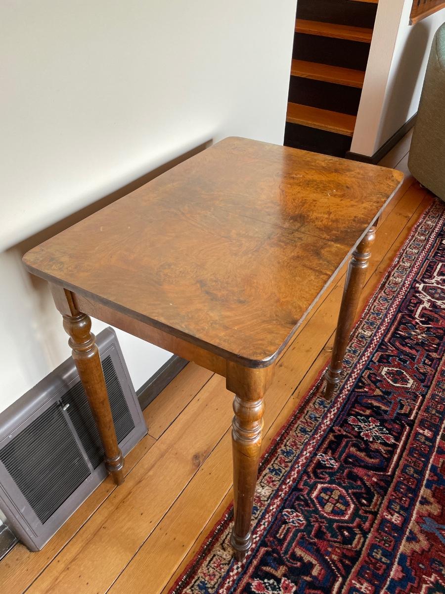 Solid wood oak side table: Dimension: 27.25W x 18.25D x 29H . Very good condition. No scratches or rings.
