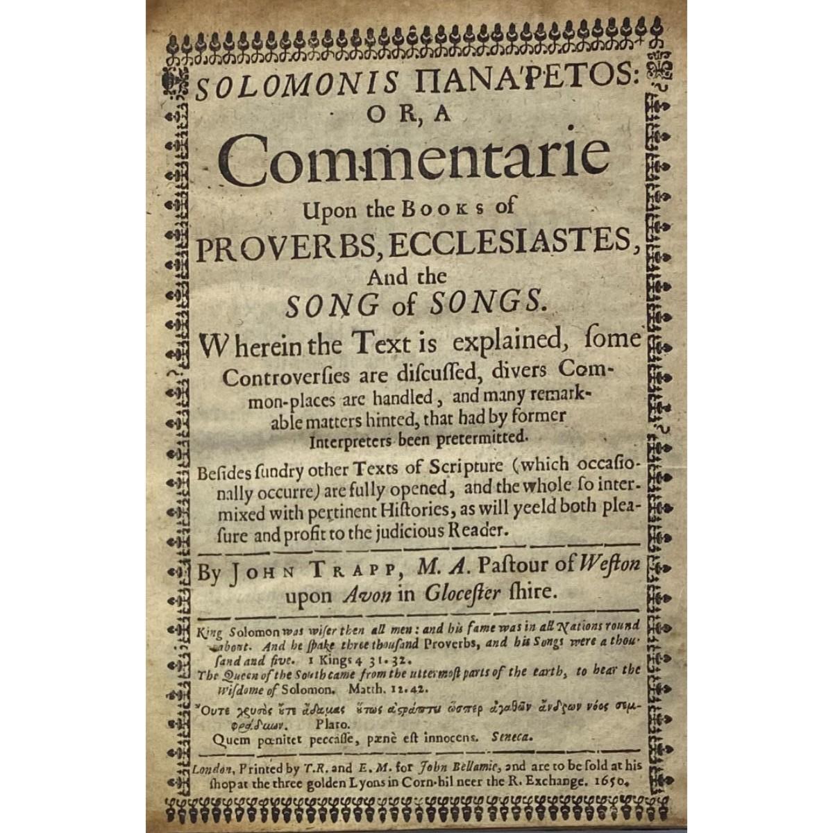Antique Solomonis Commentarie By John Trapp 1650 hardcover