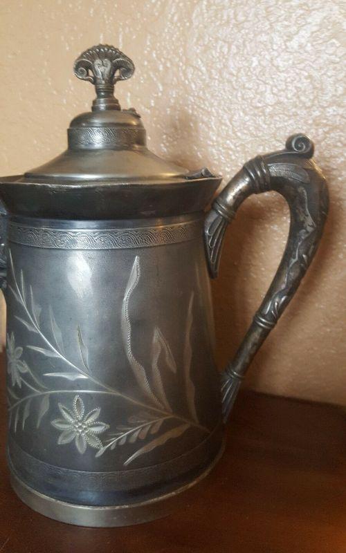 Antique S.P. & Co Etched Quadruple Plated Tea Coffee Water Pitcher 1103 London