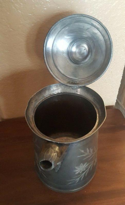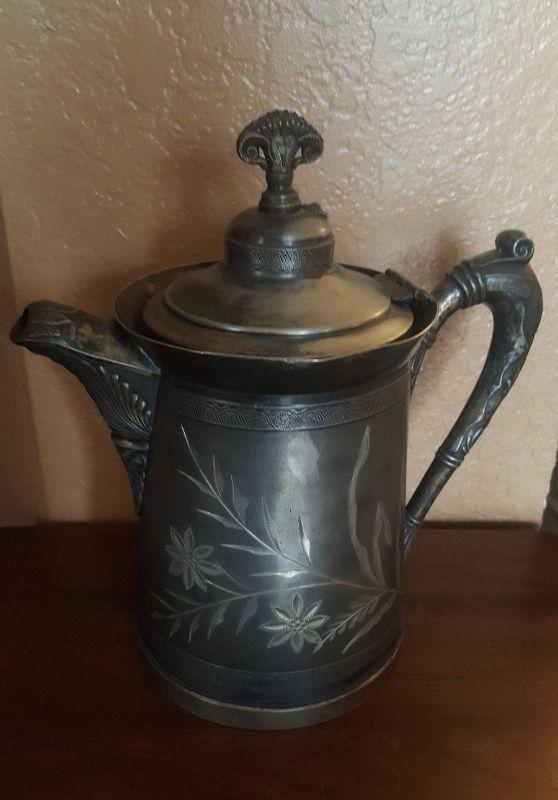 Antique S.P. & Co Etched Quadruple Plated Tea Coffee Water Pitcher #1103 London T.P. Measures: 12.5"x10.5" (Shipping Weight Approximately 6 lbs)