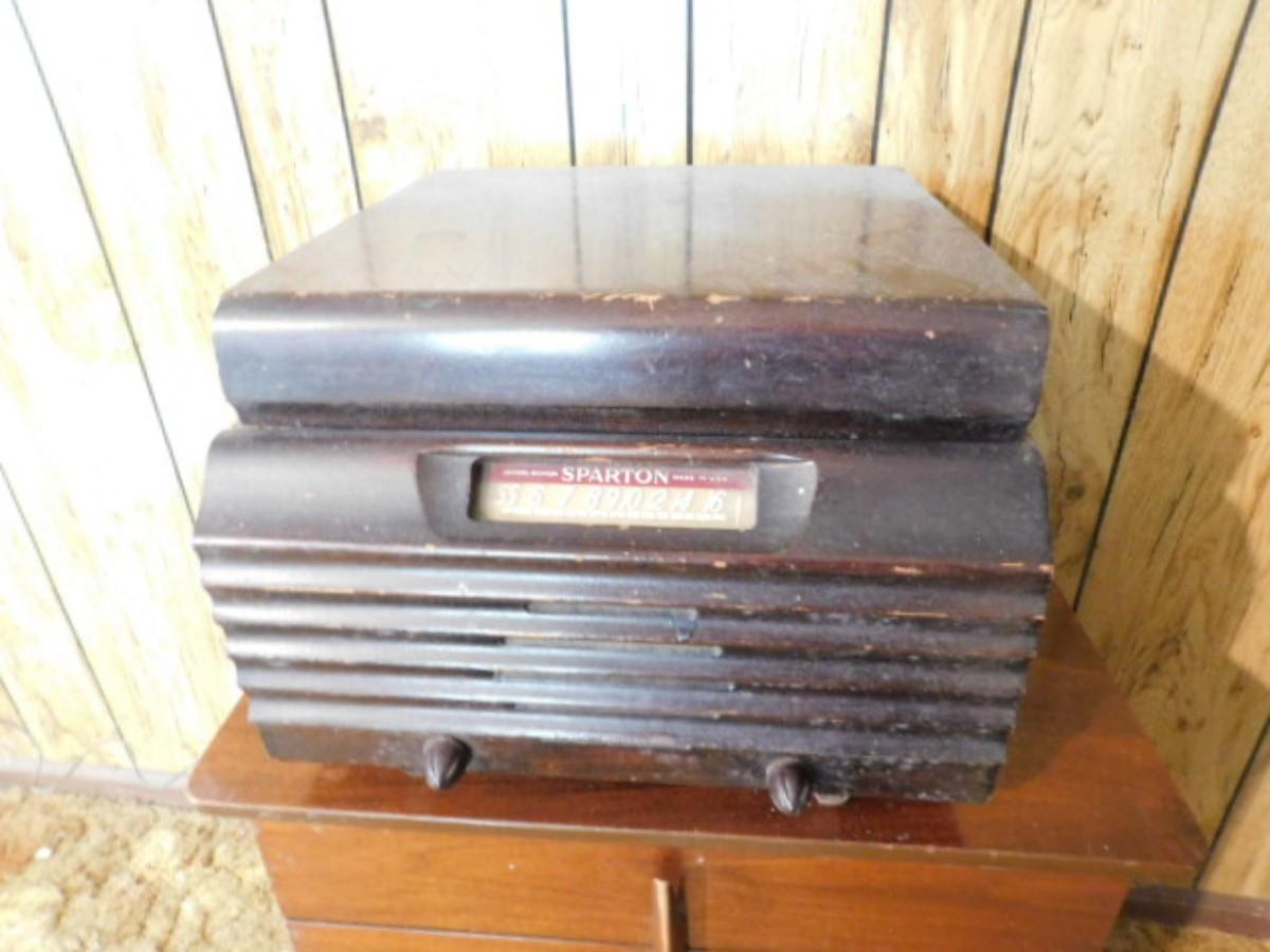 Antique Sparton Turntable and Radio Solid Wood Mahogany Cabinet appears to play