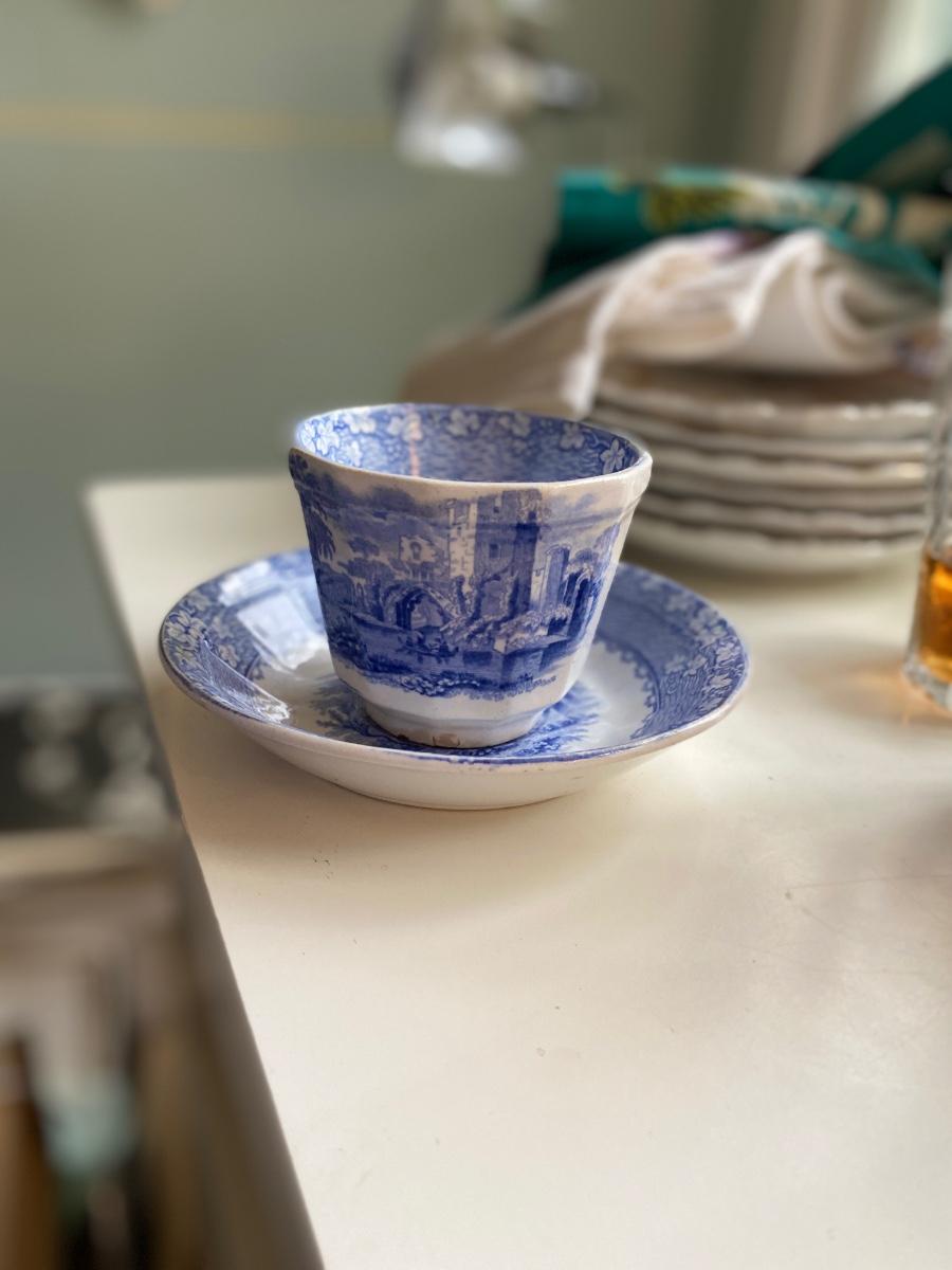 Antique Staffordshire Blue Transferware PRIORY Bowl and Saucer