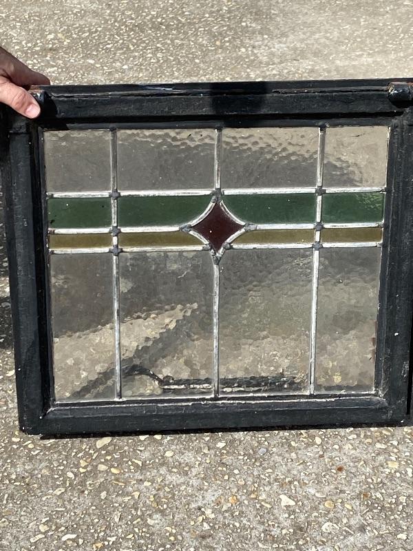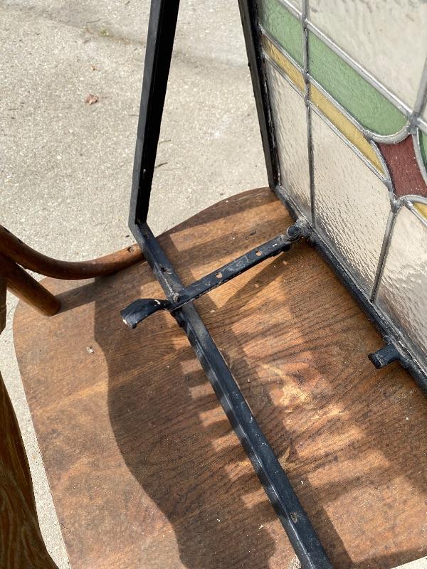 Authentic Antique Stained Glass and Metal Framed Adjustable Window
