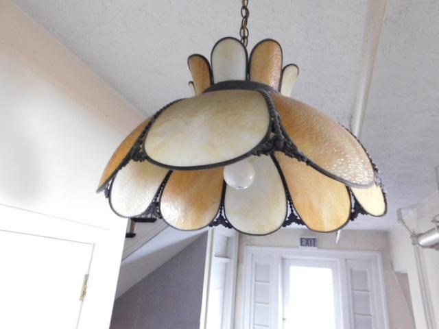 Antique Stained Glass Flower Pedal Shade and Ceiling Light Fixture #2of 2 bring ladder and tools to remove from ceiling
