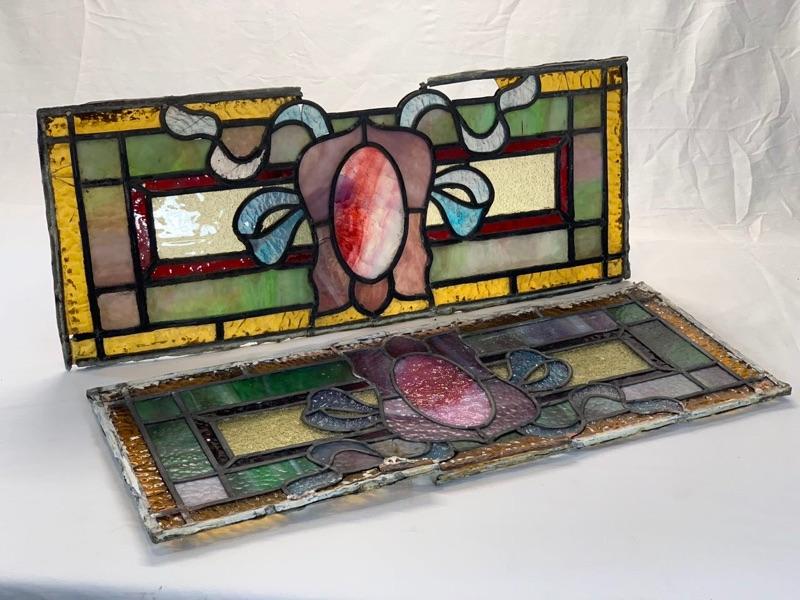Antique stainded glass transom pieces. Some leading may need soldering. Local Pickup Only.