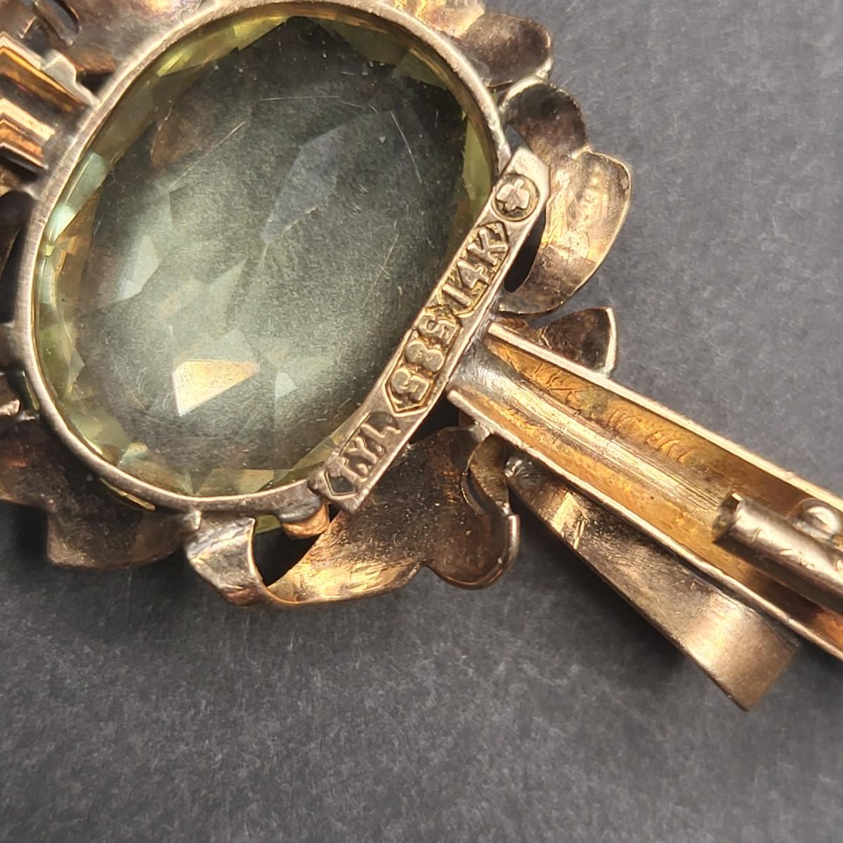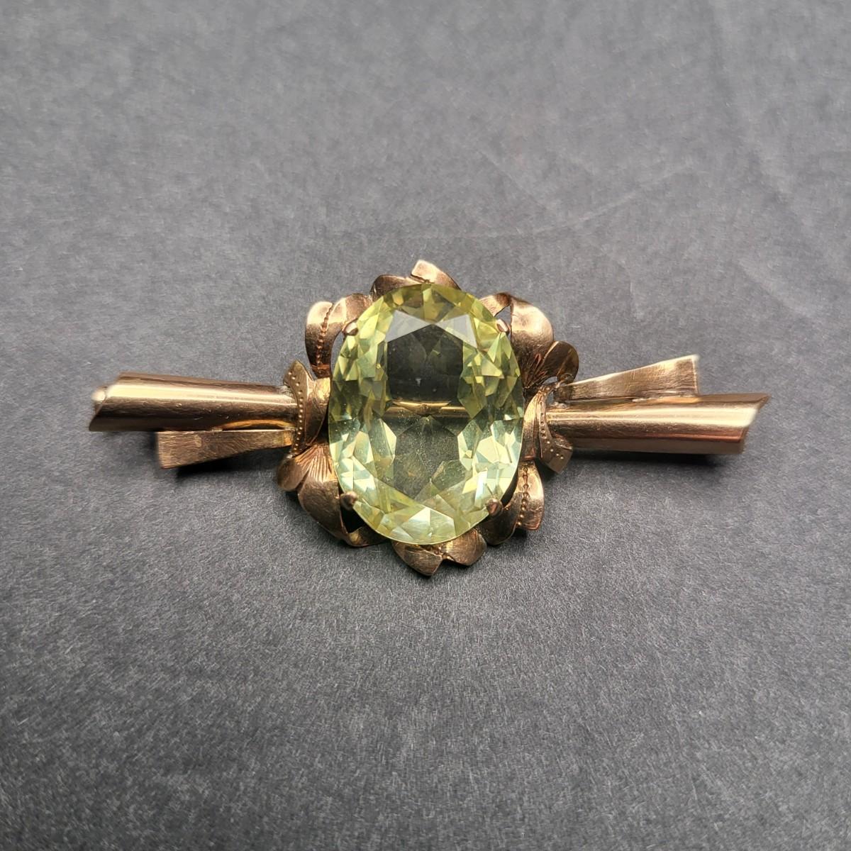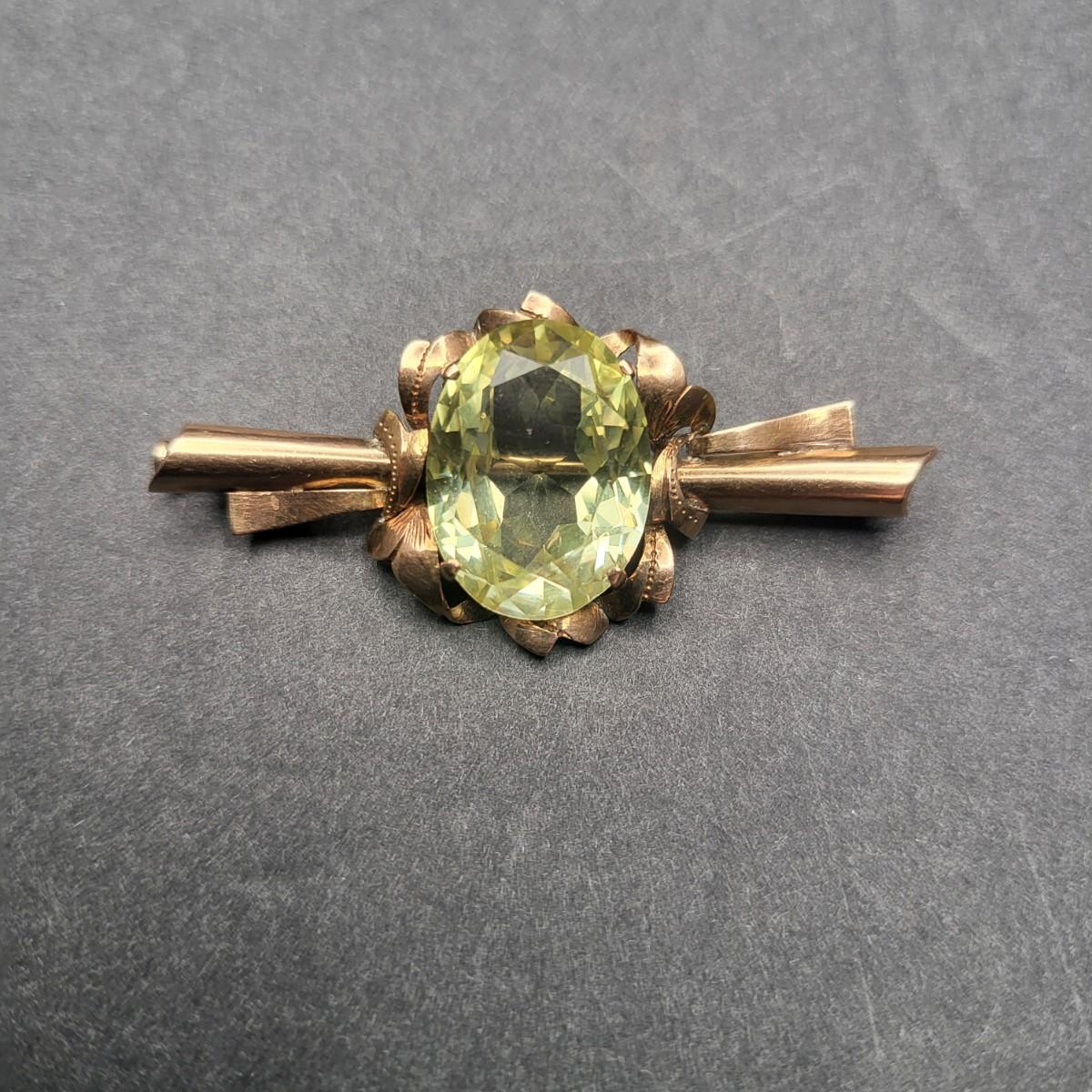 Antique T.Y.L. 14k Gold (585) Yellow Sapphire Brooch 8.8gr