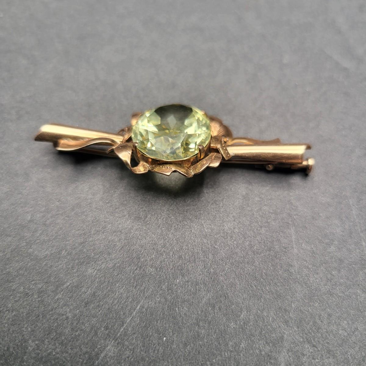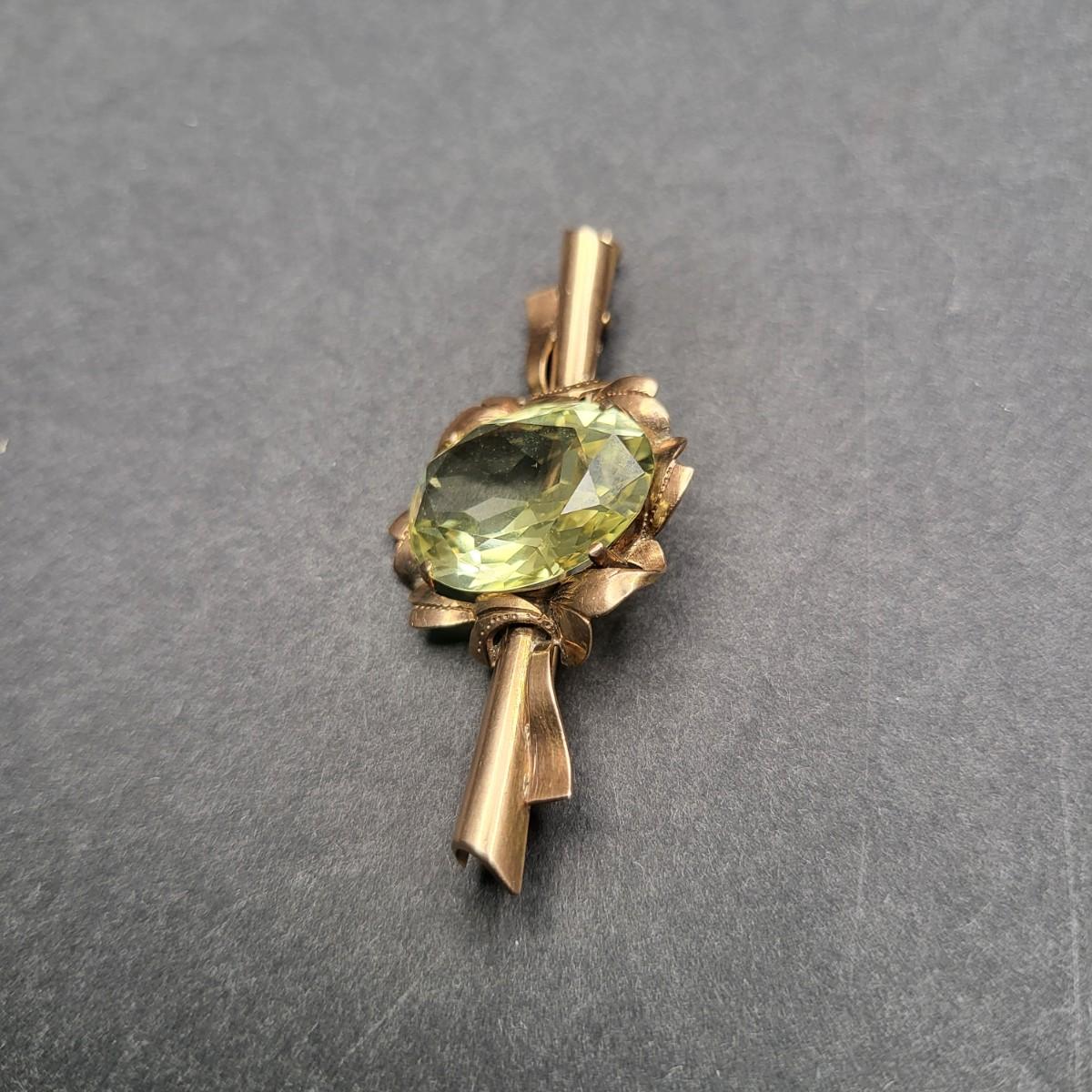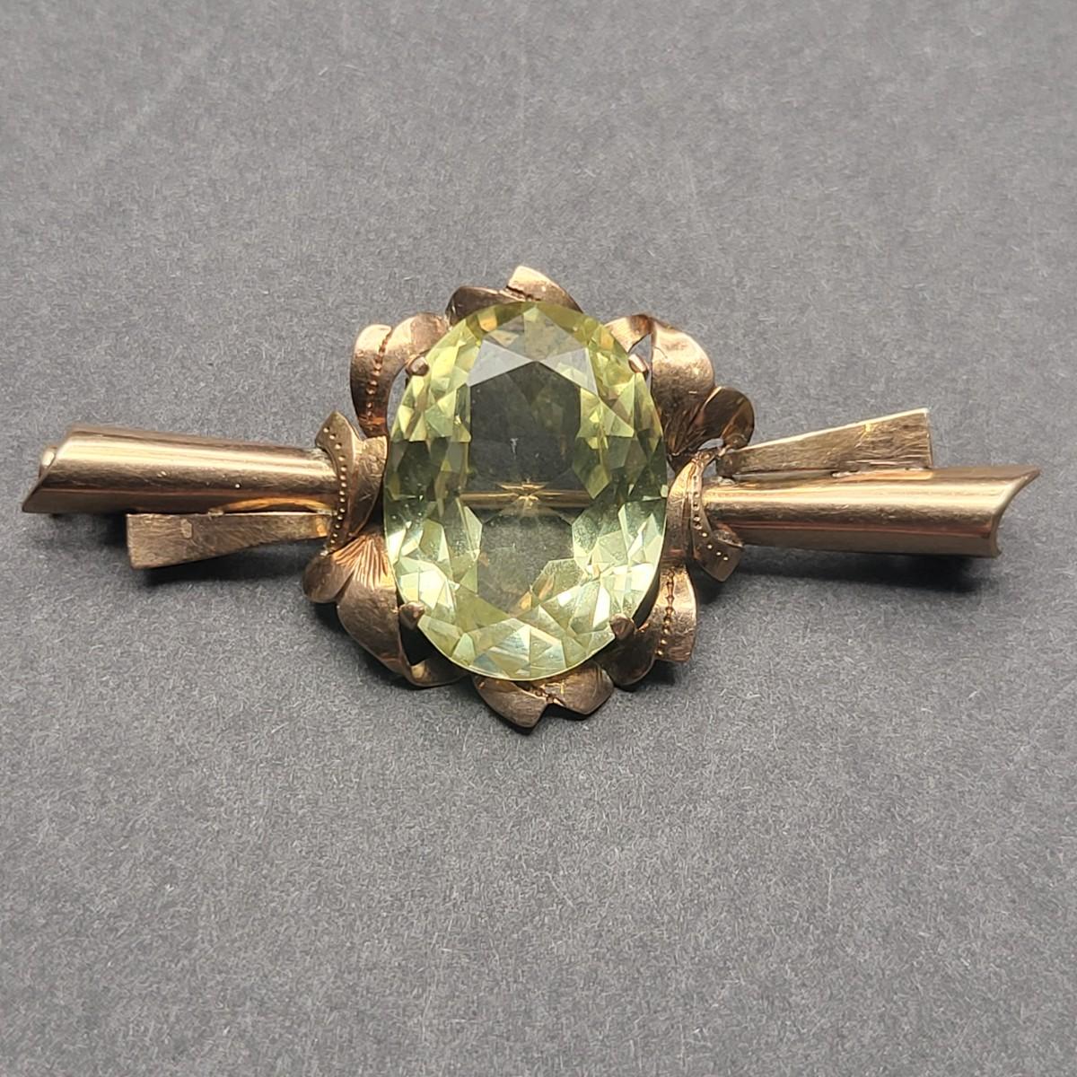 Antique T.Y.L. 14k Gold (585) Yellow Sapphire Brooch 8.8gr