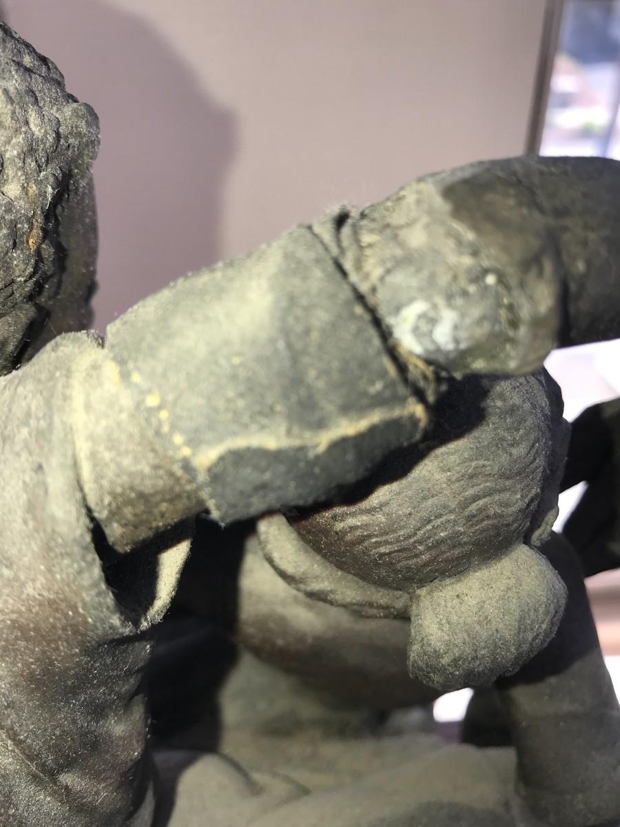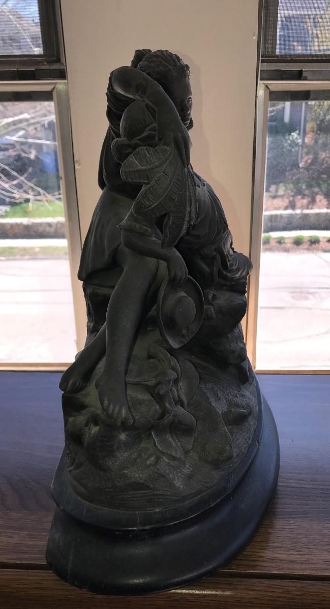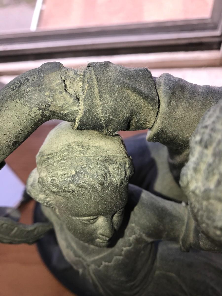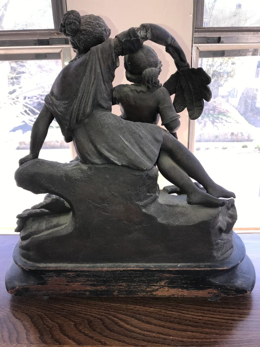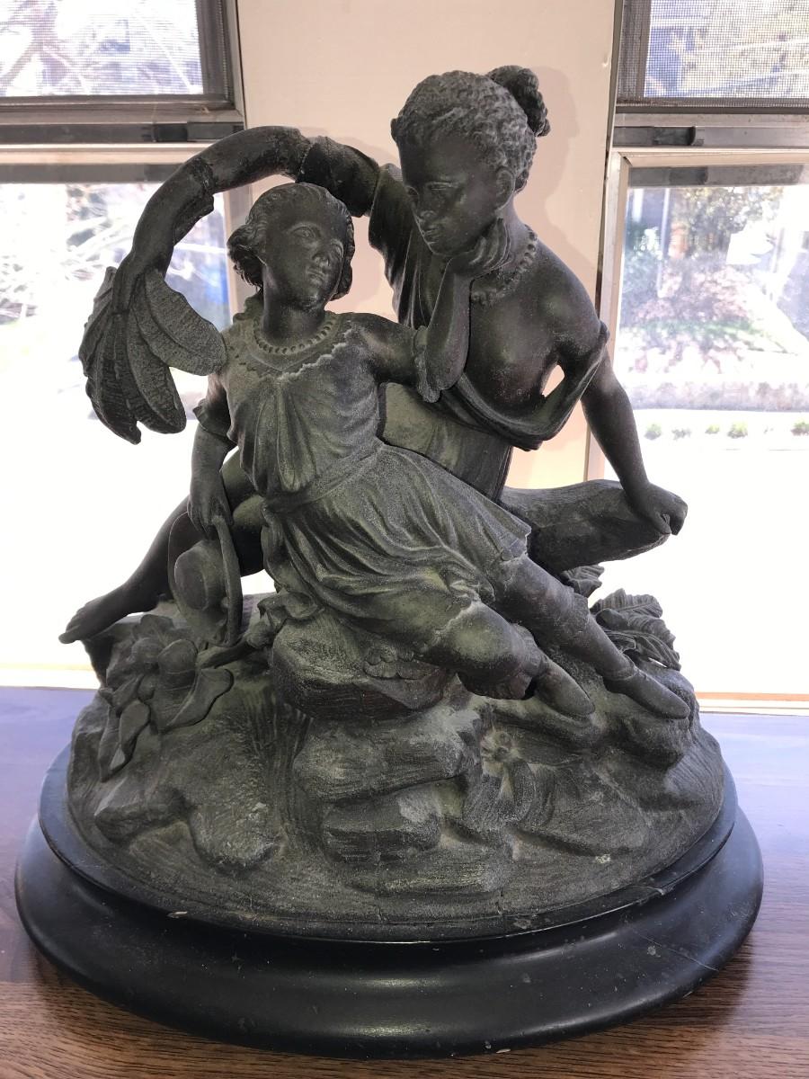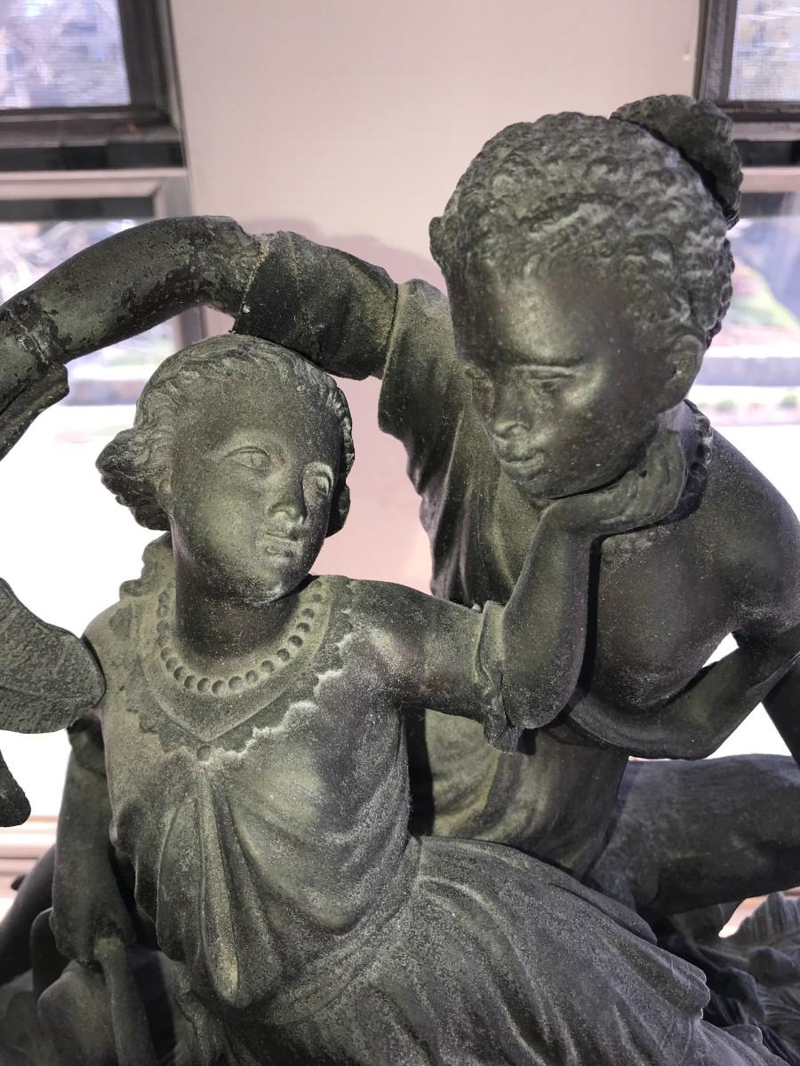 I could not find a signature. They gaze adoringly at each other There appears to be a crack in the mold rock base and , his right arm ( above her head ) has been repaired -please see photos .