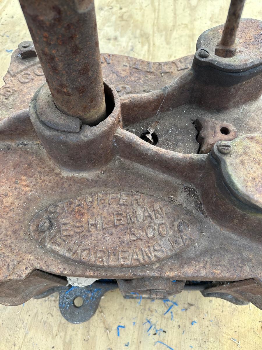 Antique Staupfer Eshleman & Co. New Orleans Horse Powered Sugar Cane Mill – “Golden Syrup” Cast Iron 3-Roller