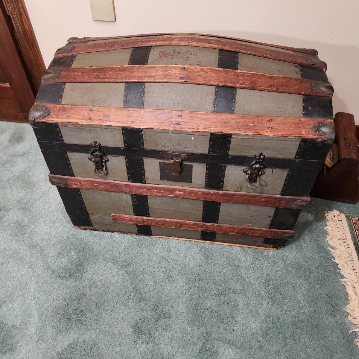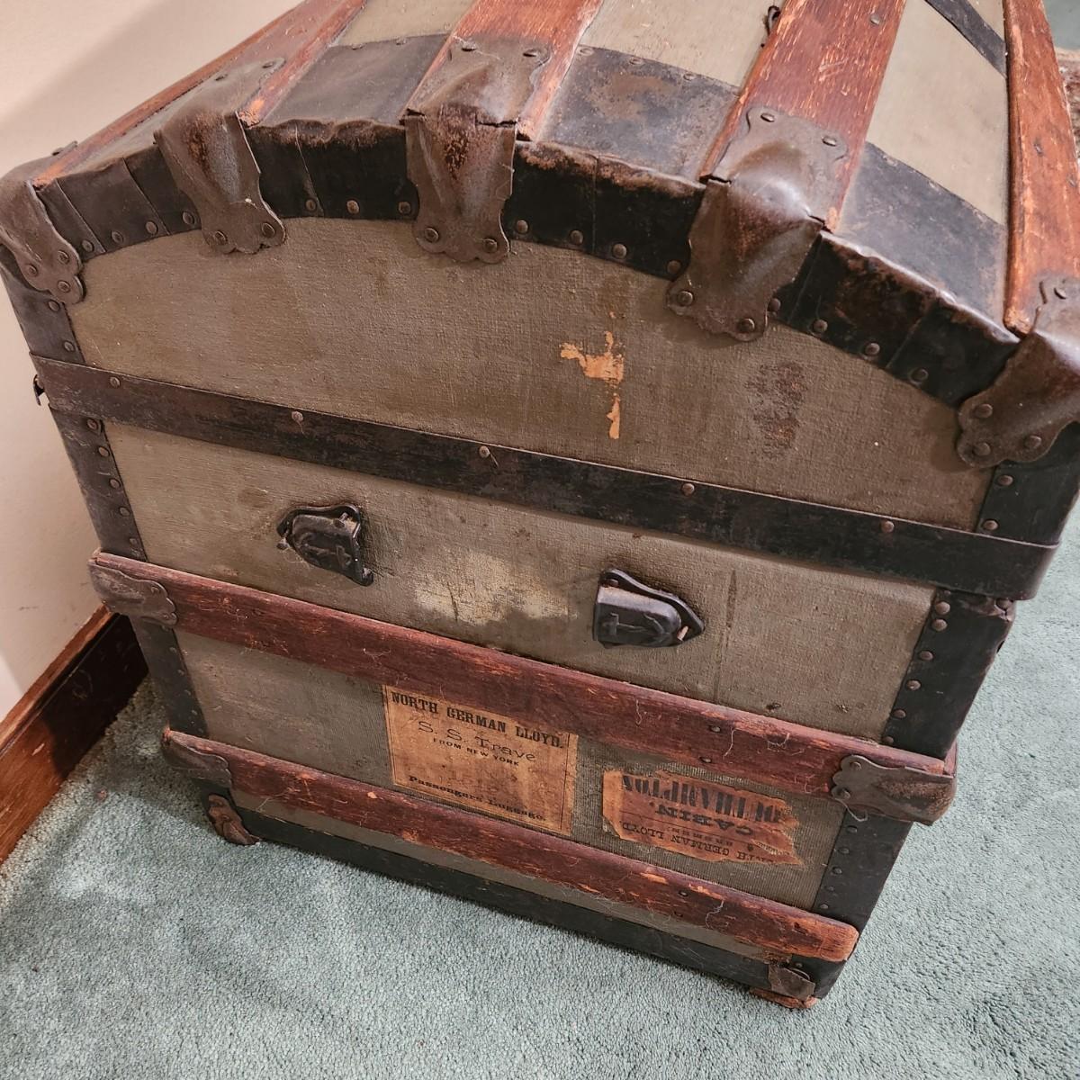 Antique Steamer Dome Top Trunk S.S. Trave Ship
