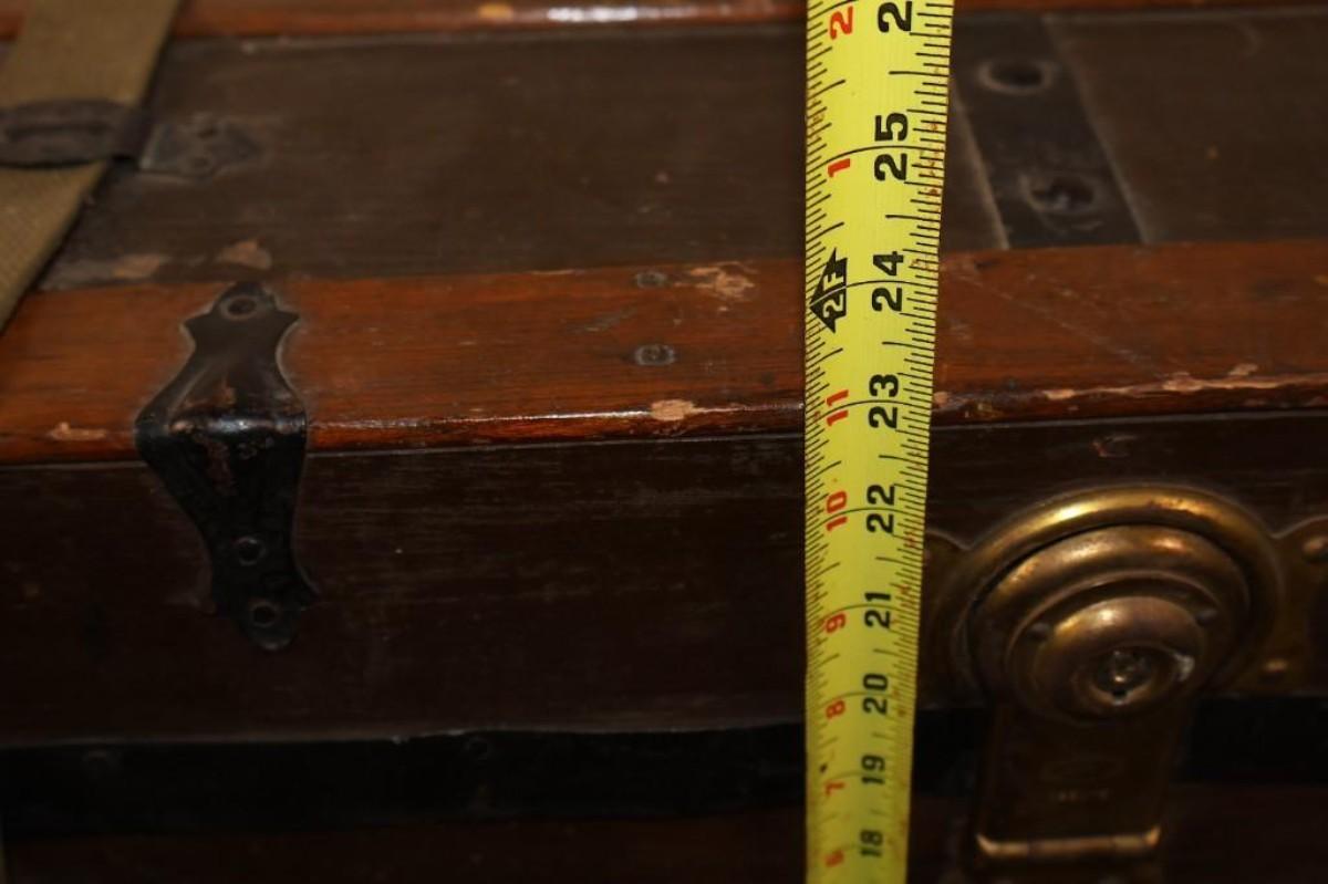 Antique Steamer Trunk Size: 36"W X 21"D X 23"H Condition: Used. Please note that it’s locked and we do not have the key.