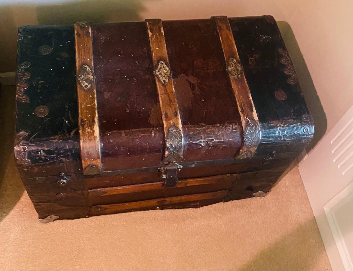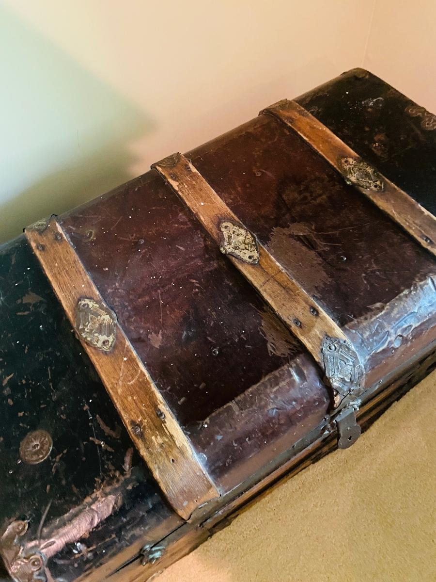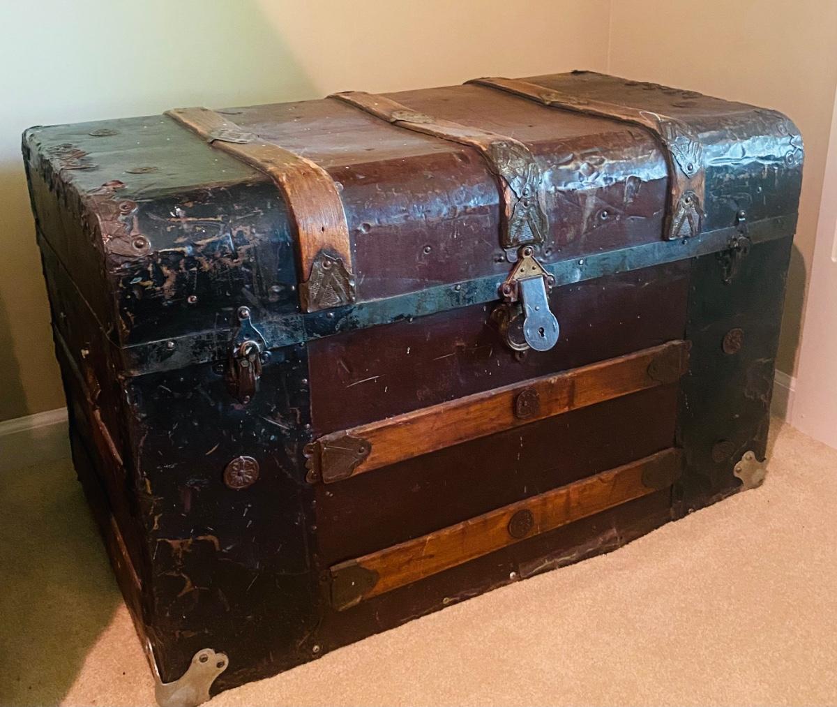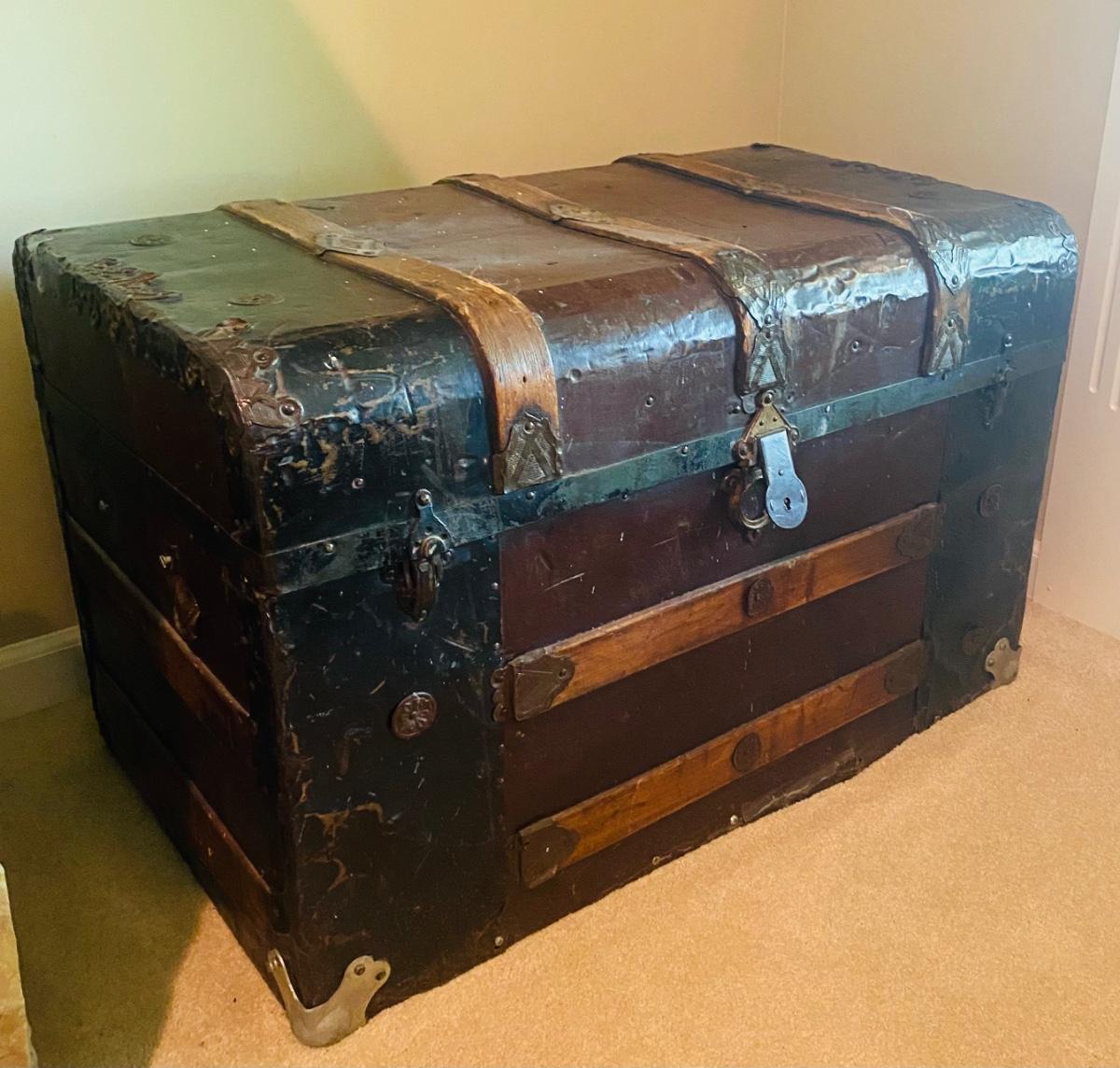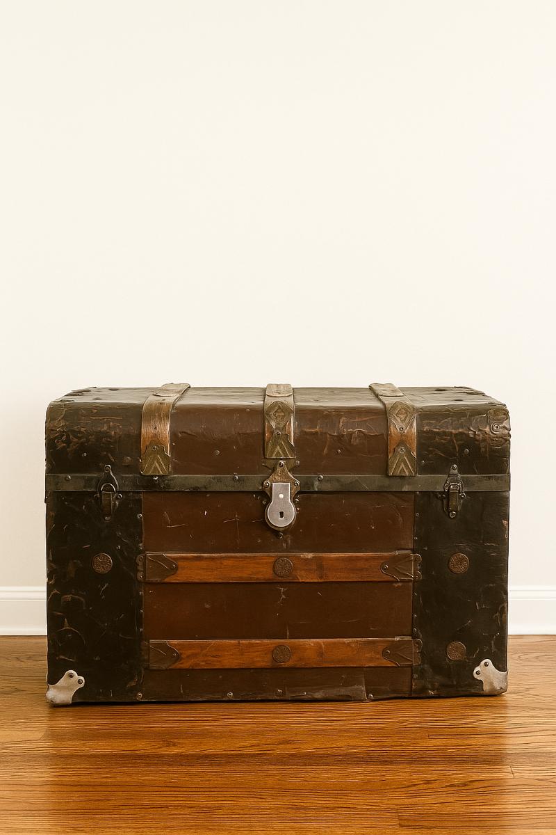 Antique Steamer Trunk – Wood & Metal Dome Top Chest with Original Hardware