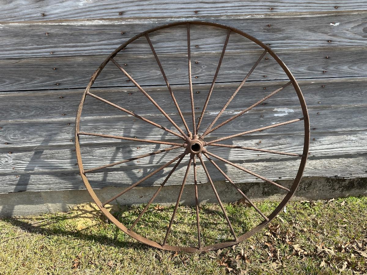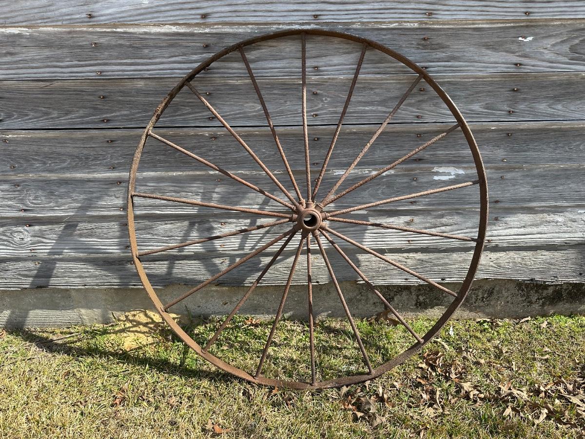 Antique Steel Farm Wagon Wheel – Primitive Rustic Decor