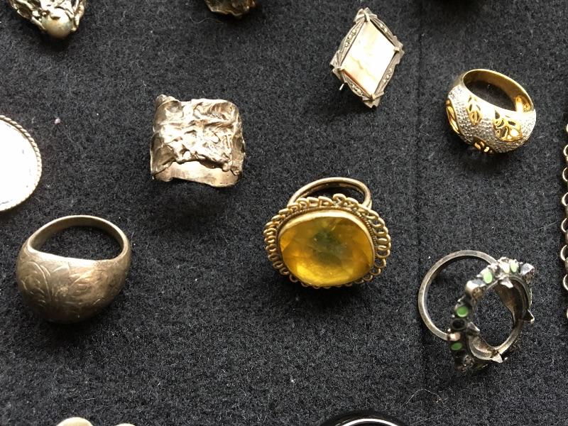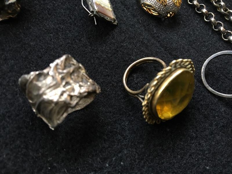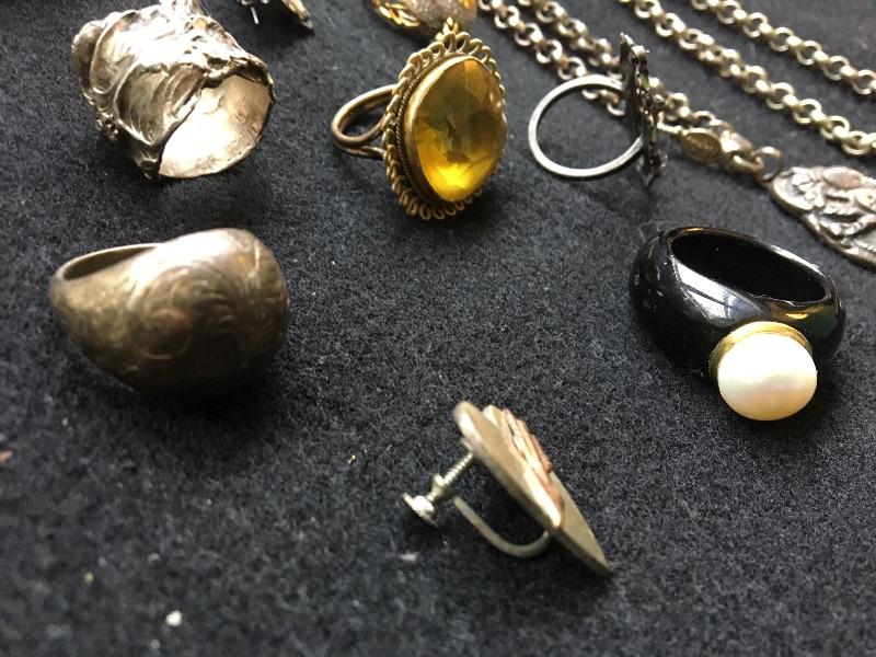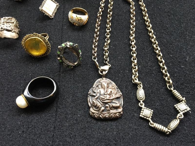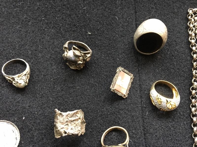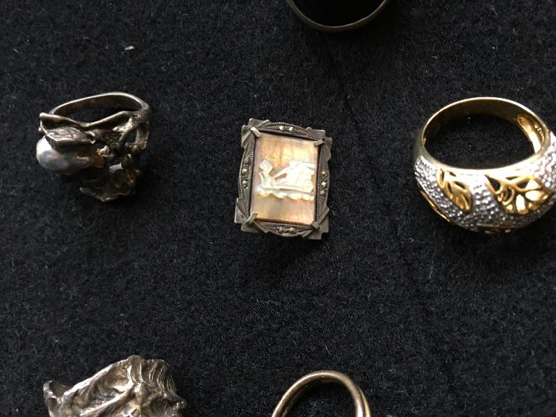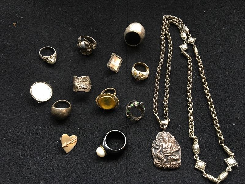 Many marked Sterling, weighing 64 grams minimum. Nice collection. We offer packaging and shipping services.