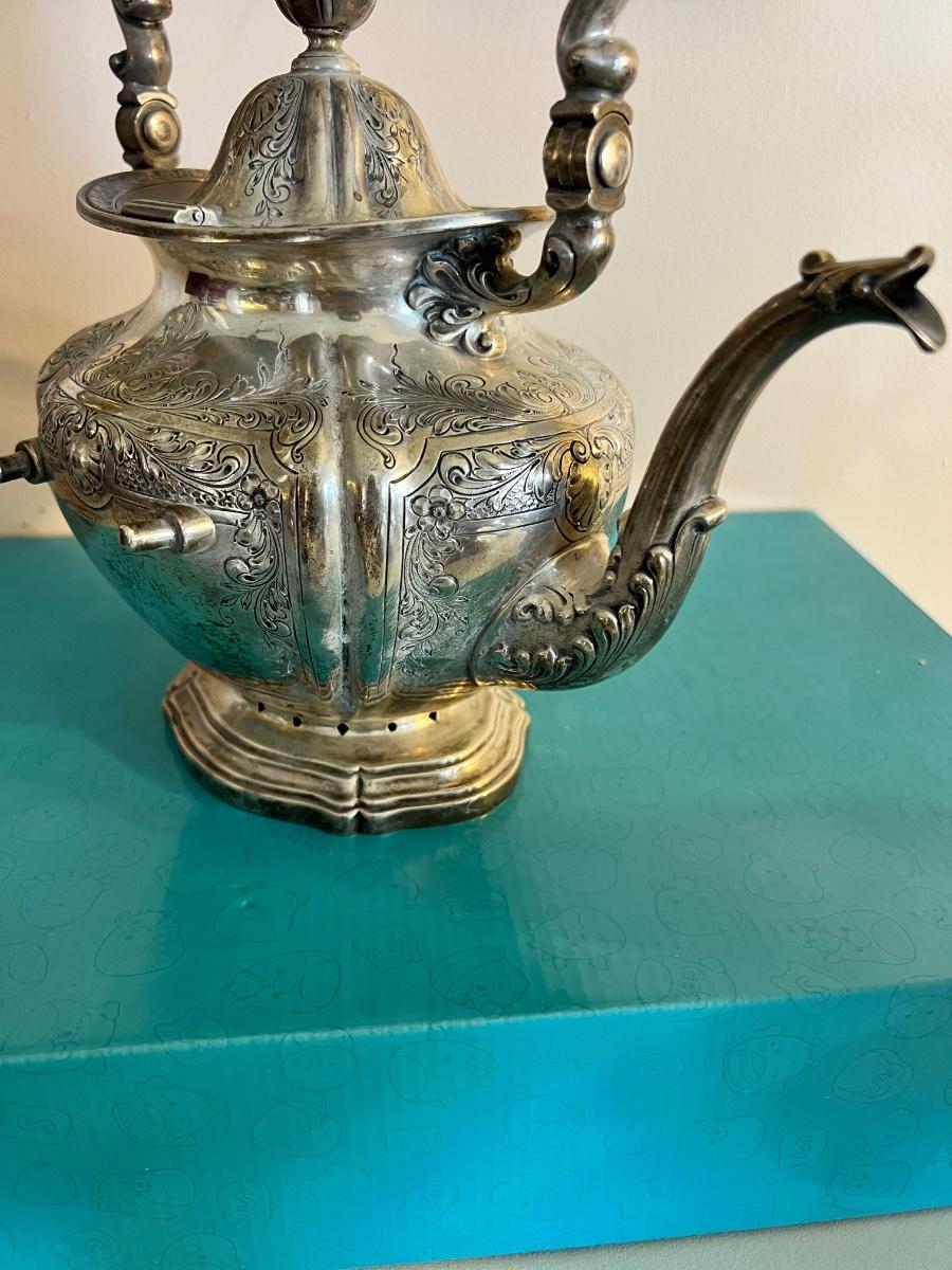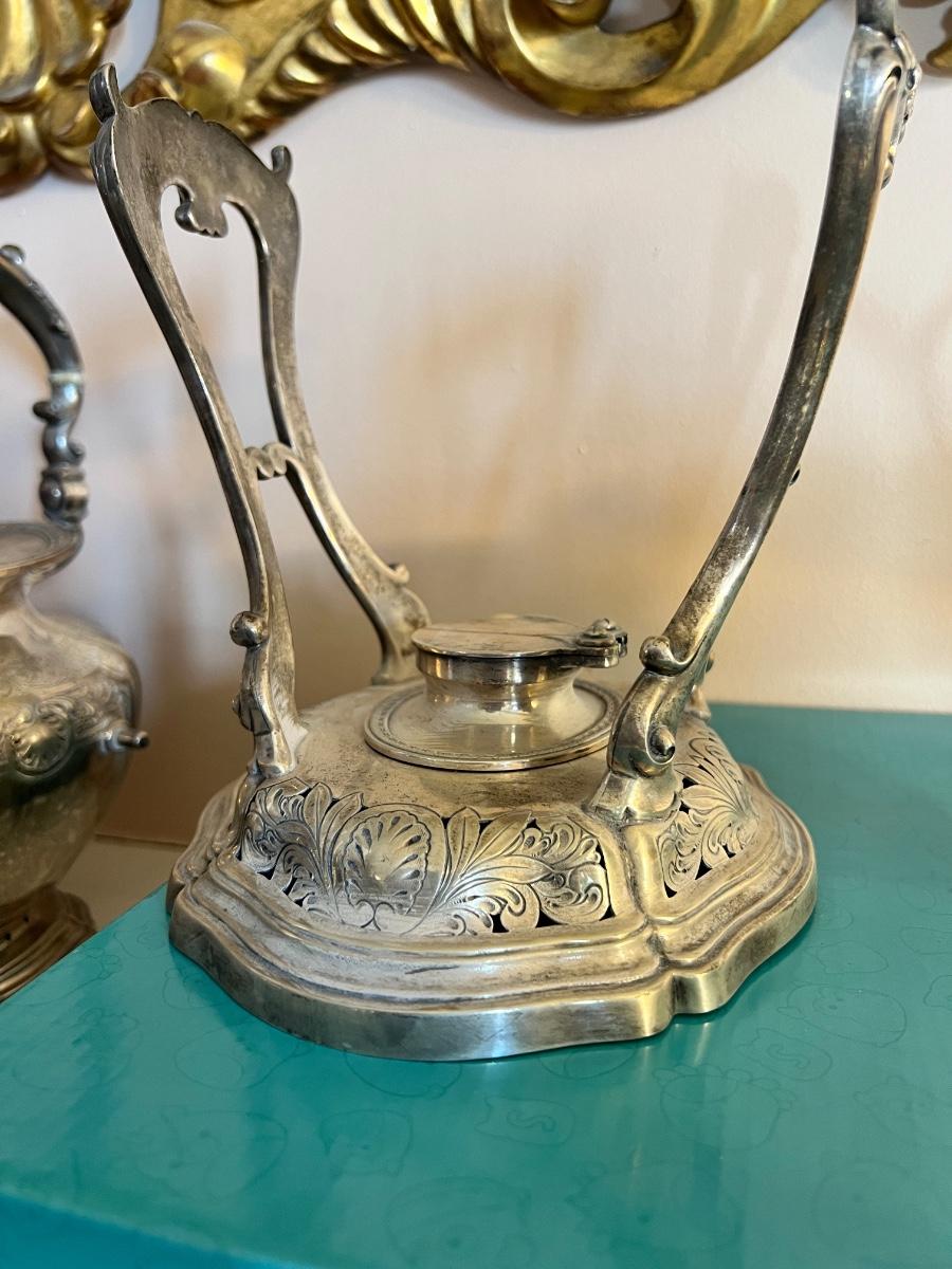 7” kettle on stand (1324 g) 3.5 pints, w/ spirit lamp (914 g)