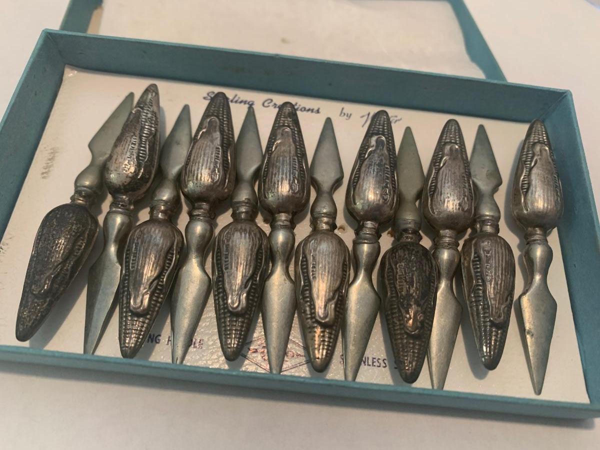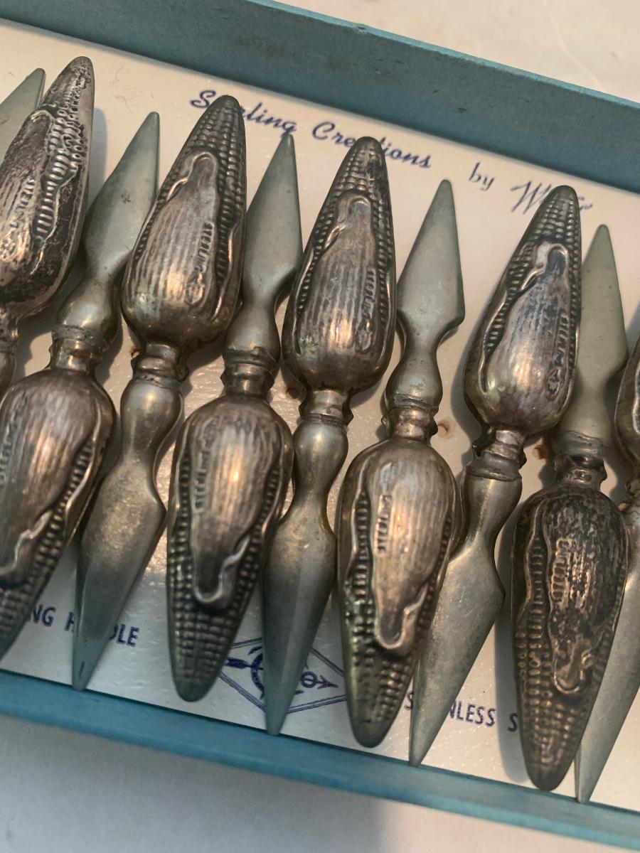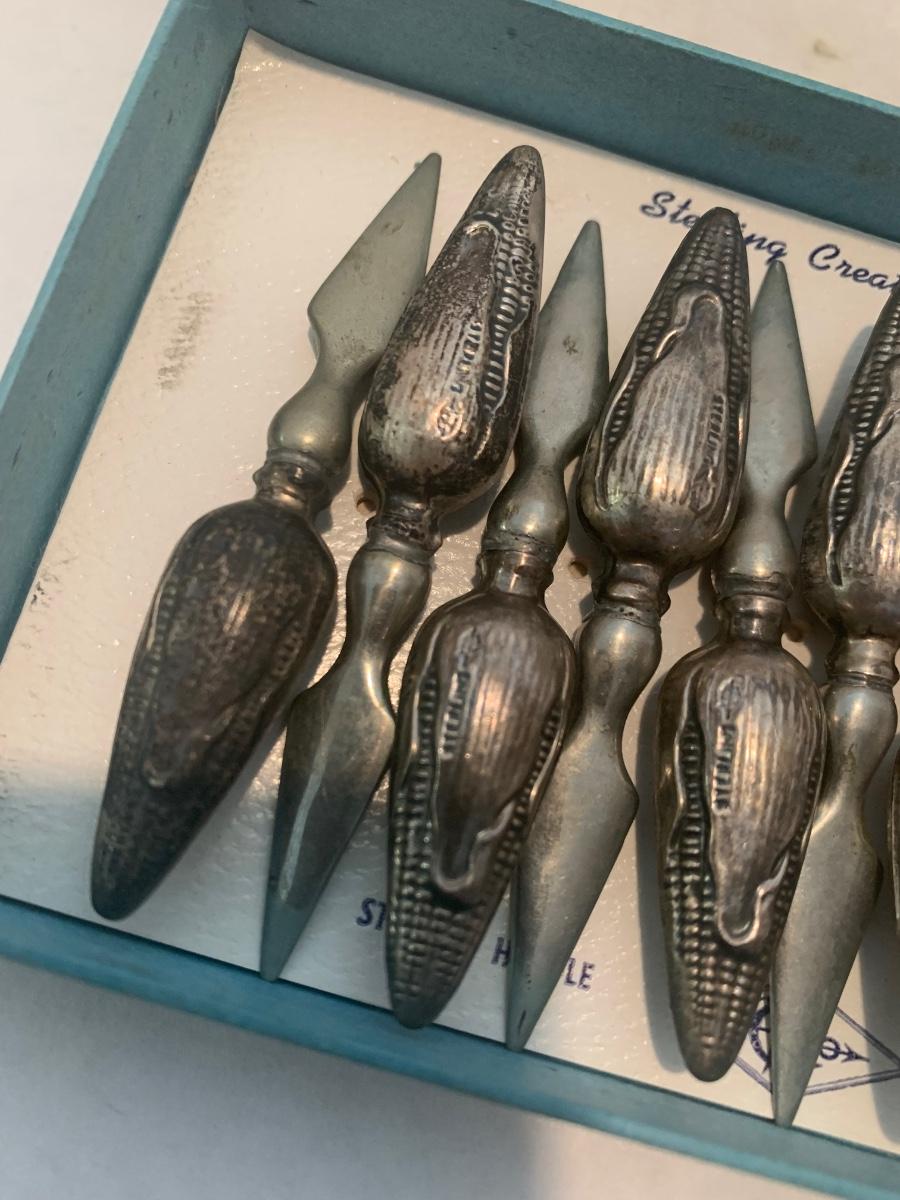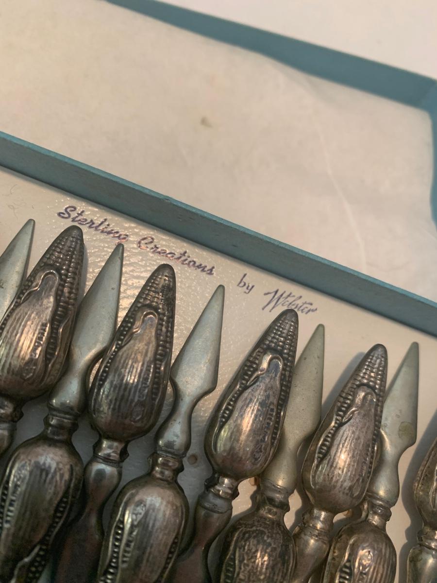 Antique Sterling Corn Cob Holders In Original Box