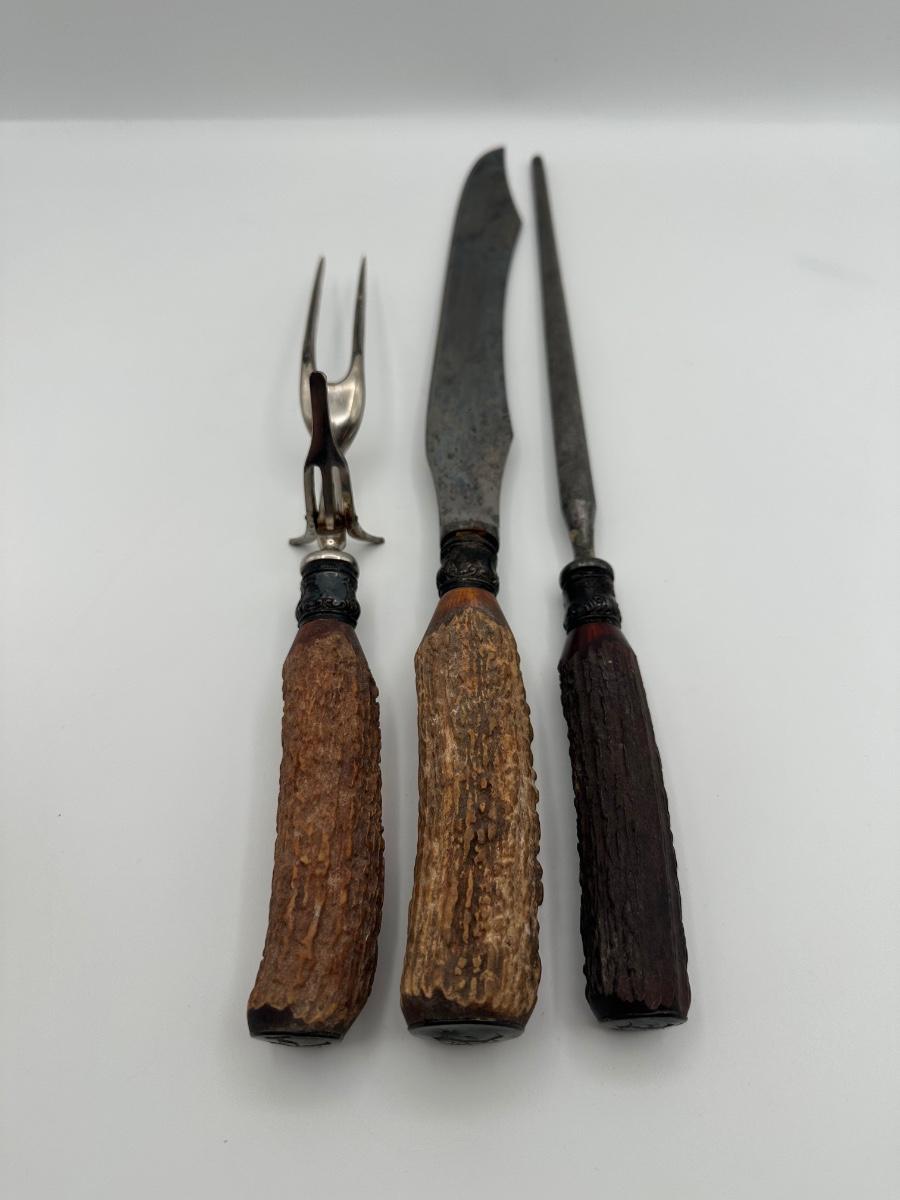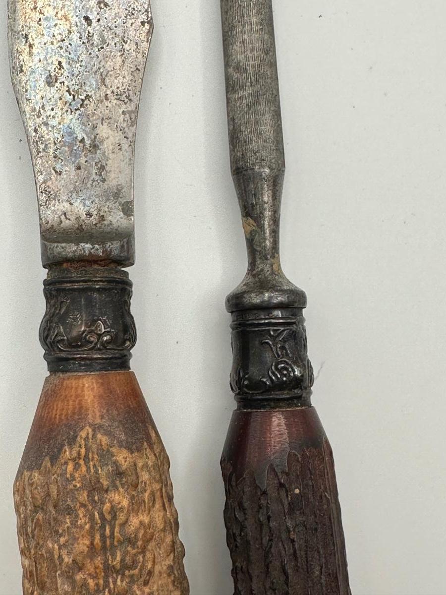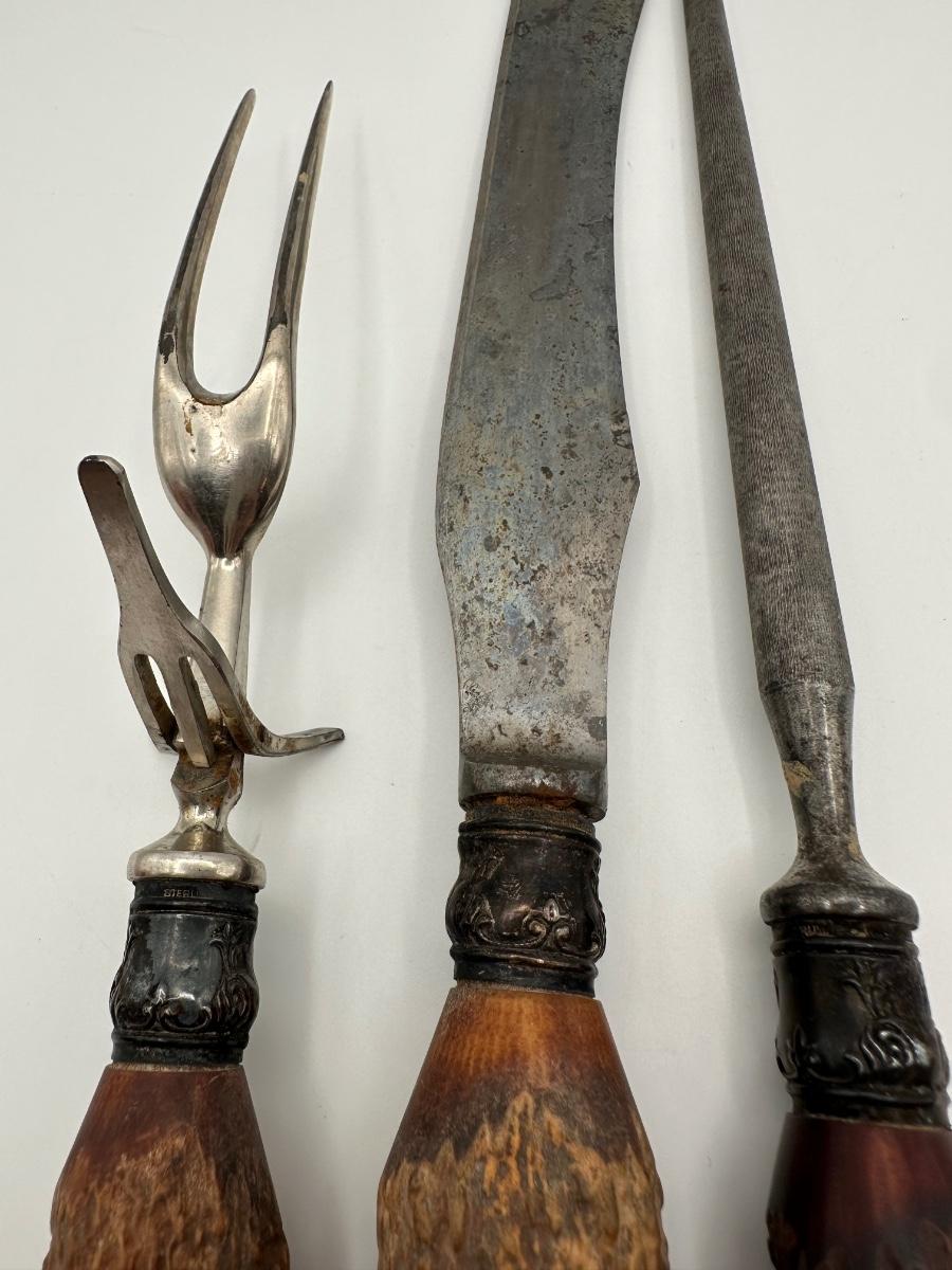 Antique Sterling Mounted Carving Set with Stag Horn Handles