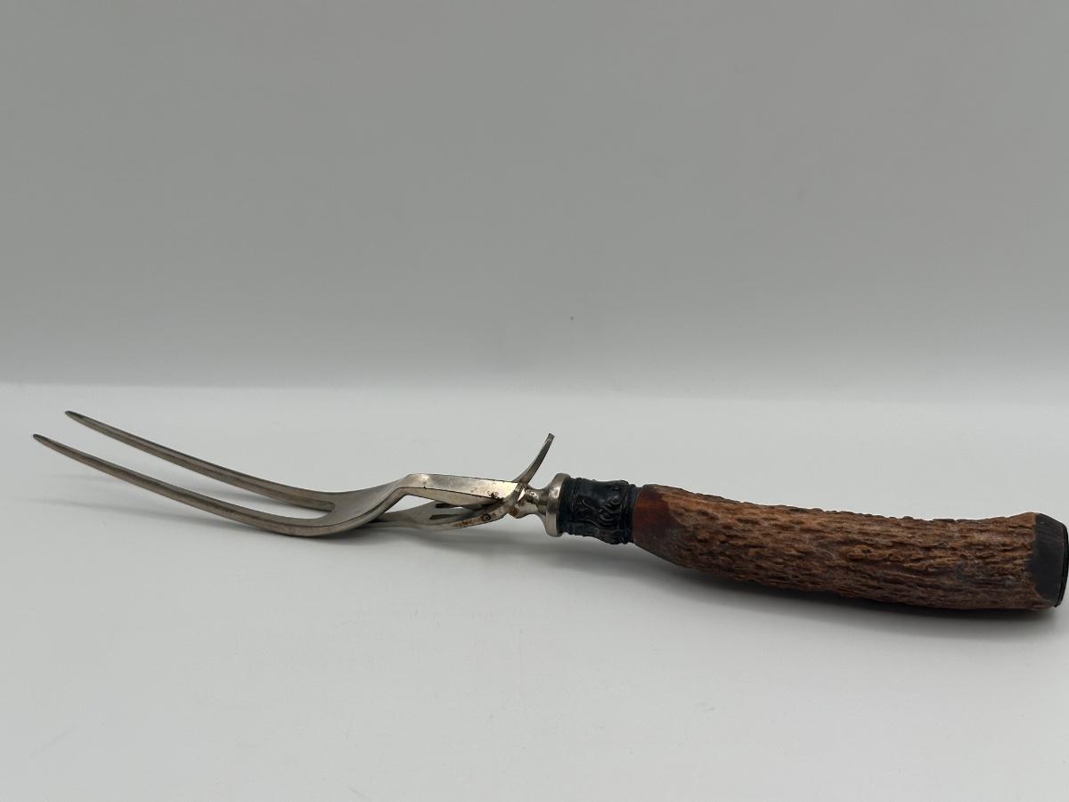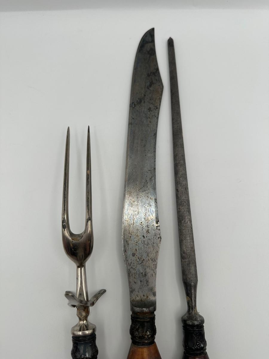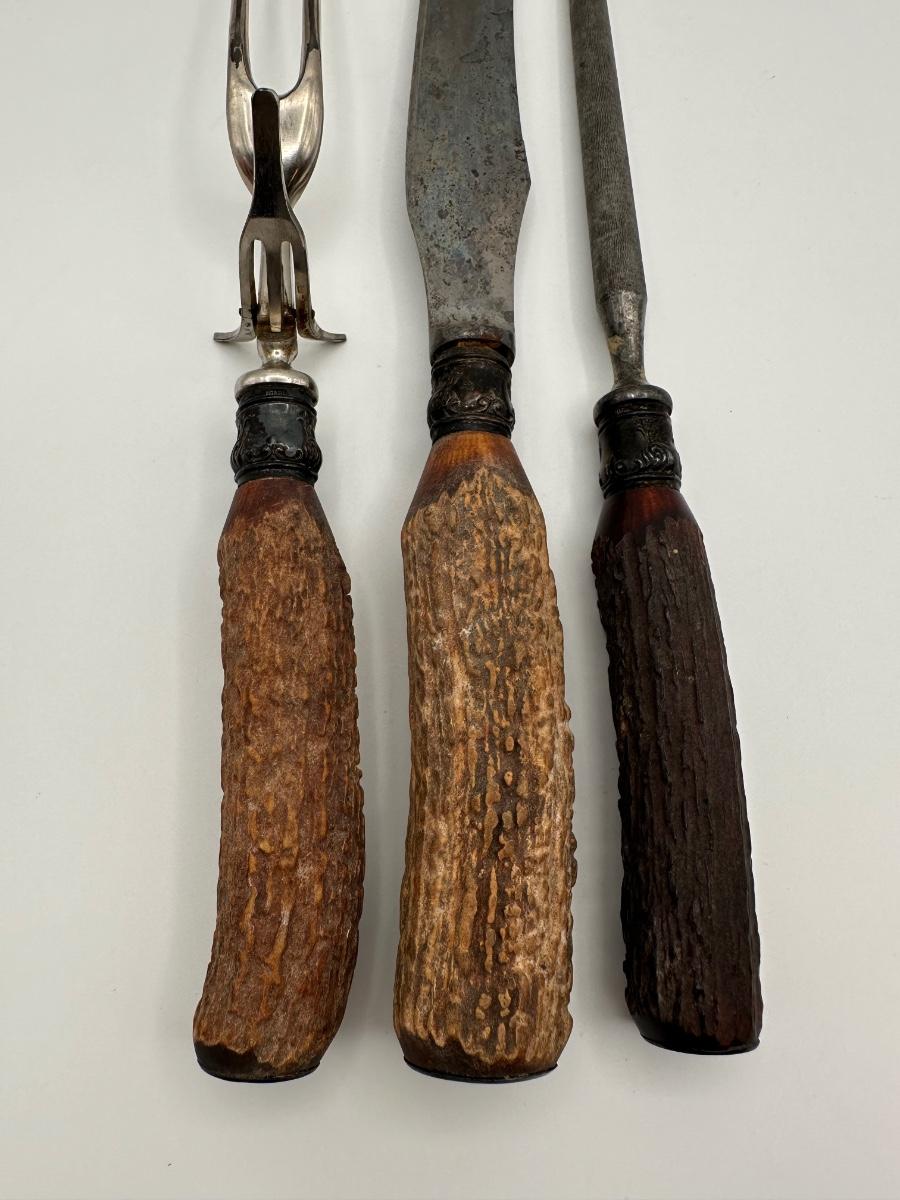 Antique Sterling Mounted Carving Set with Stag Horn Handles