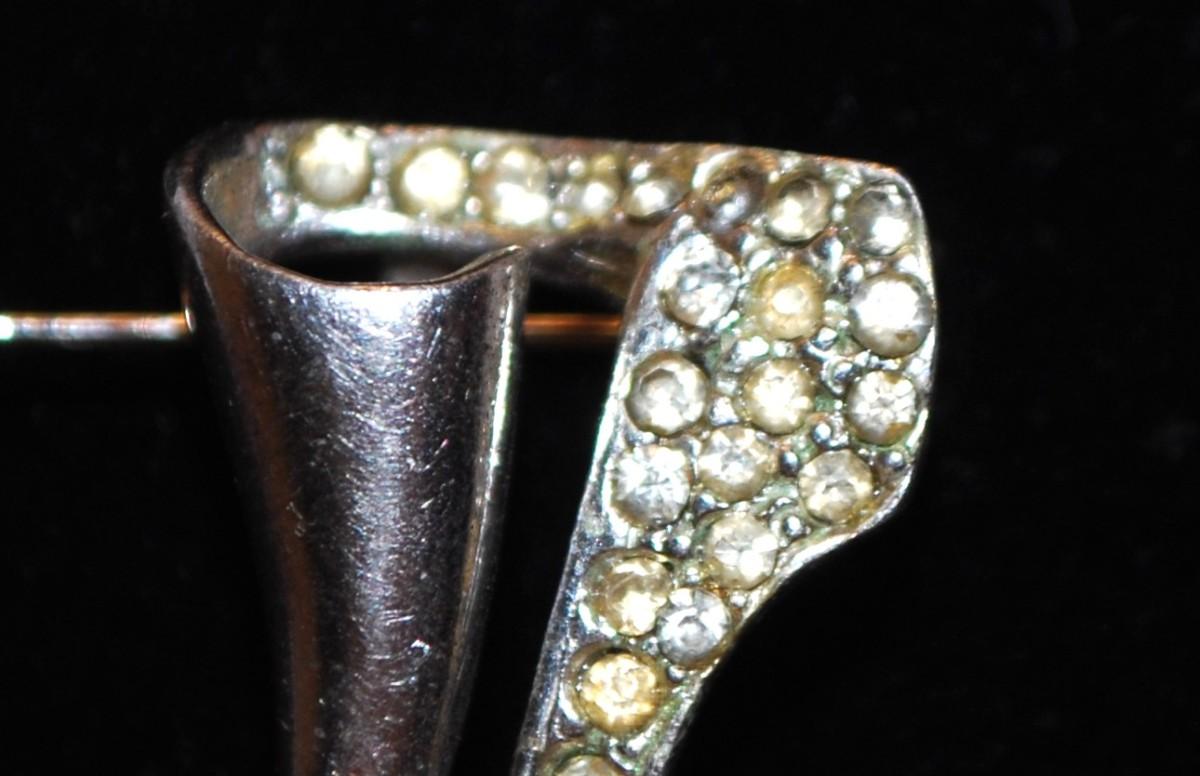 Antique STERLING SILVER .925 Harp-Style Brooch with Clear Stones 1â…›"