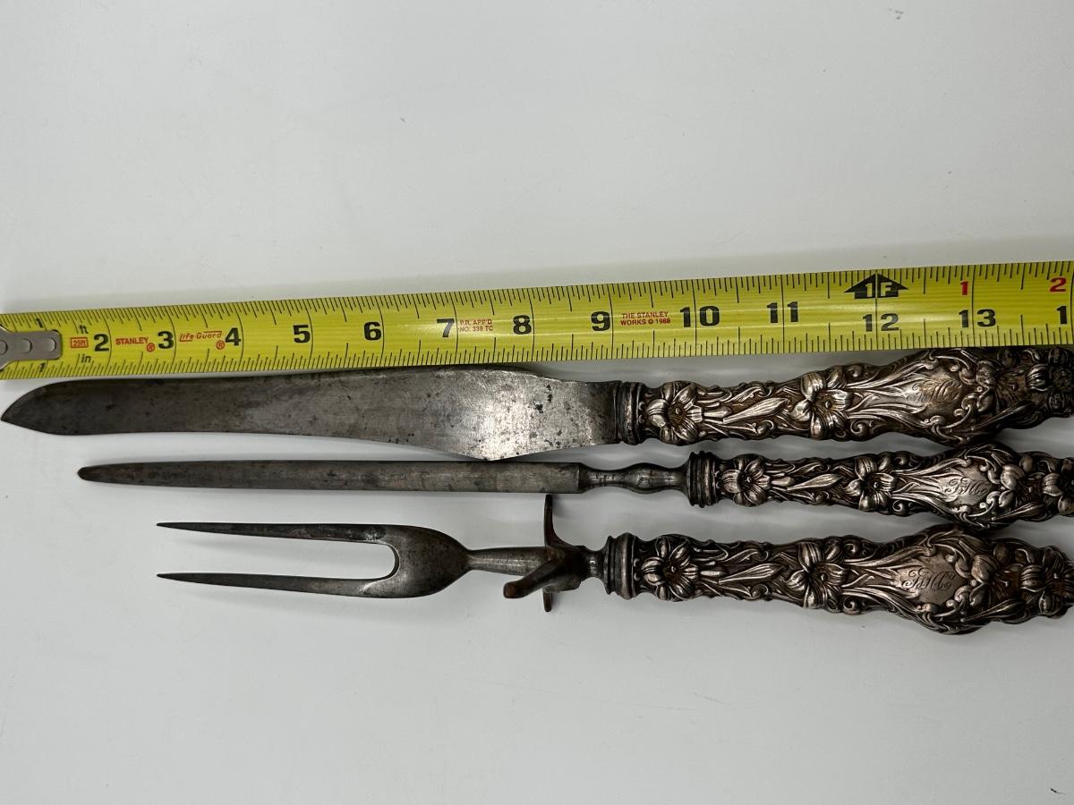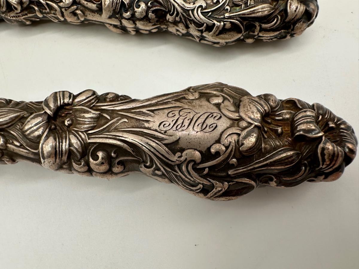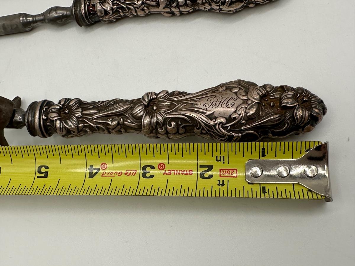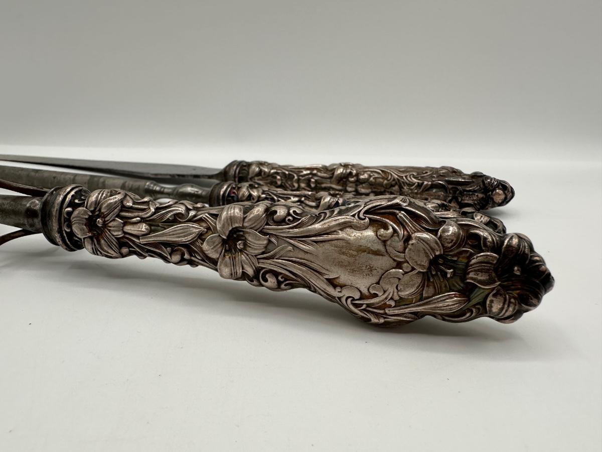 Antique Sterling Silver Art Nouveau Floral Carving Set