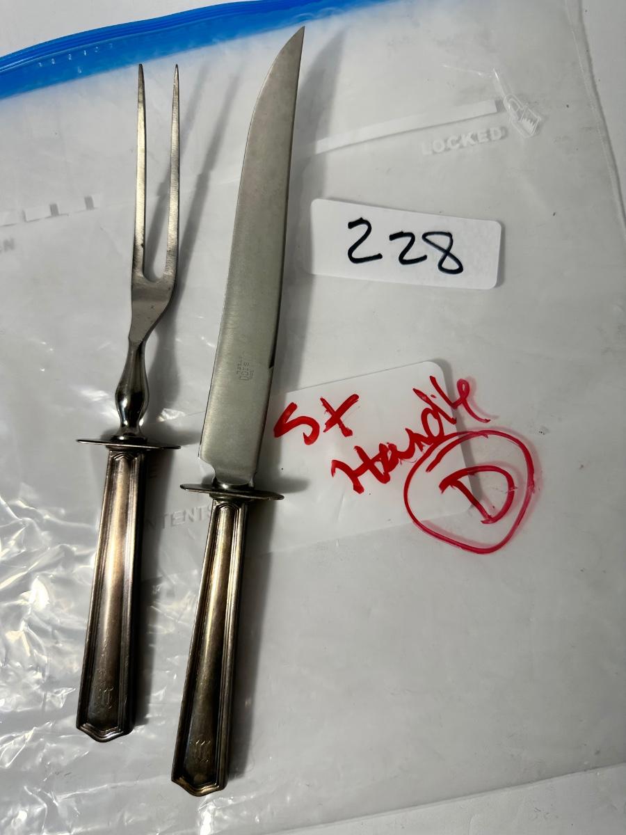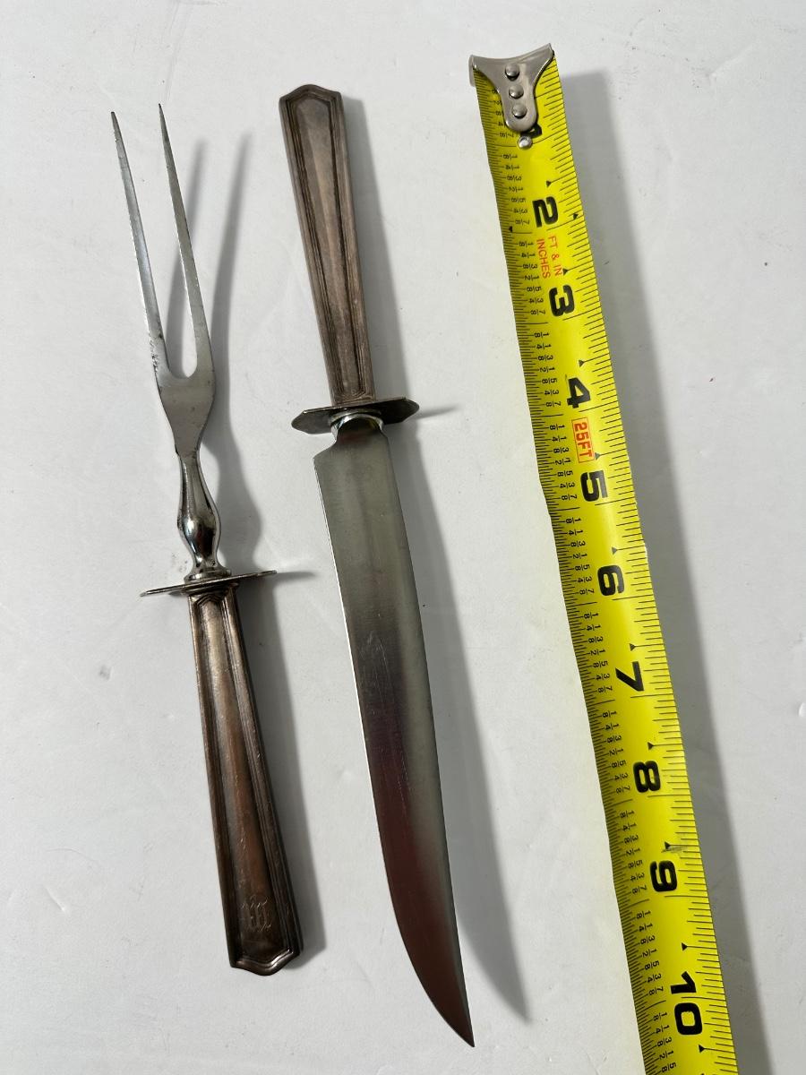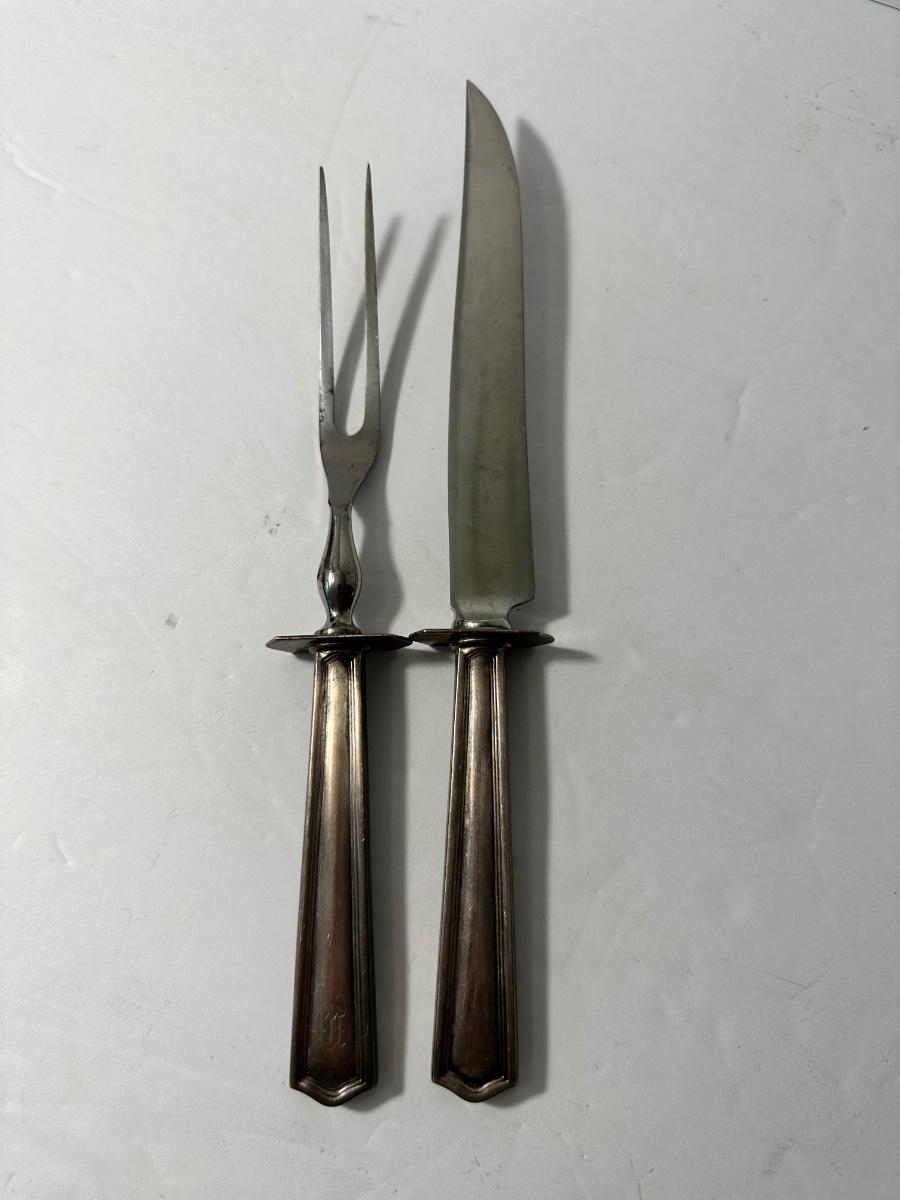 Antique Sterling Silver Monogram Carving Set, Sterling Handle with Insico Stainless Steel Blade as pictured