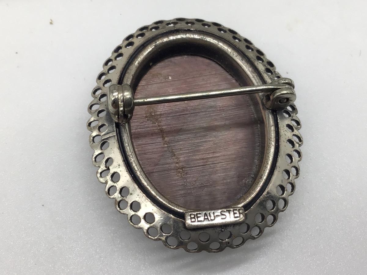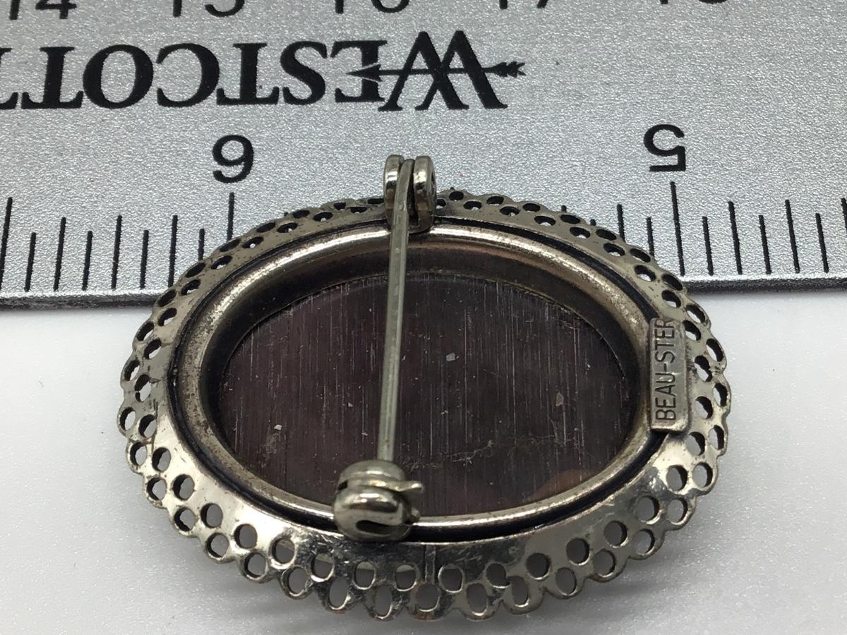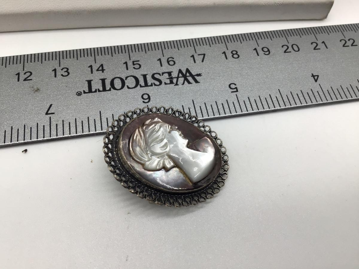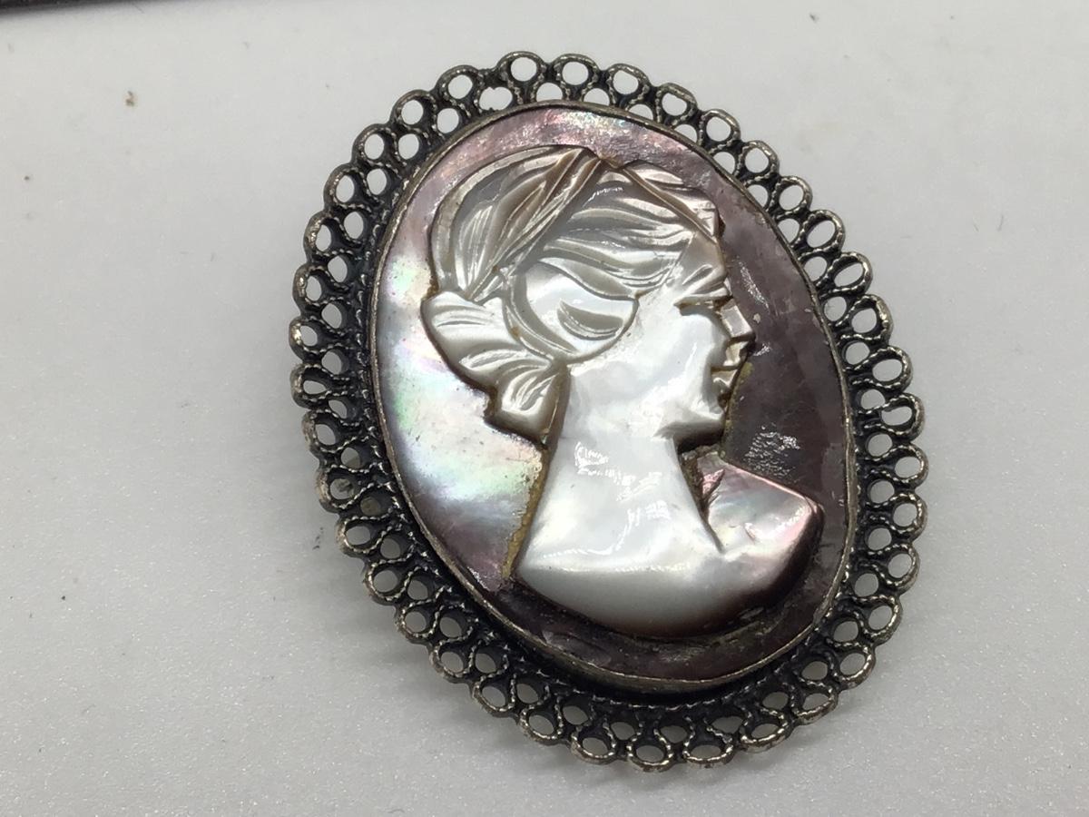 ANTIQUE STERLING SILVER & MOTHER OF PEARL, CARVED CAMEO BROOCH / PIN BY BEAU