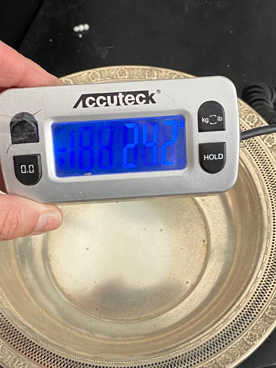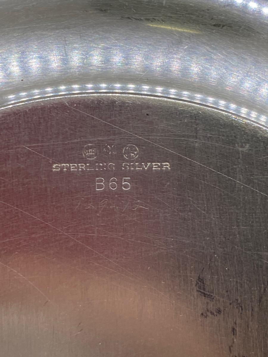 Beautiful sterling silver serving bowl. Lace style openwork edge with floral stamped trim. About 7" diameter. Weighs 242g. In good condition, needs to be polished, no dents. No maker name only number #B65 and hallmarks.