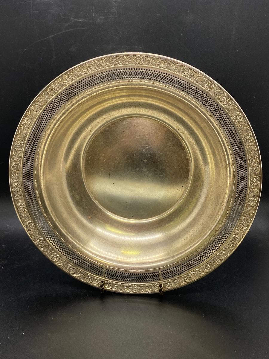 Antique Sterling Silver Serving Bowl Lace Floral Edge 242g tw