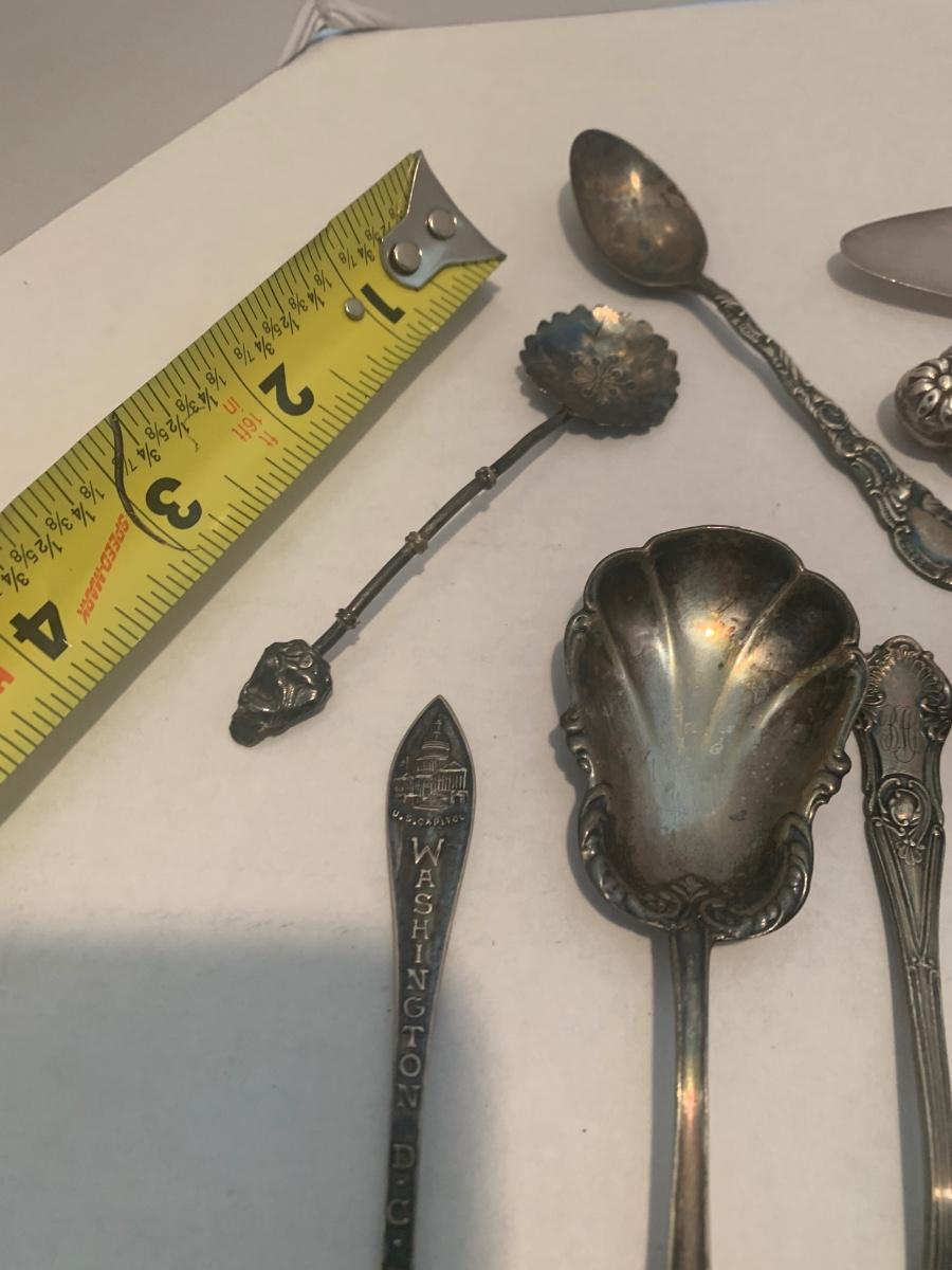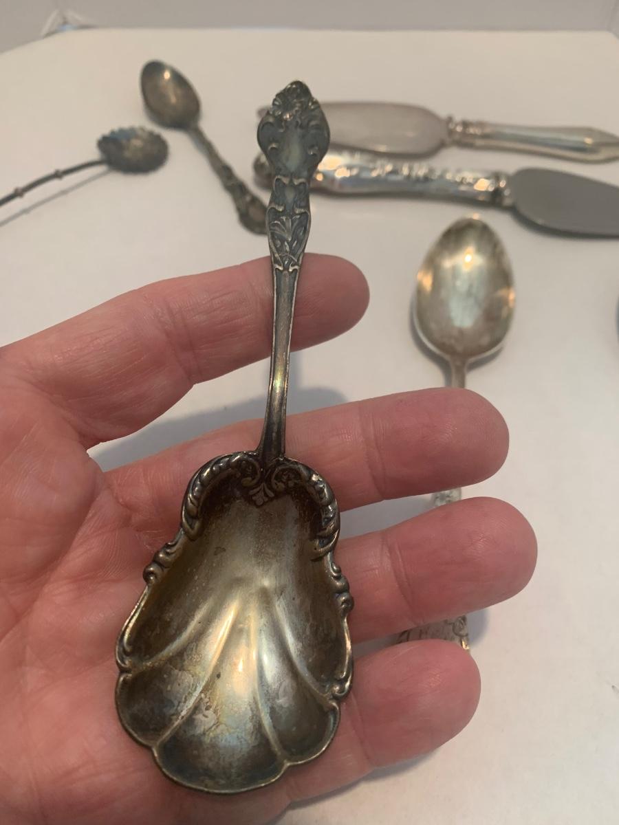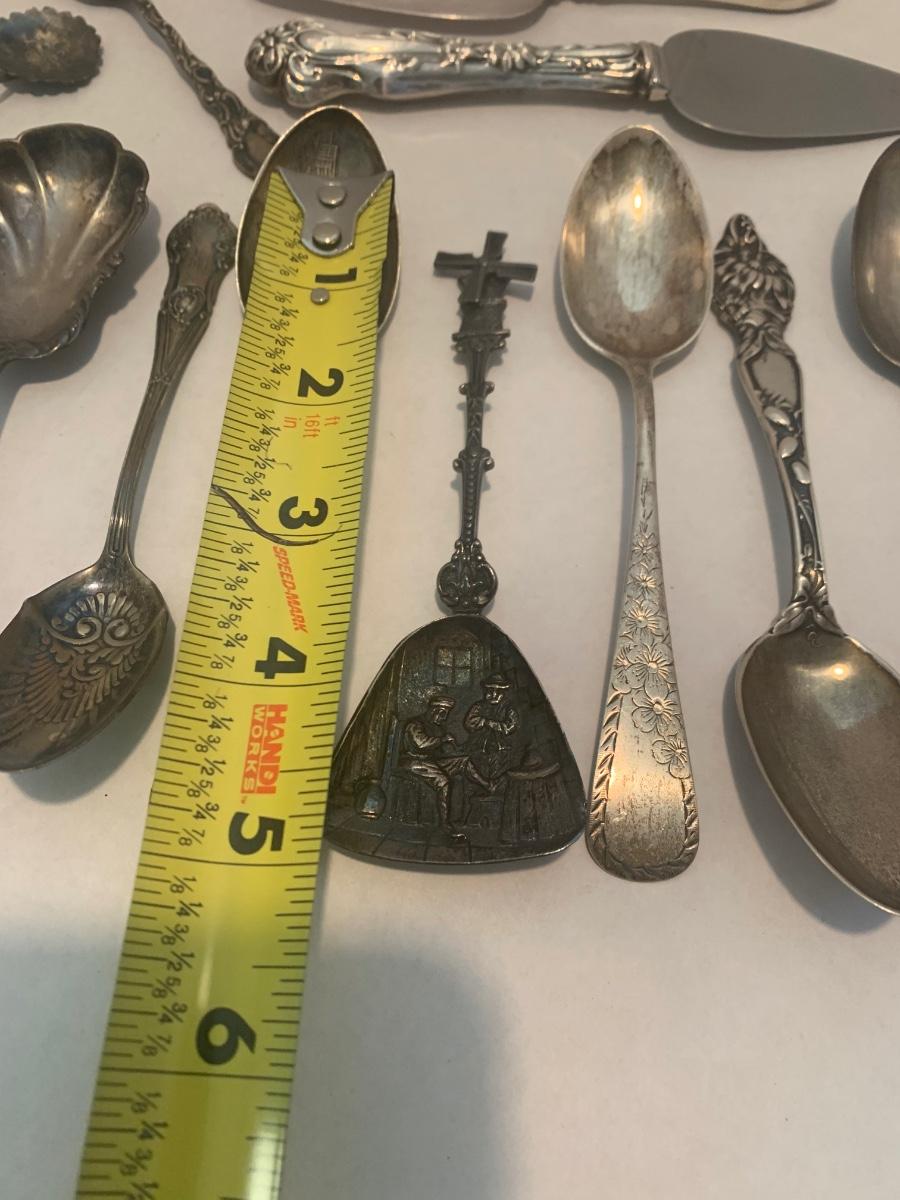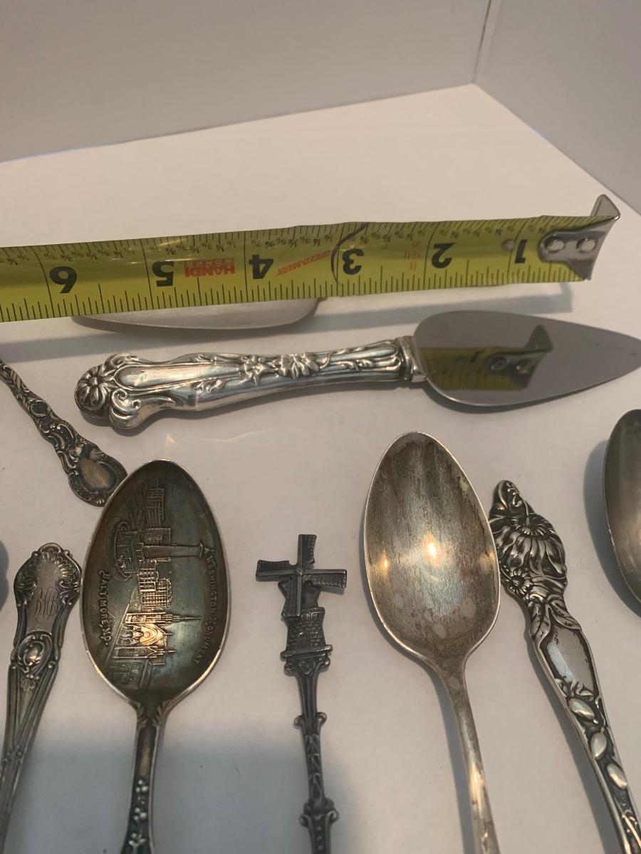 Antique Sterling Silver Spoons Travel Ect + Sterling Handled Cake Servers