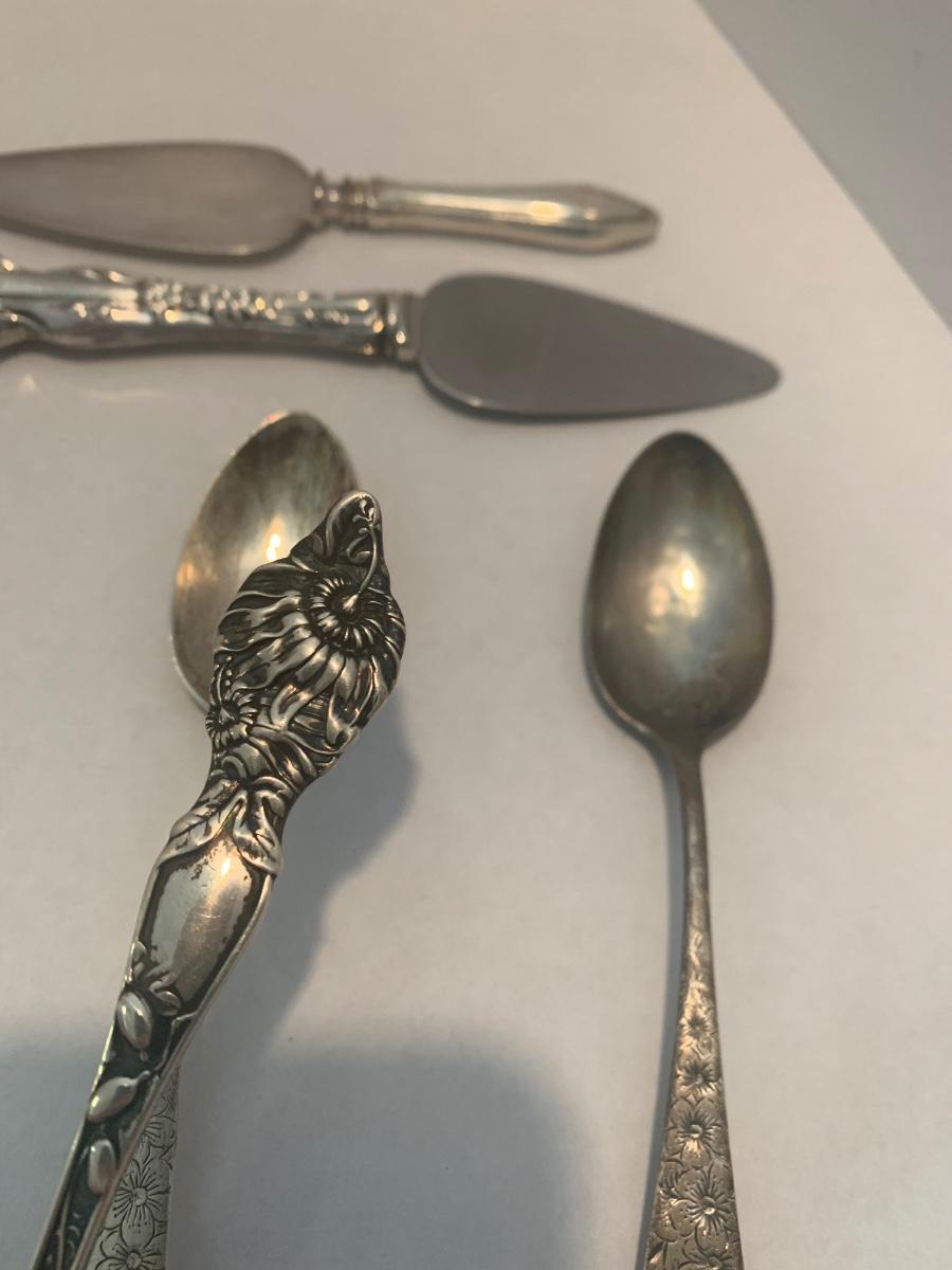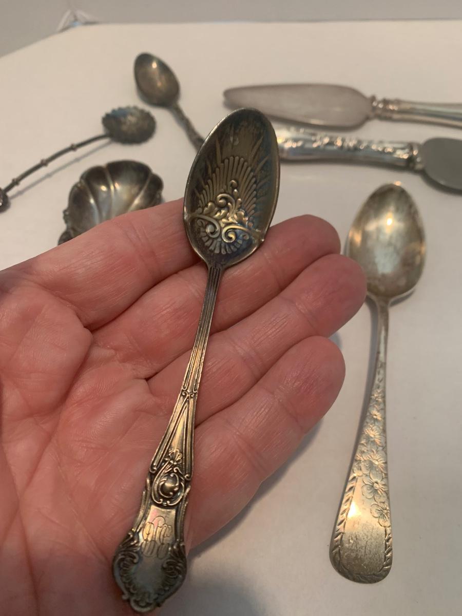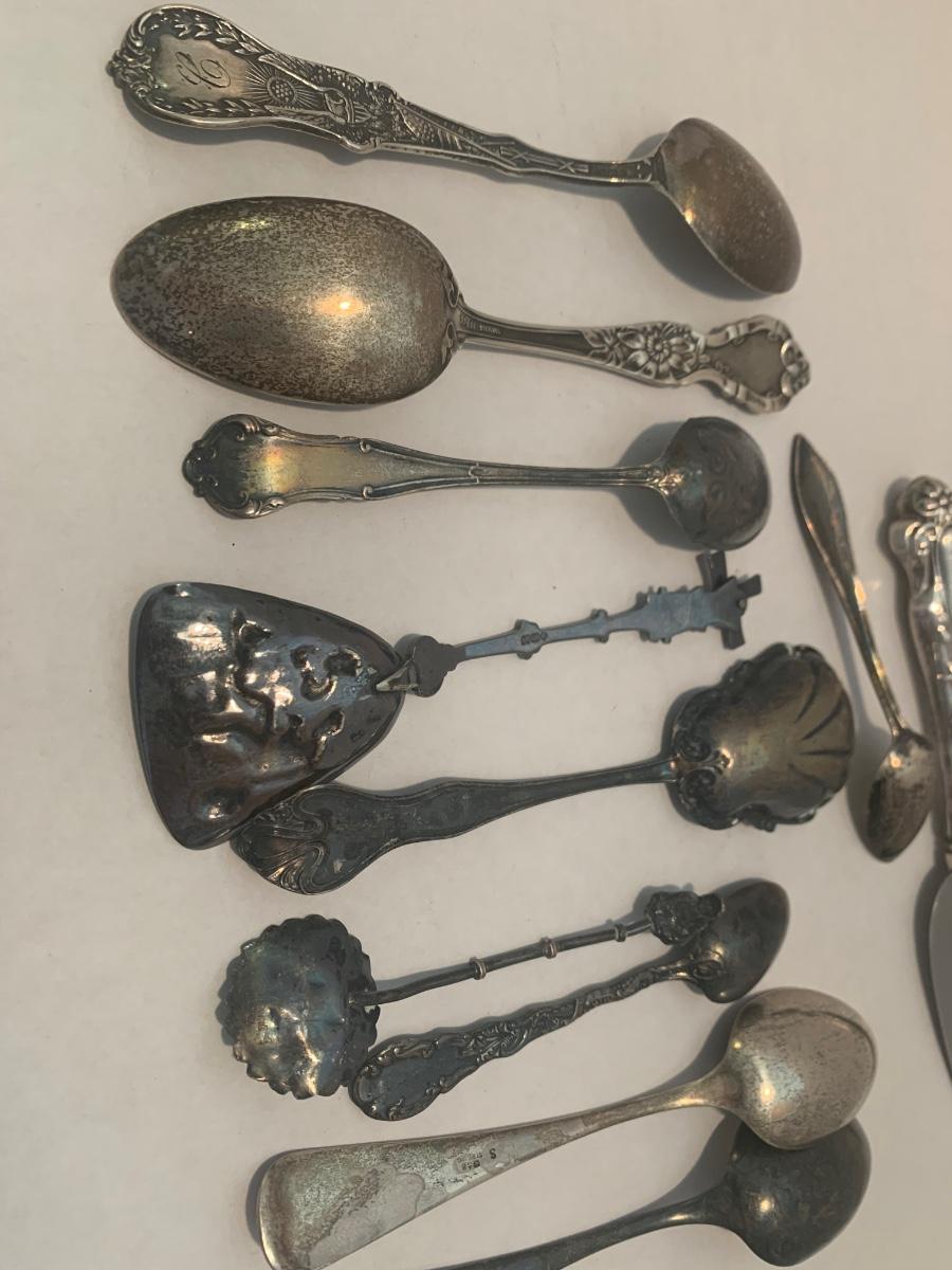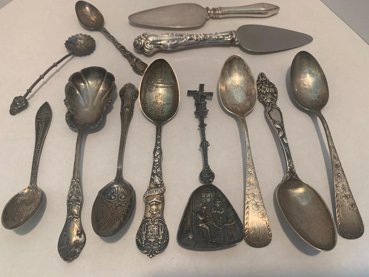 Antique Sterling Silver Spoons Travel Ect + Sterling Handled Cake Servers