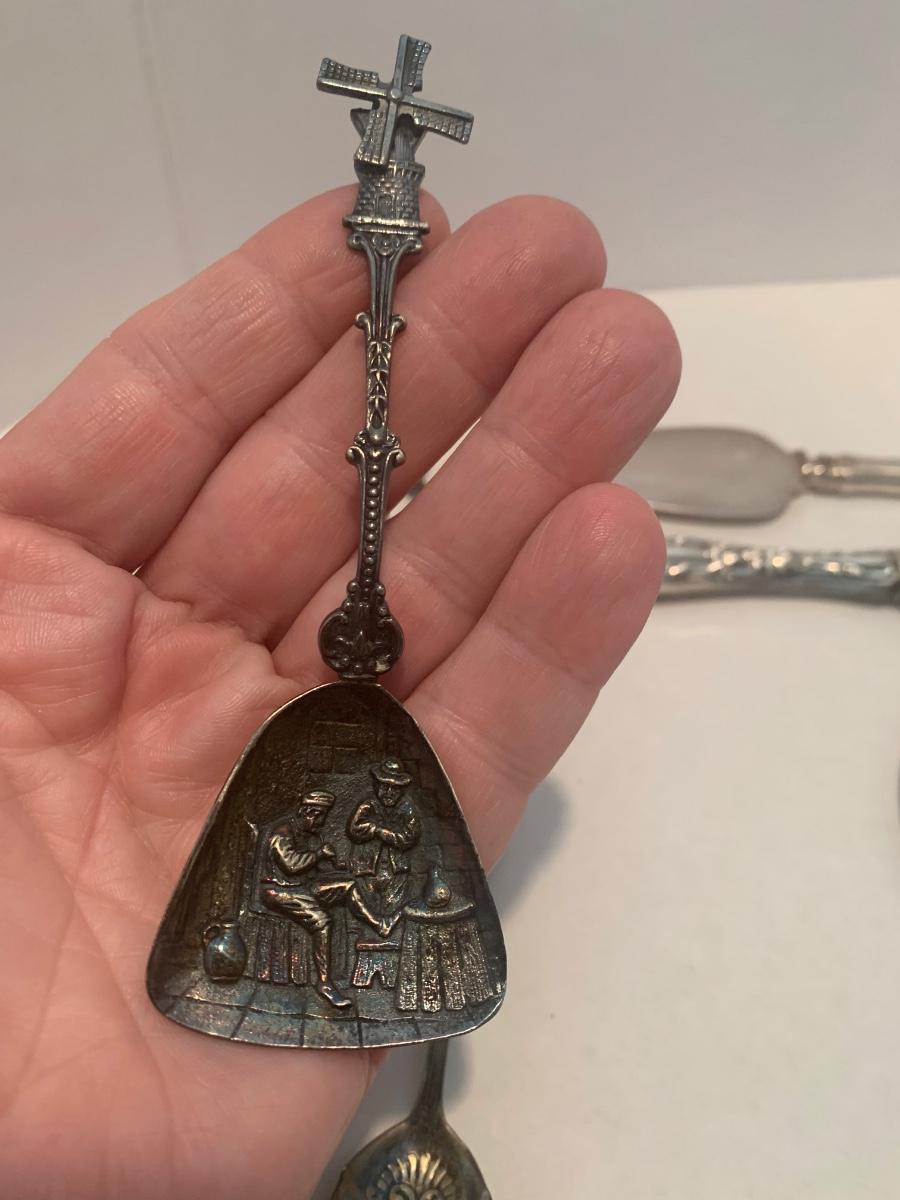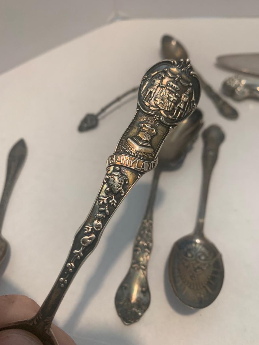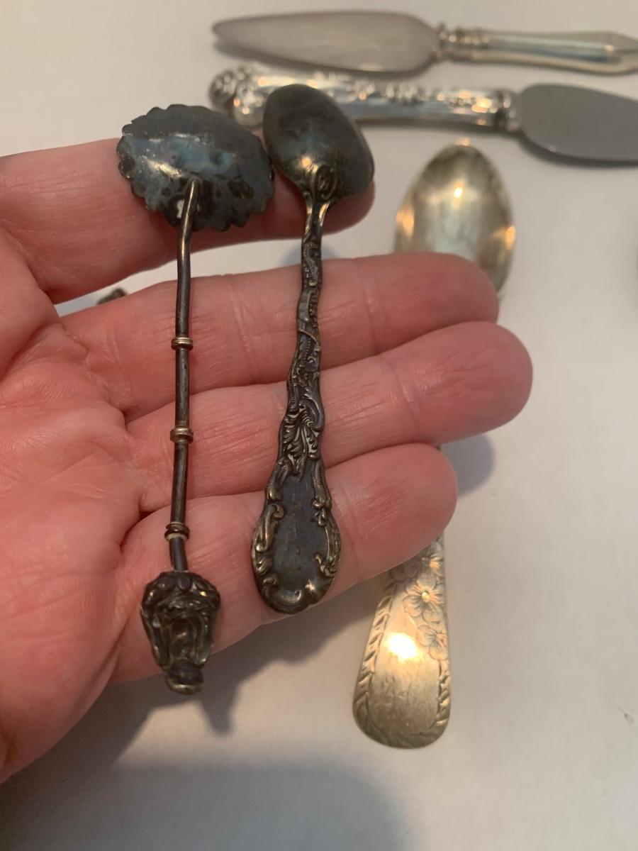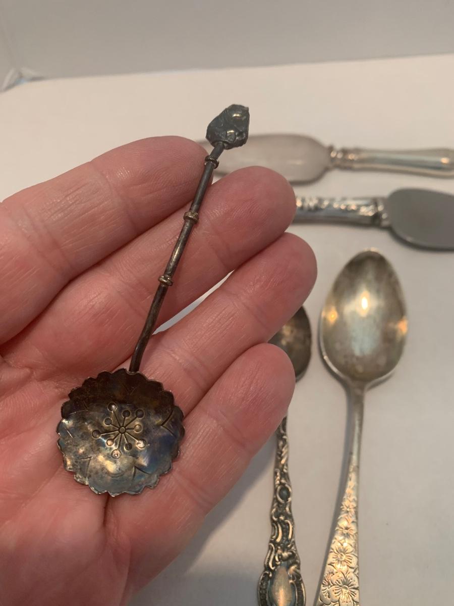Antique Sterling Silver Spoons Travel Ect + Sterling Handled Cake Servers