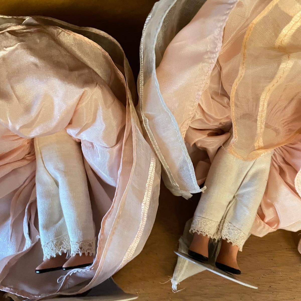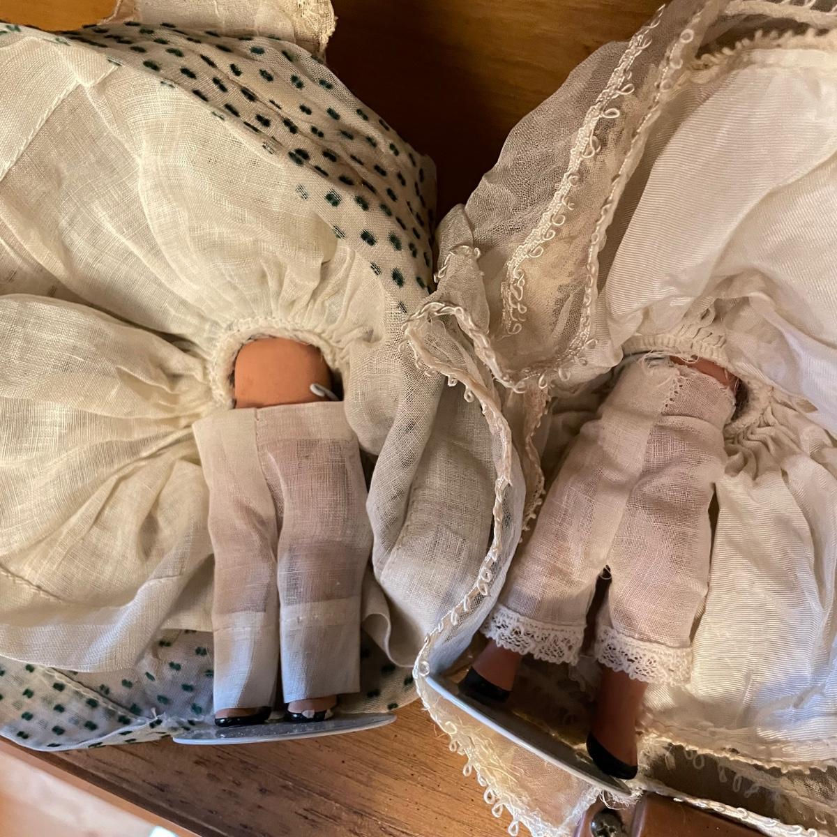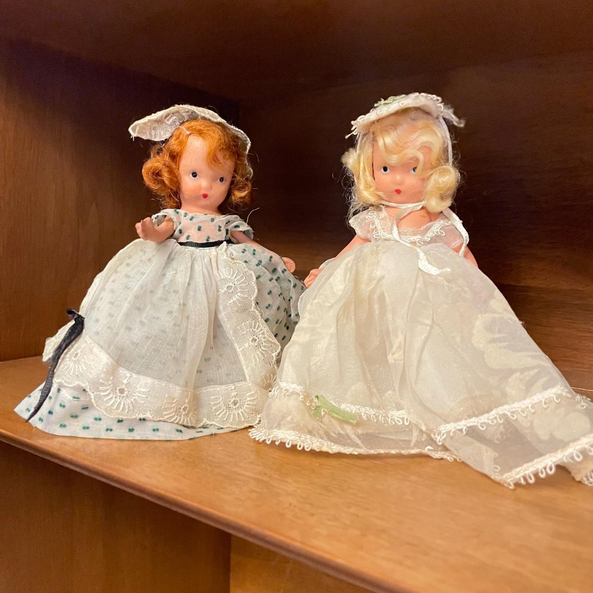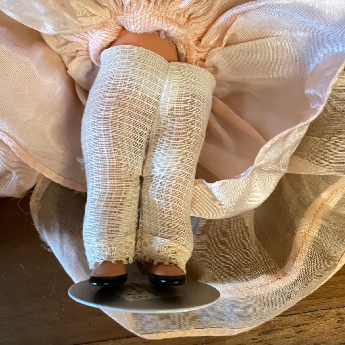 Lot features a Wedding Party set of Storybook Dolls plus March and December dolls. Owner explained there was no male clothing available and her grandmother made the Groom’s clothes. This information is unverified. Dolls are a heavy resin, mostly with painted black shoes. Each doll is close to 5” tall and includes a matching white metal stand. Dolls show normal wear, given their age. See images. Shipping available.