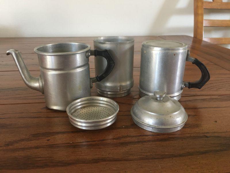 This espresso maker comes apart into 5 parts. It has some ware but is in otherwise excellent condition. The pieces are not warped or burnt at all.